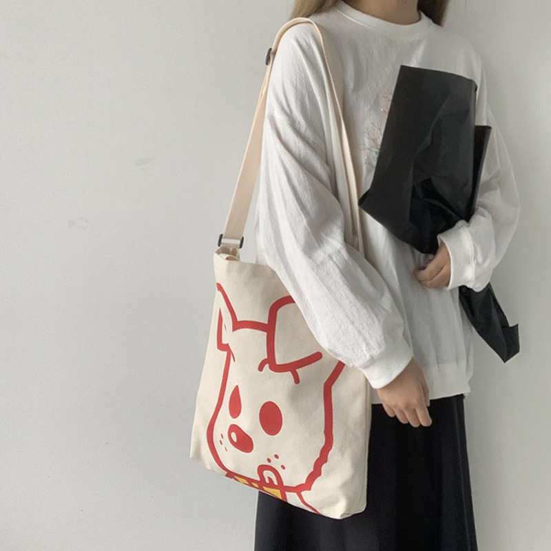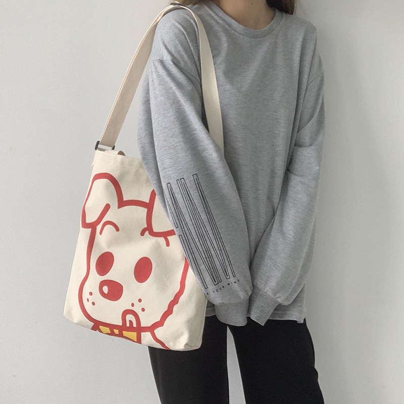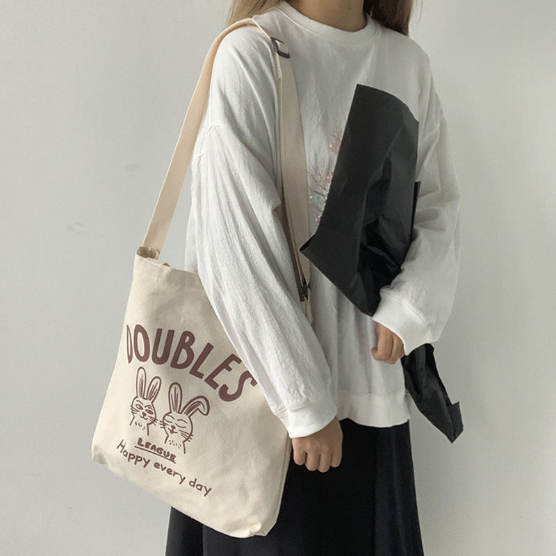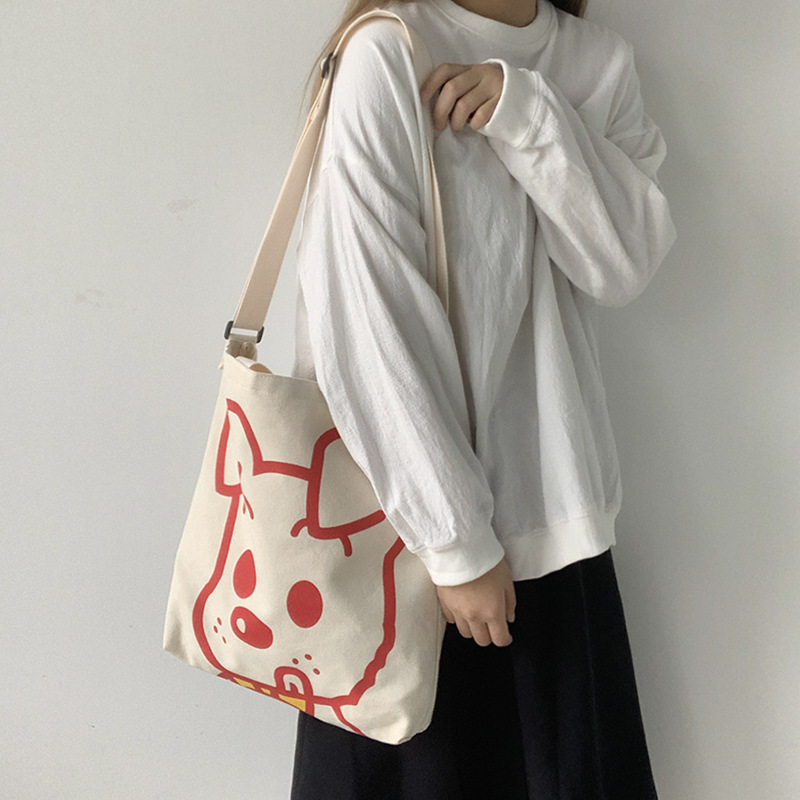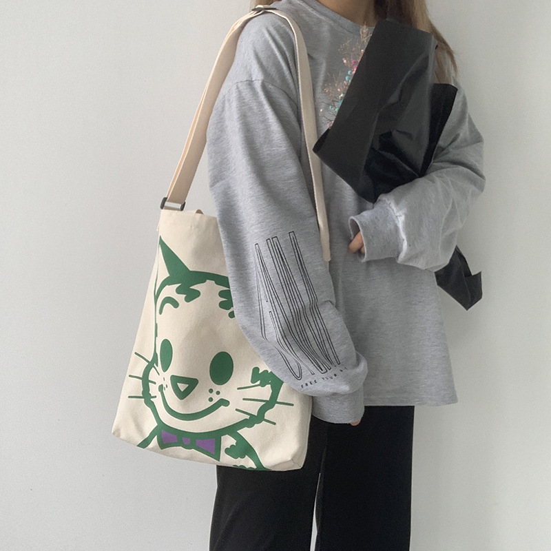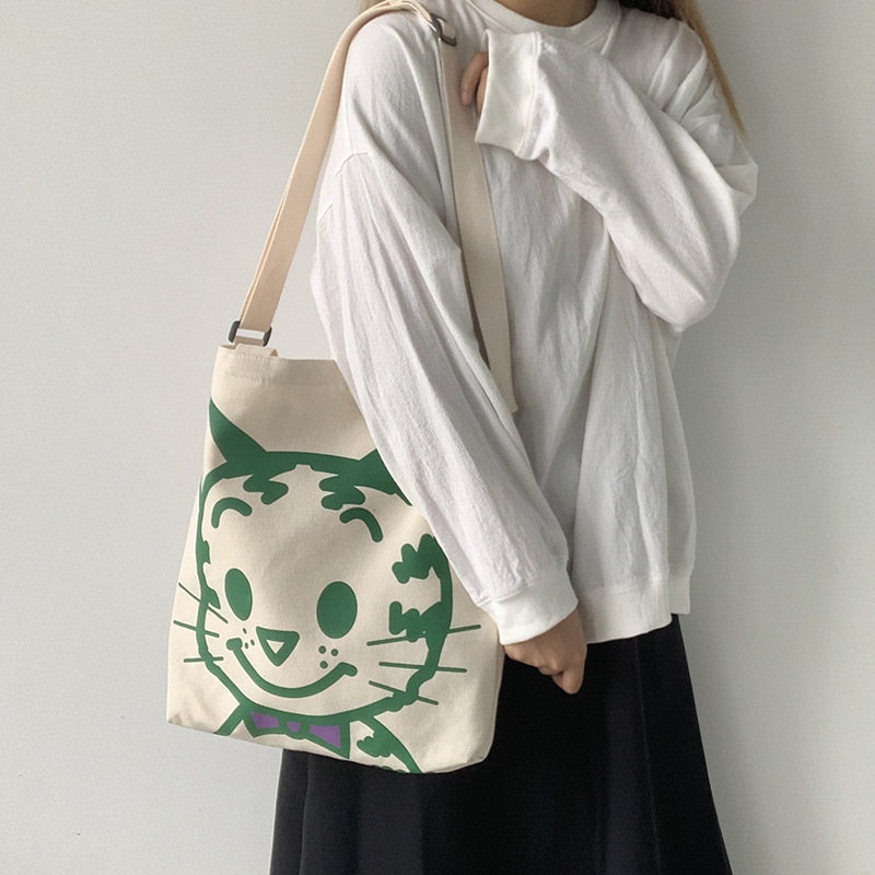 Bolso de lona bolso cruzado para mujer 2025 nuevo estilo estilo japonés versátil bolso de hombro de dibujos animados de gran capacidad bolso de tela para estudiantes estilo k