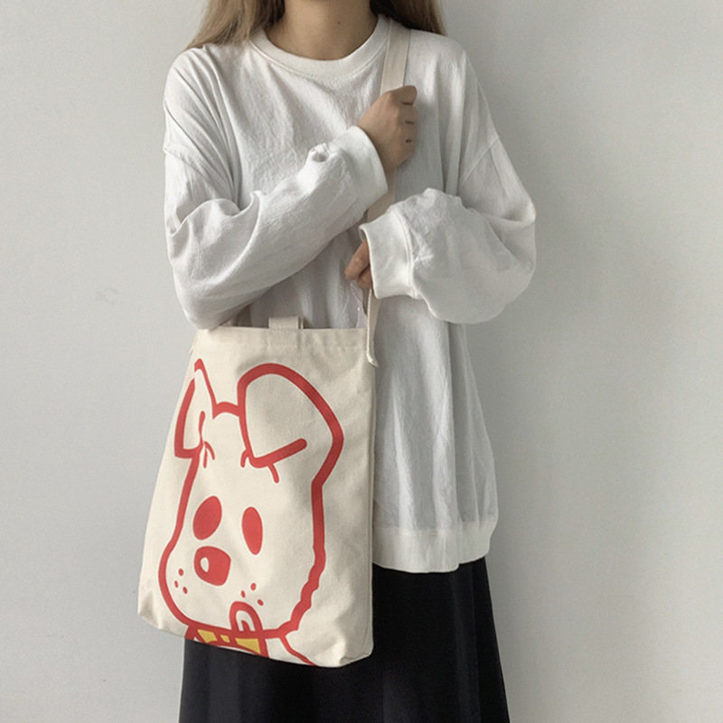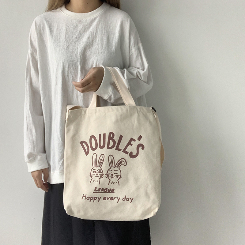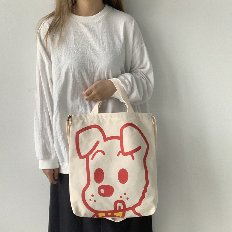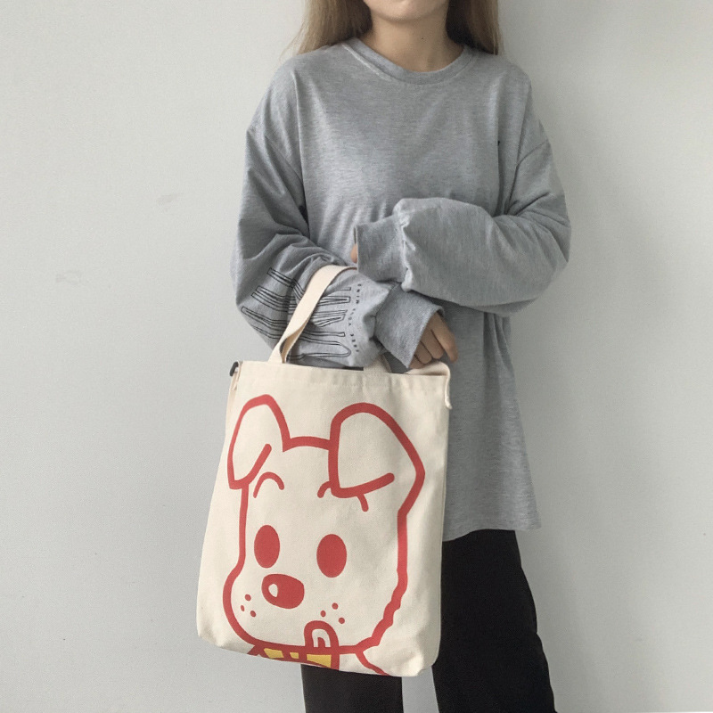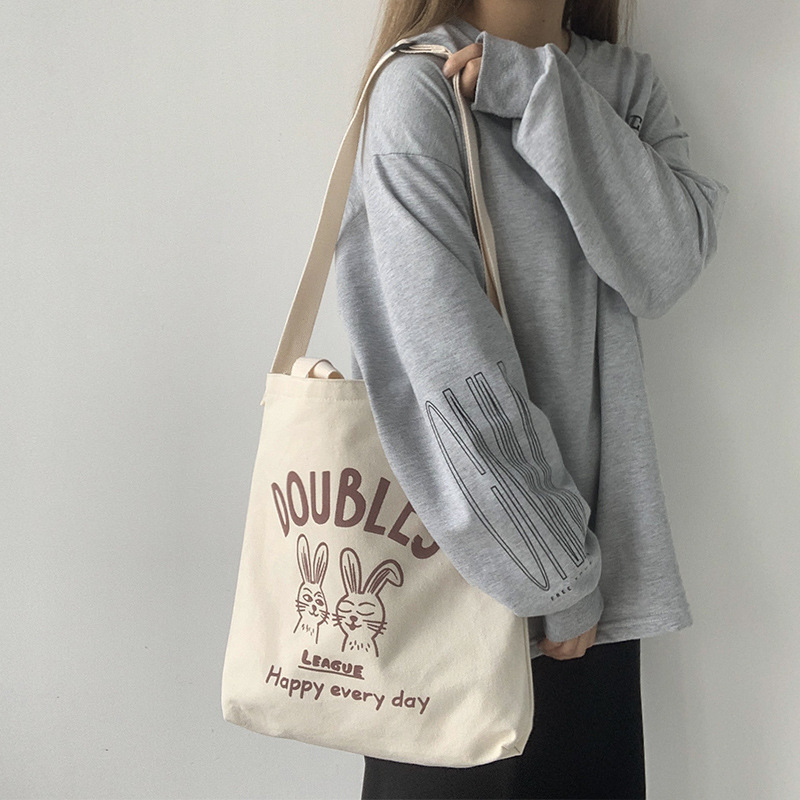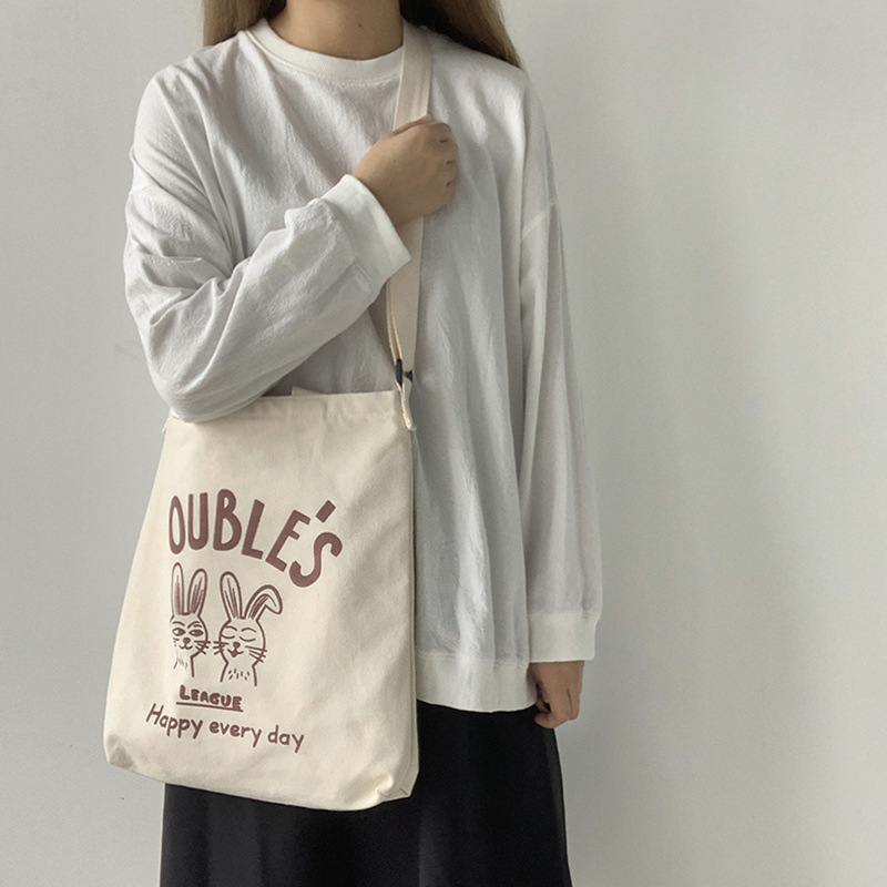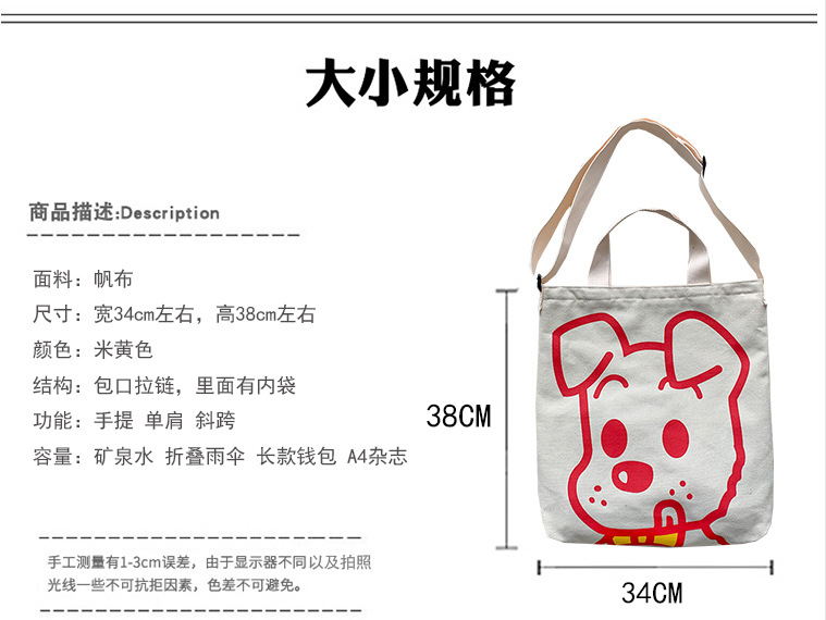 Bolso de lona bolso cruzado para mujer 2025 nuevo estilo estilo japonés versátil bolso de hombro de dibujos animados de gran capacidad bolso de tela para estudiantes estilo k