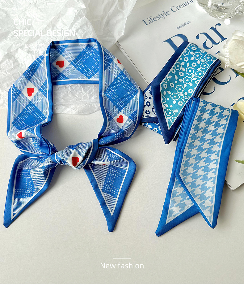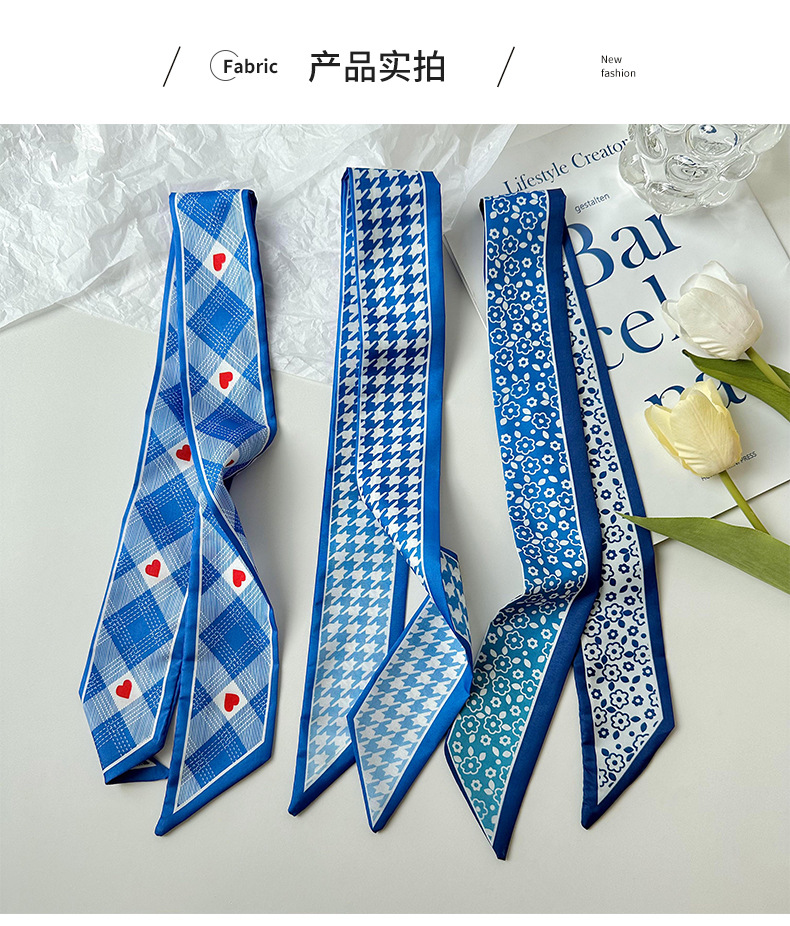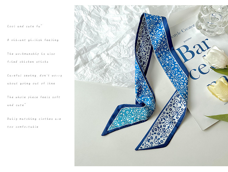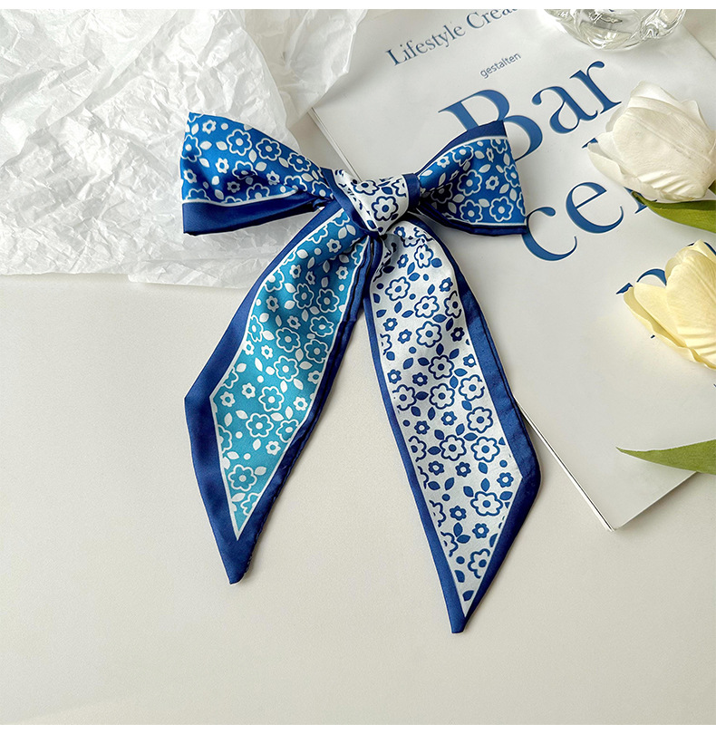 Azul larga pequeña bufanda estilo coreano todo partido pajarita corbata de pelo bolsa decoración mano regalo bufanda cinta accesorios para el cabello