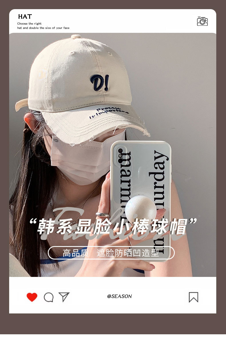 Sombrero para mujer Nuevo estilo coreano retro letra D gorra de béisbol superior suave circunferencia de la cabeza grande versátil primavera y verano gorra a prueba de sol para mujer