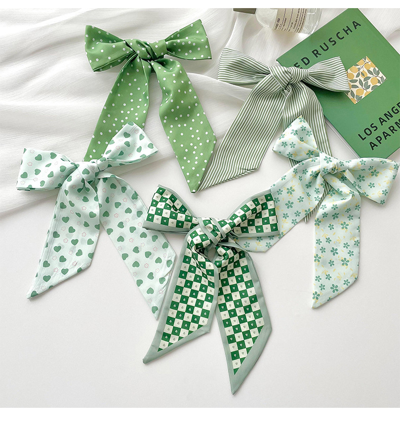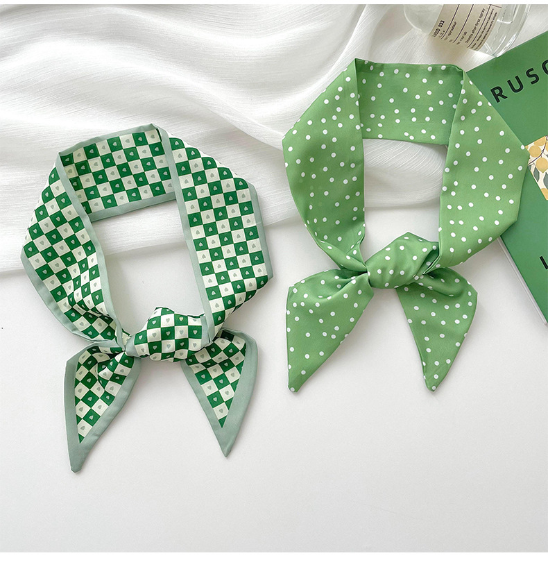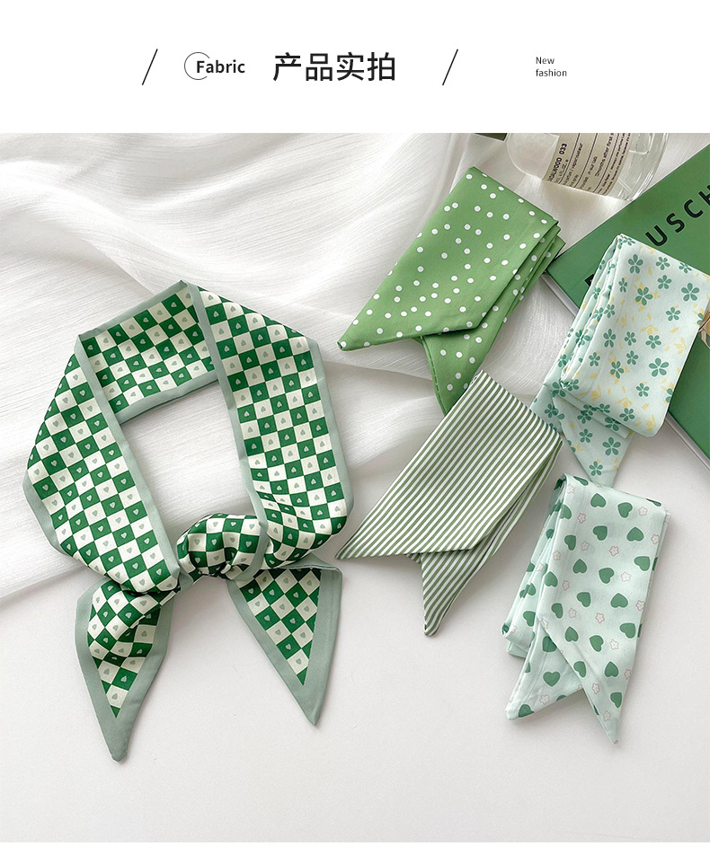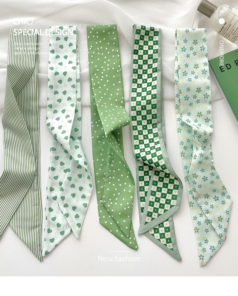 Verde larga pequeña bufanda de las mujeres del verano delgada corbata estrecha corbata de pelo bolsa decoración pequeña mano fresca cinta de regalo banda de pelo