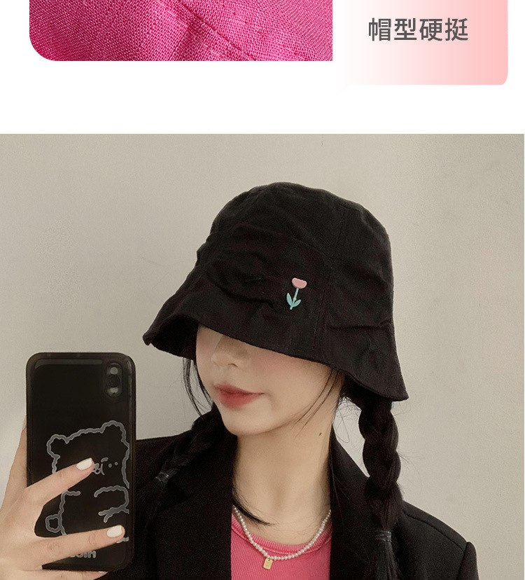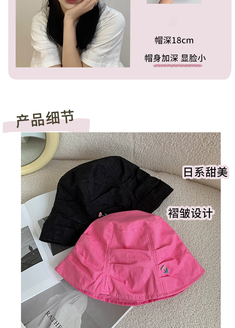 Sombrero de pescador plisado de flores para mujeres primavera y verano estilo japonés circunferencia de la cabeza grande sombrero de cubo a prueba de sol sombrero pequeño de aspecto facial
