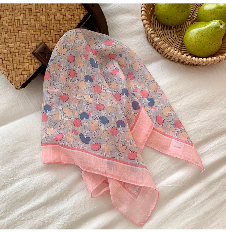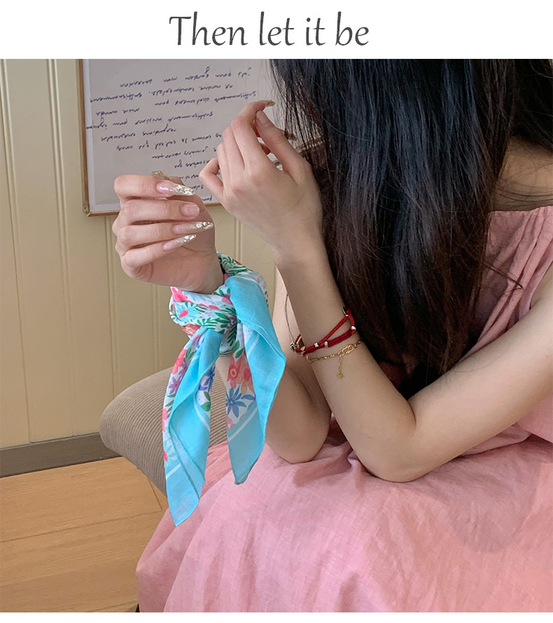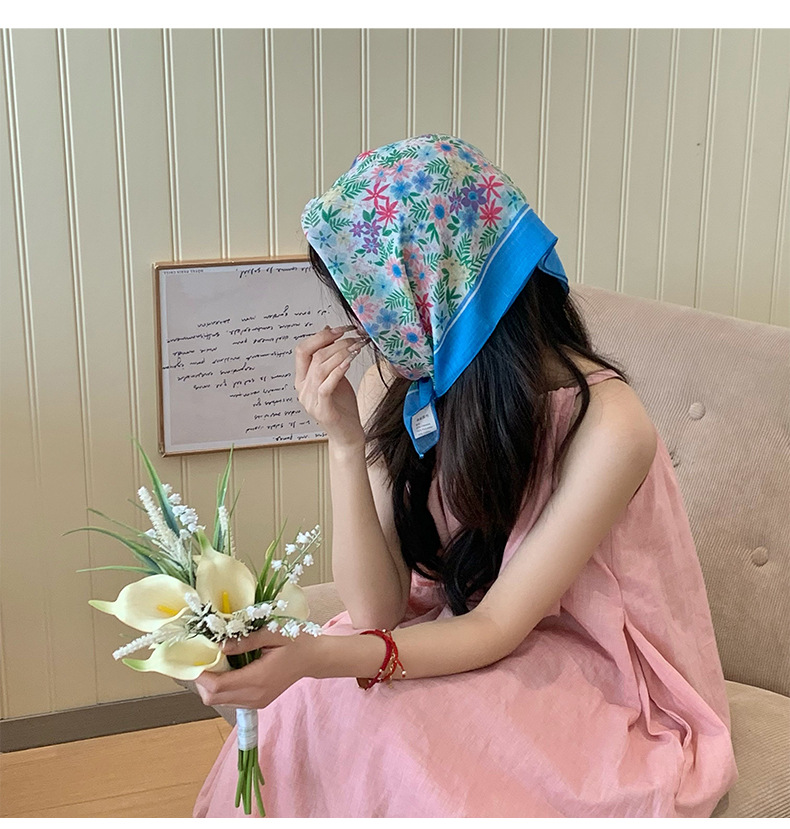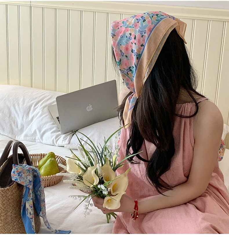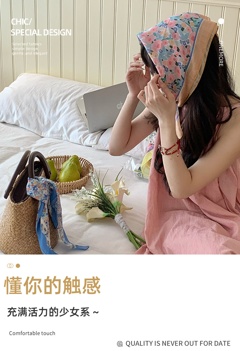 Flores toallas cuadradas nuevas versiones coreanas ins frescas, suaves y dulces, accesorios de bufandas de seda delgadas, bufandas de cuello, cinta de paquete