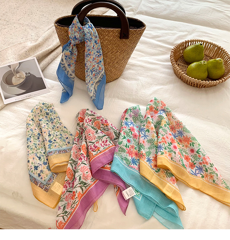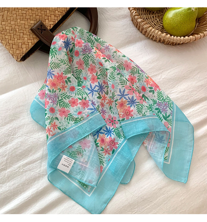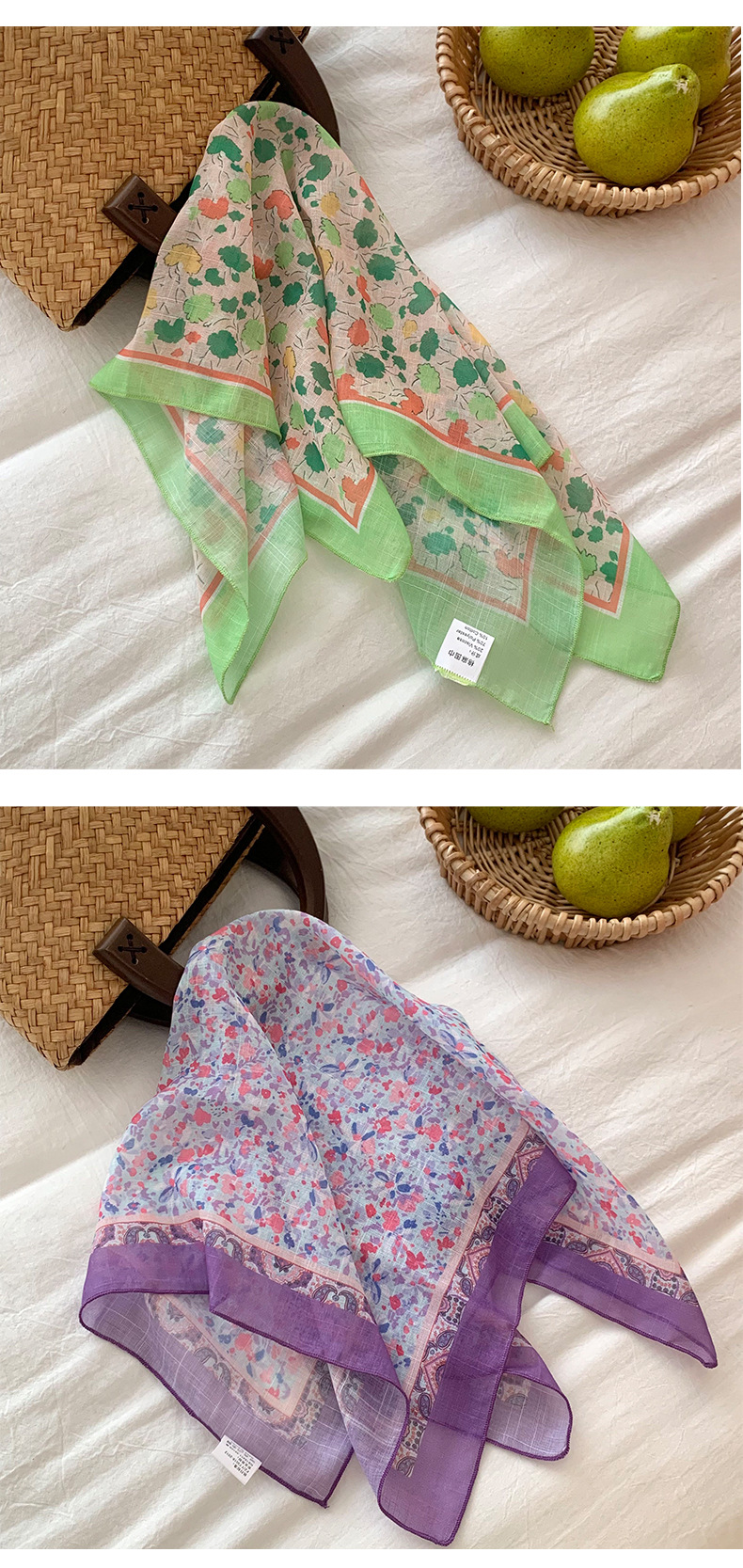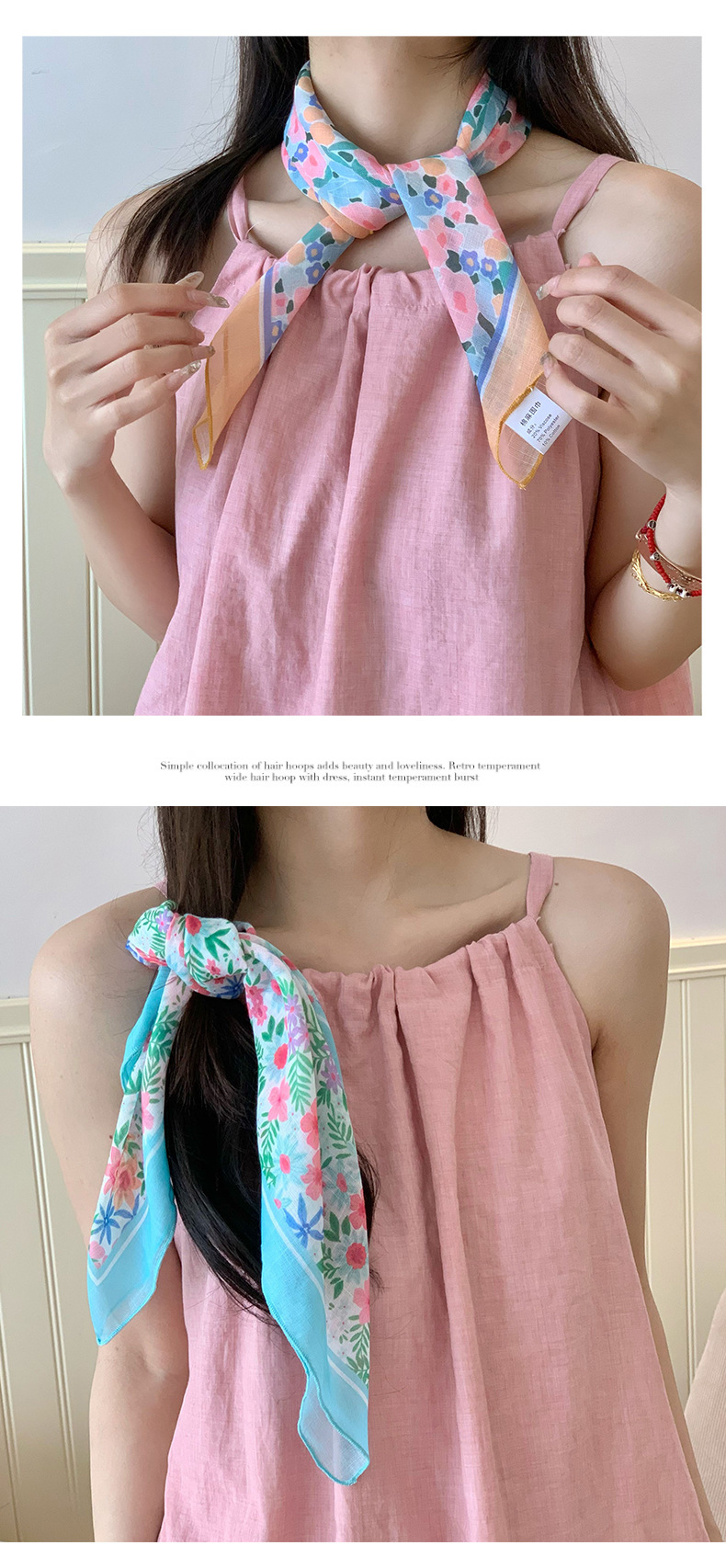Flores toallas cuadradas nuevas versiones coreanas ins frescas, suaves y dulces, accesorios de bufandas de seda delgadas, bufandas de cuello, cinta de paquete