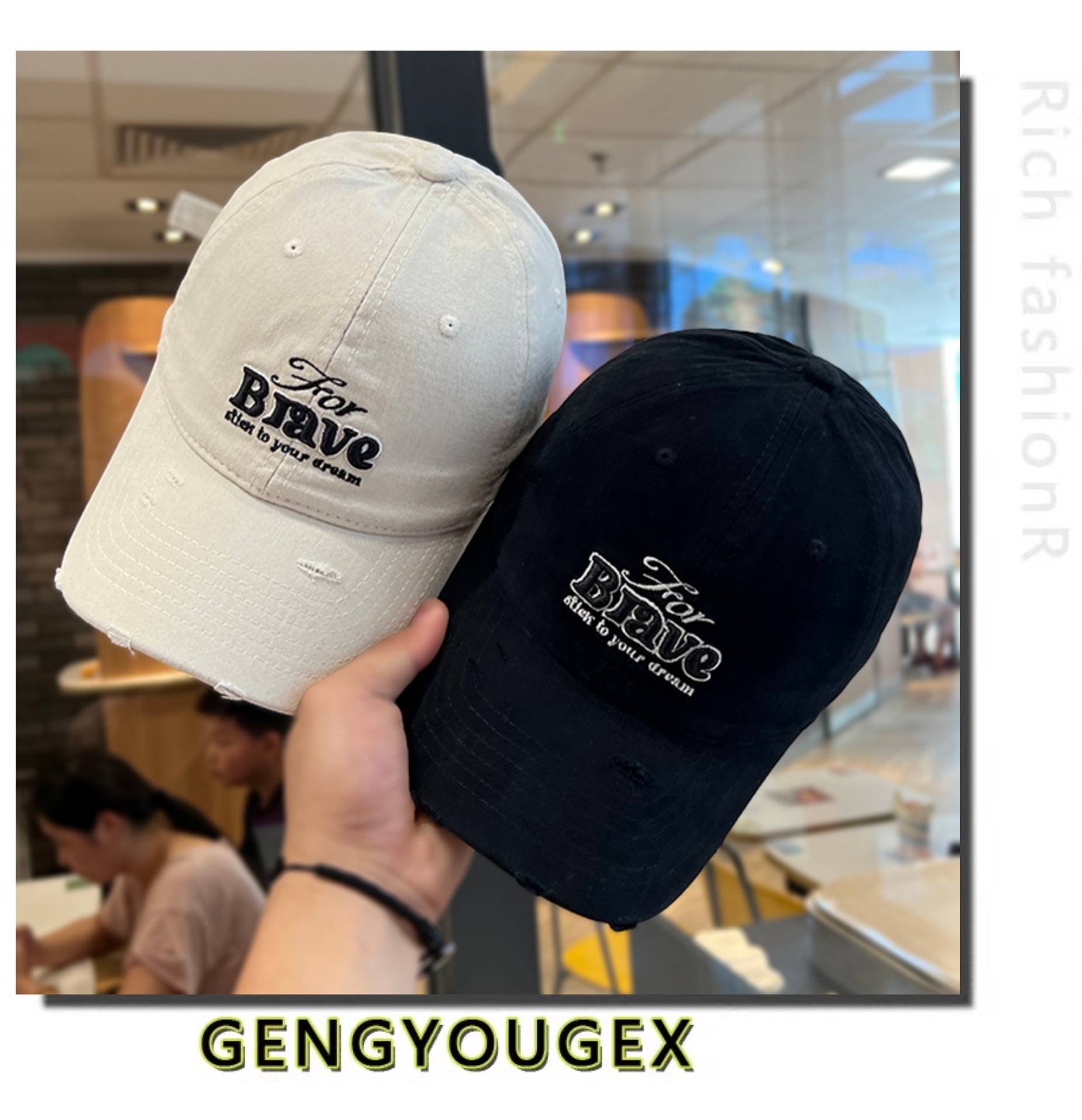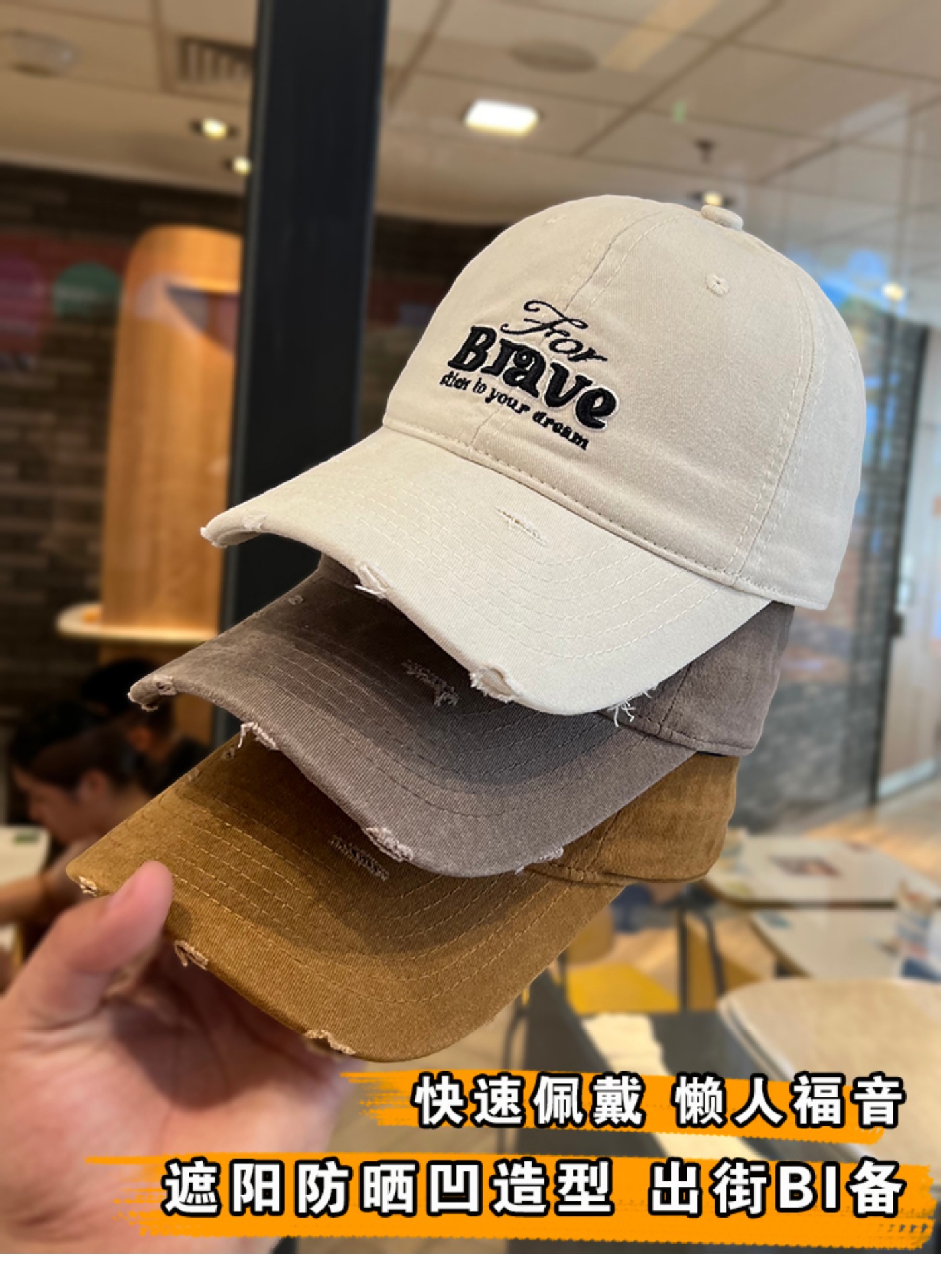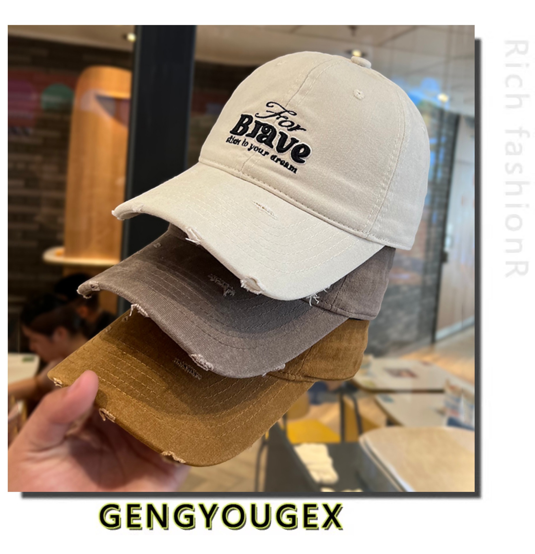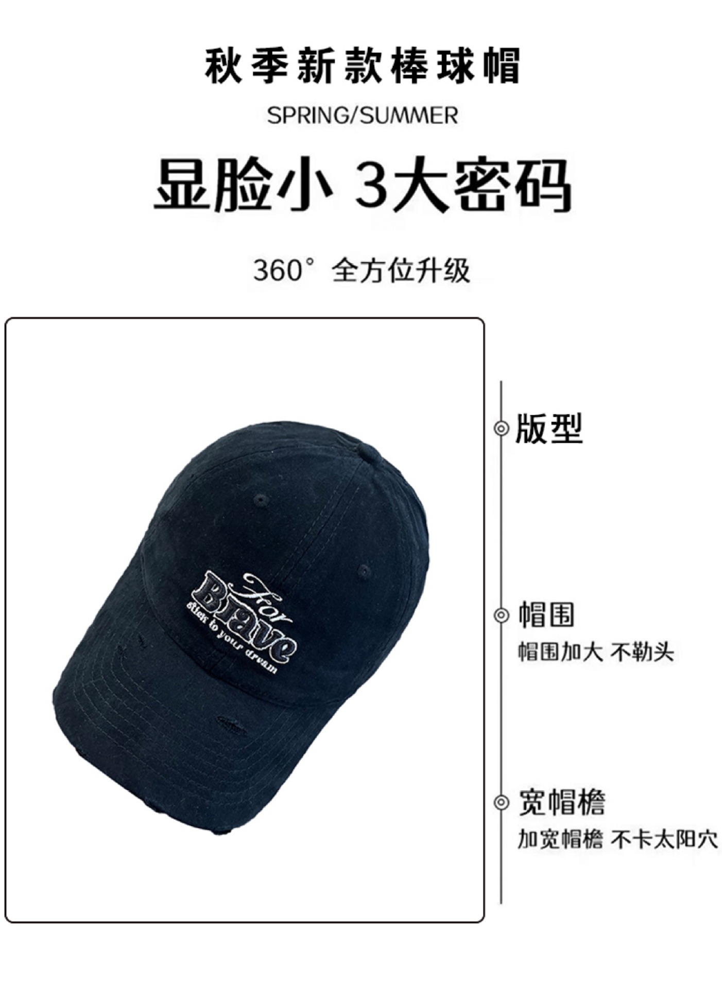 Coreano retro hacer viejos agujeros estereoscópicos bordados letras sombrero de béisbol mujer primavera y otoño calles generales sombrero de lengua de pato moda