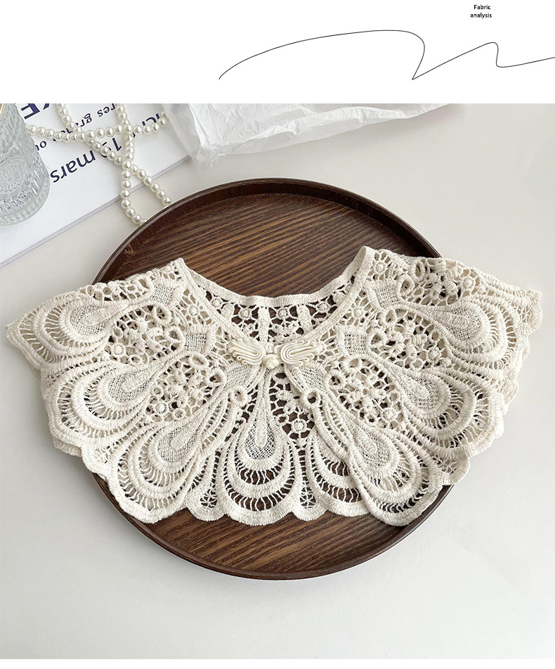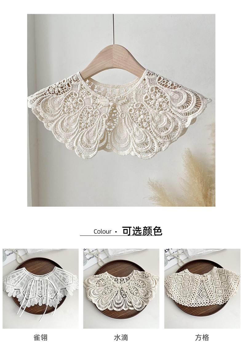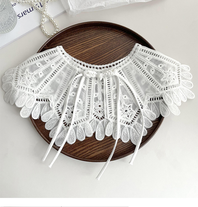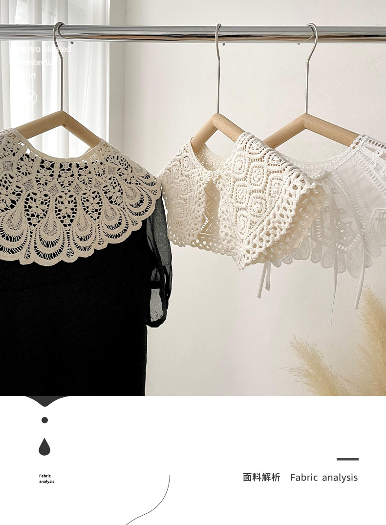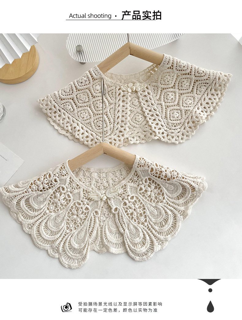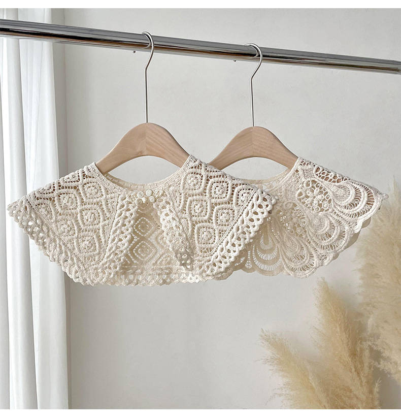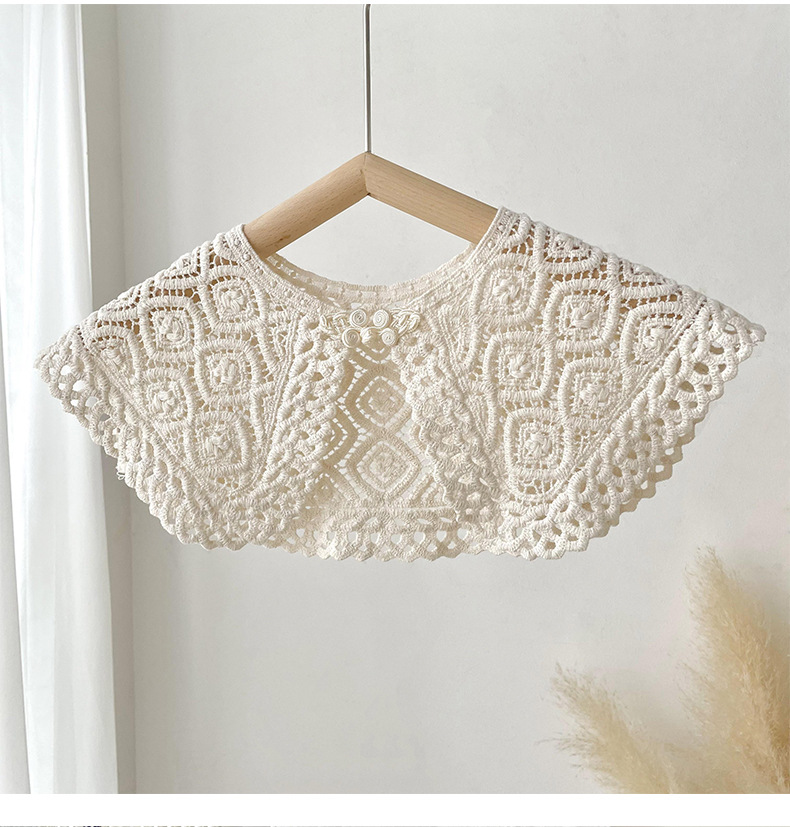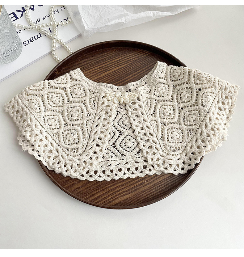 Cuello falso recortado de crochet de punto de encaje para mujer en primavera y otoño con camisa y falda chal decorativo cuello de muñeca versátil