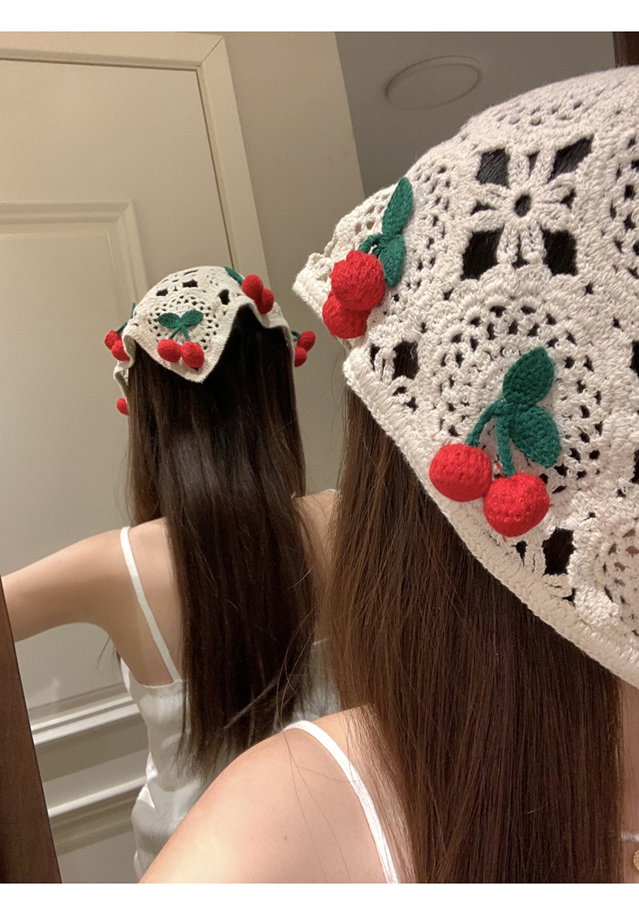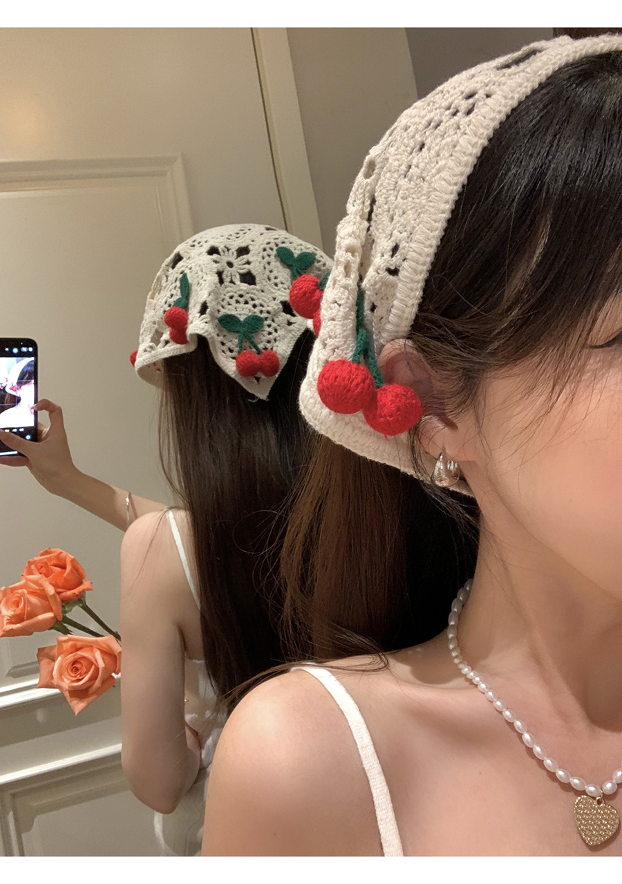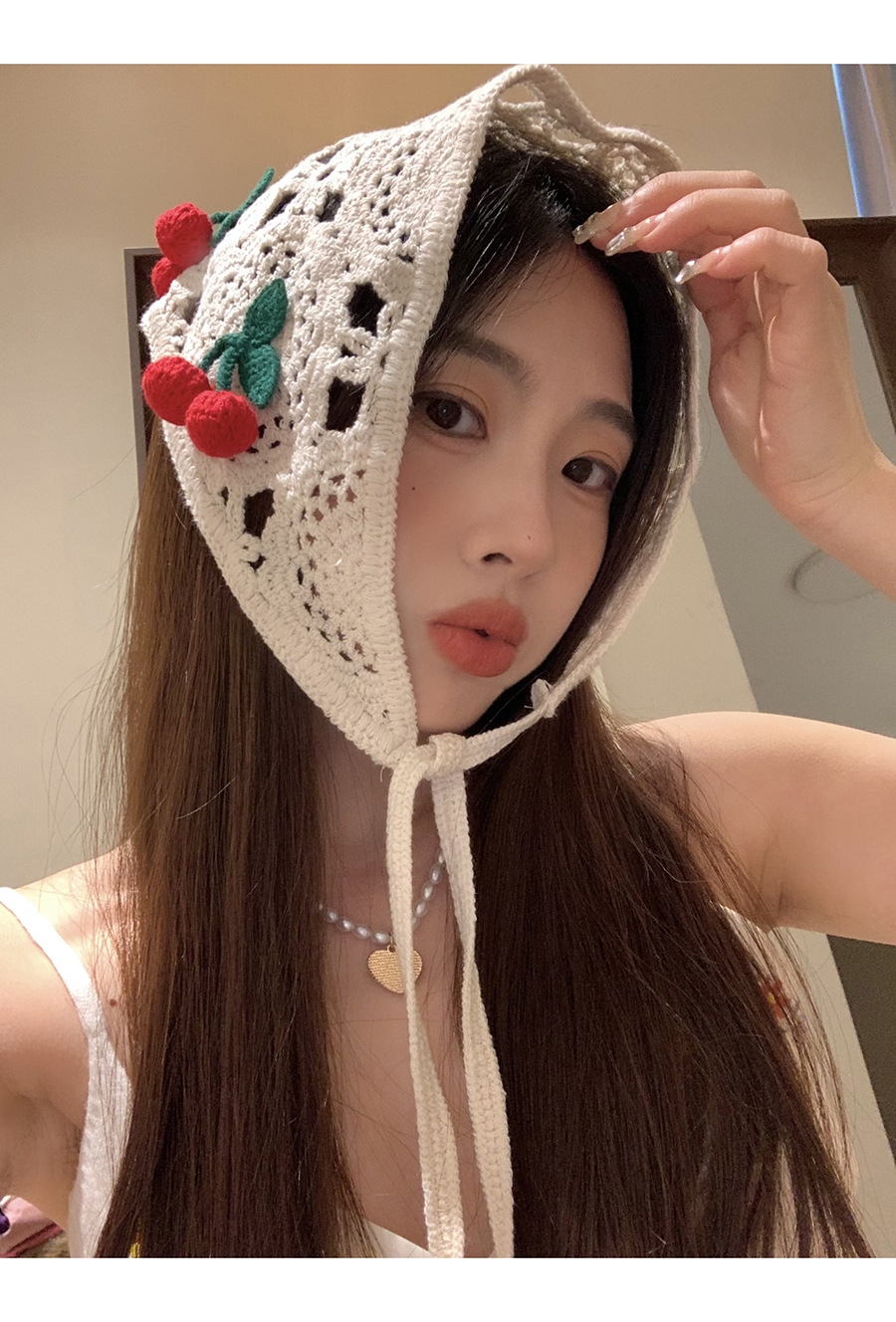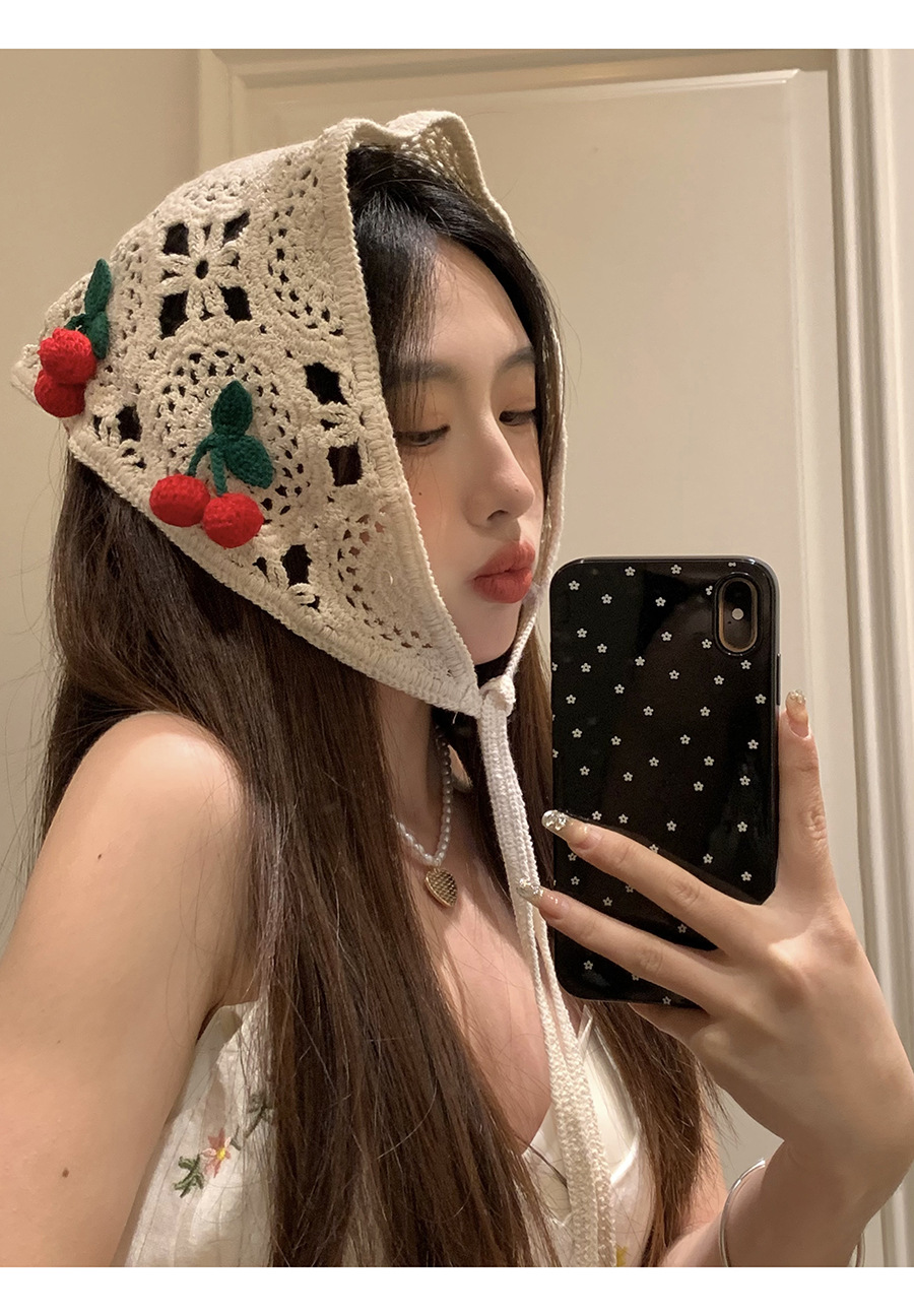 Coreano ins dulce dulce cereza hueco toallas triangulares tejidas a mano bufandas de seda para mujeres 2024 nuevo pañuelo