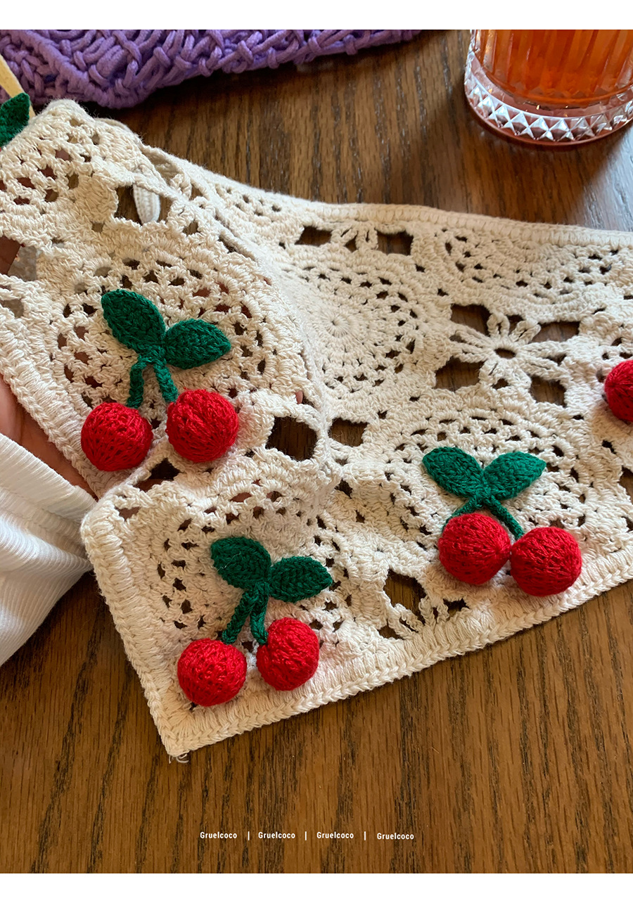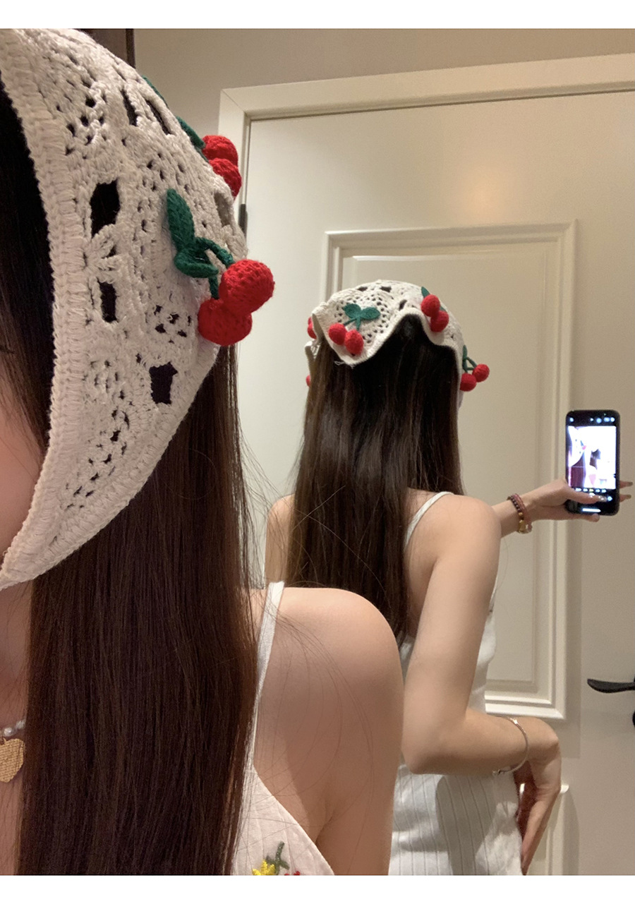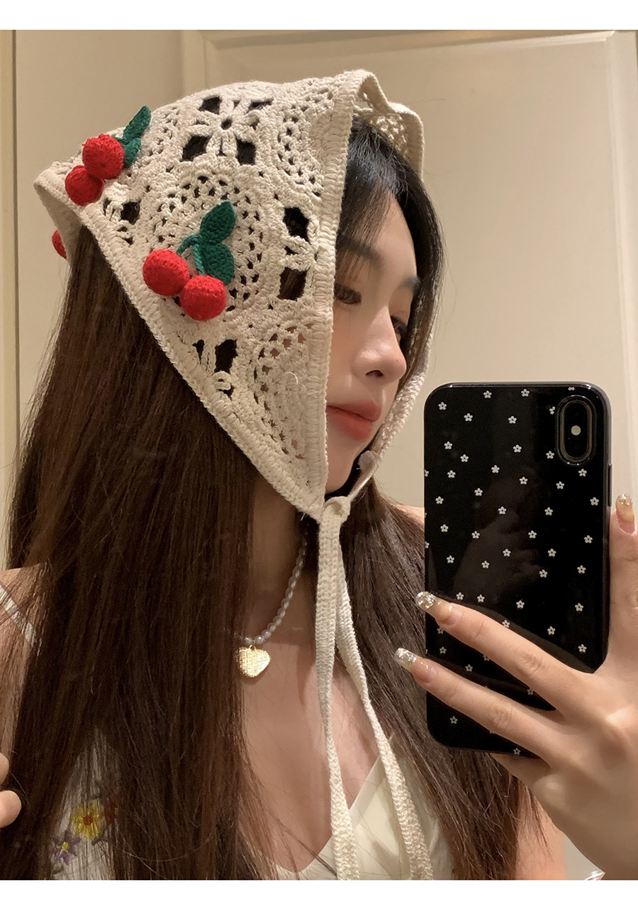 Coreano ins dulce dulce cereza hueco toallas triangulares tejidas a mano bufandas de seda para mujeres 2024 nuevo pañuelo