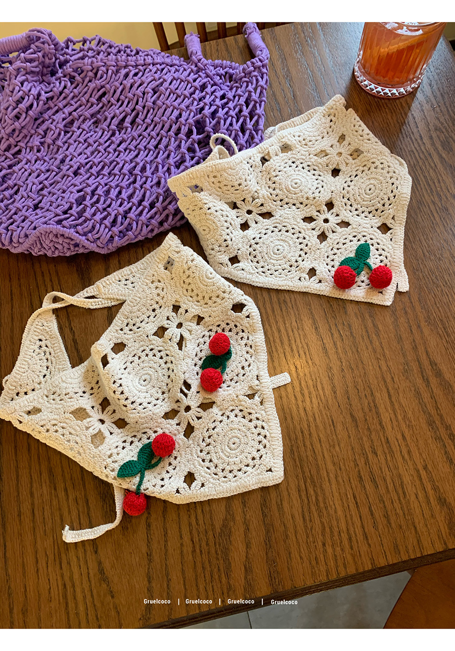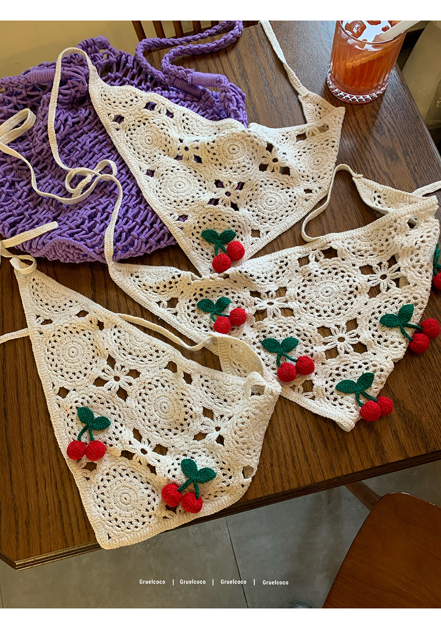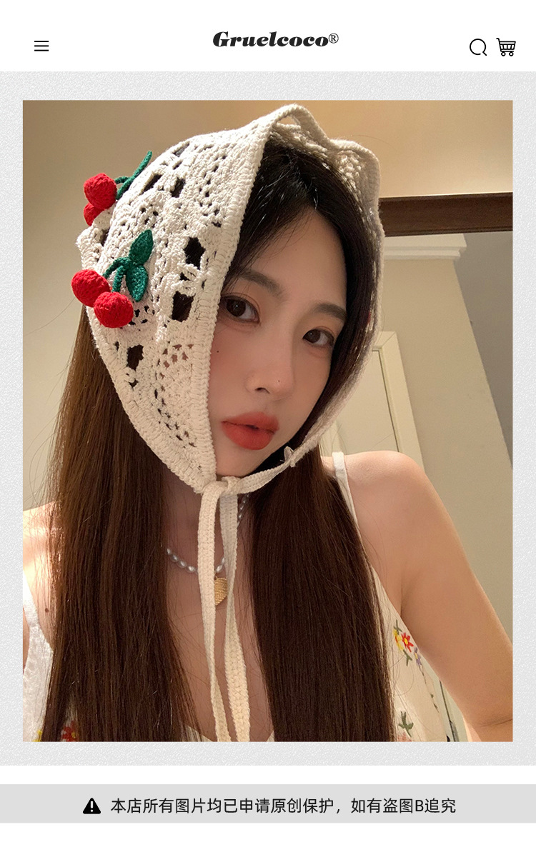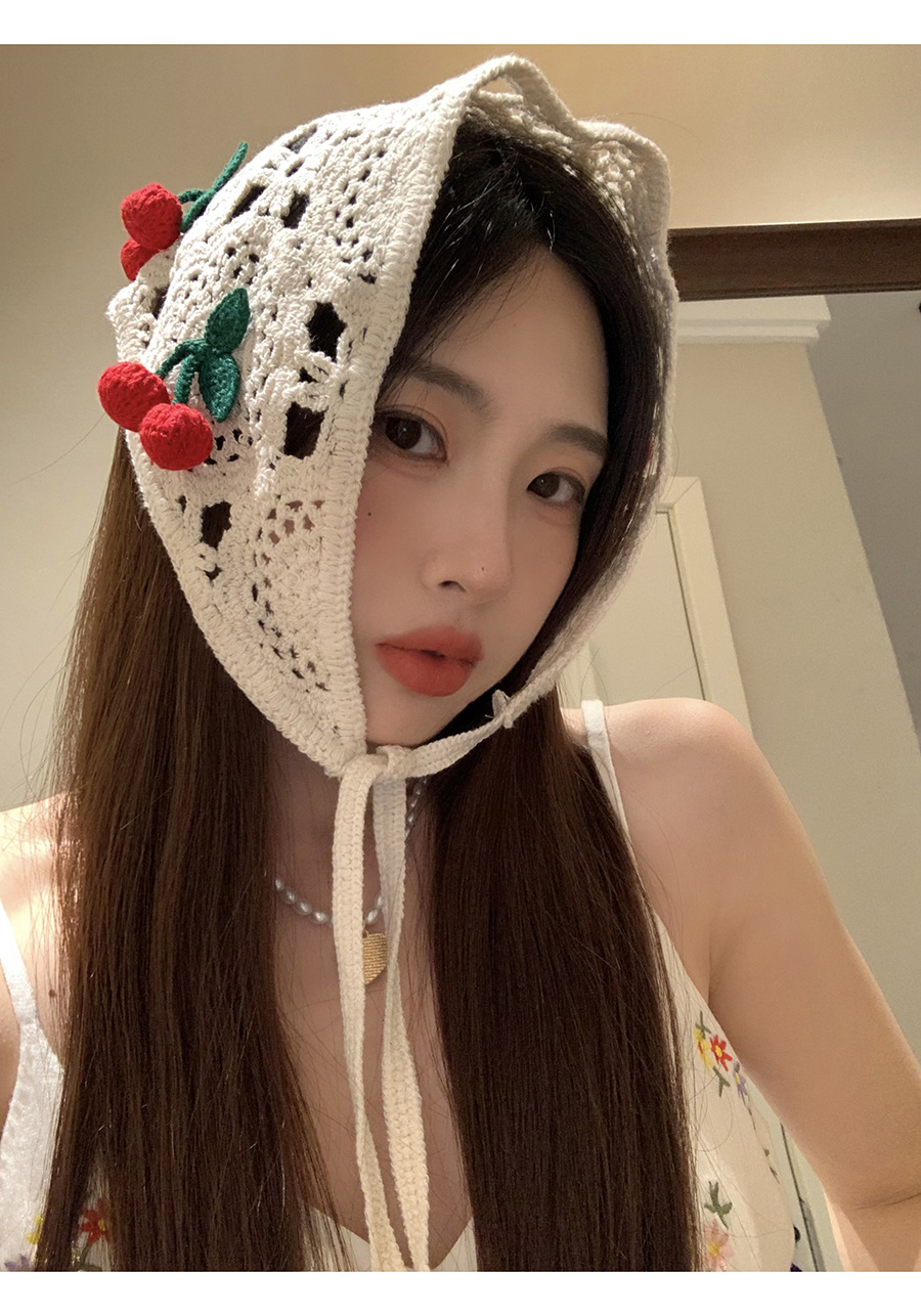 Coreano ins dulce dulce cereza hueco toallas triangulares tejidas a mano bufandas de seda para mujeres 2024 nuevo pañuelo
