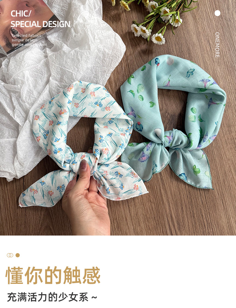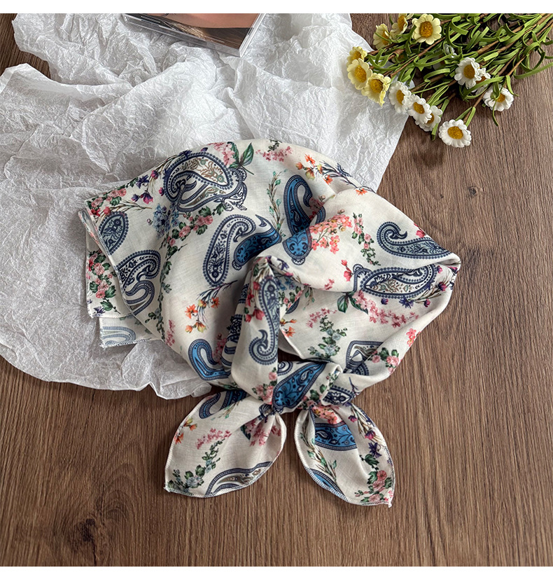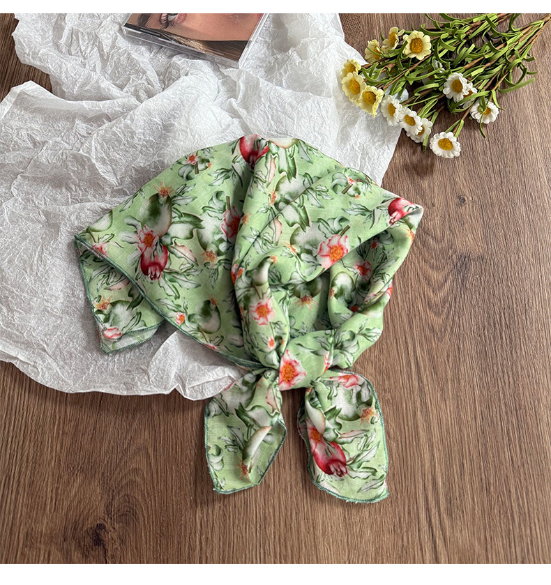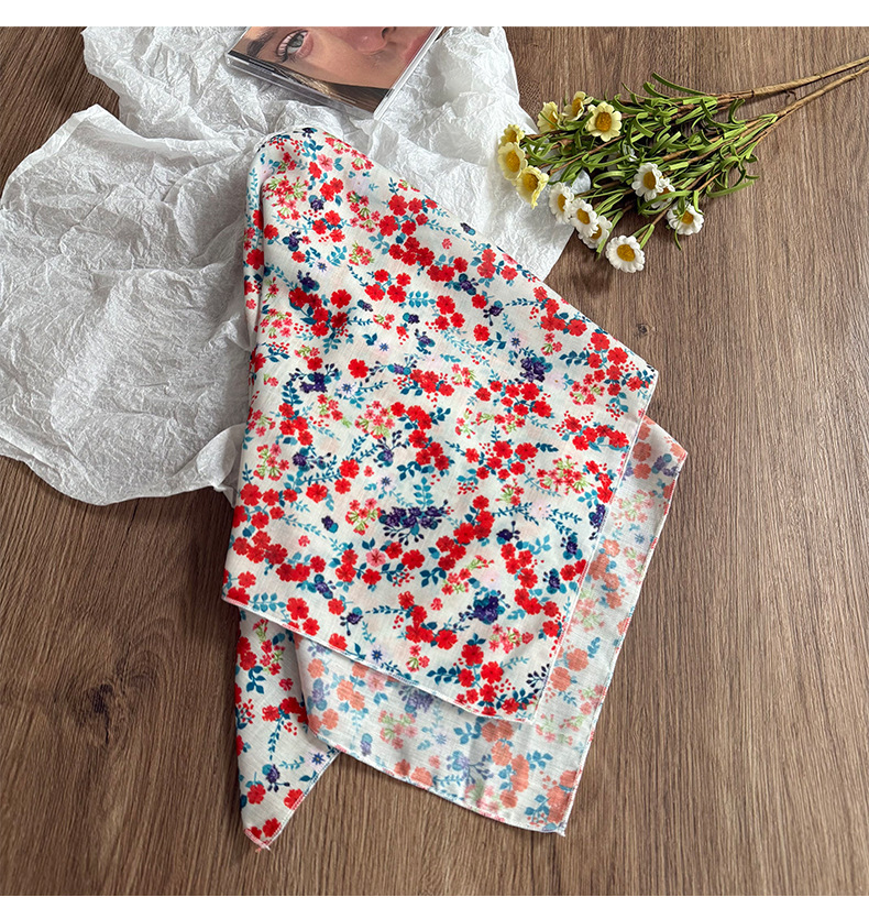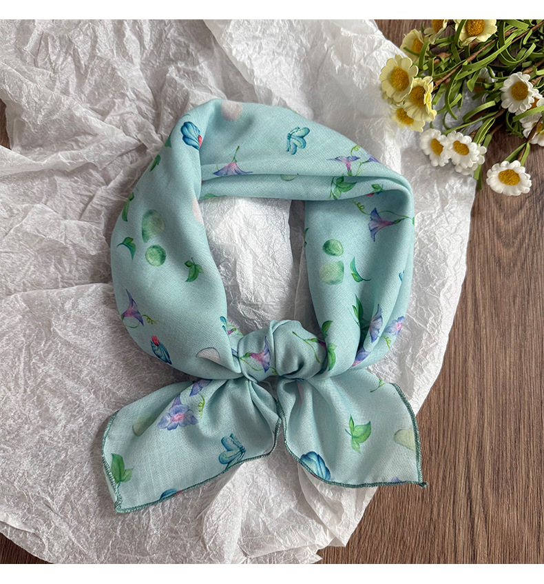 Pañuelo en la cabeza Verano femenino pastoral nuevo estilo floral literario bufanda cuadrada todo fósforo bufanda pequeña bufanda de seda correa para el cabello multifunción accesorios para el cabello