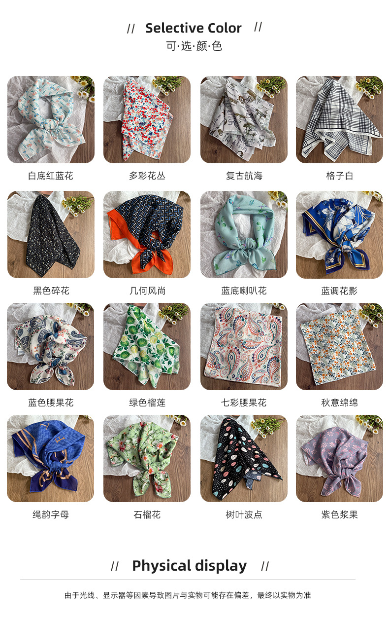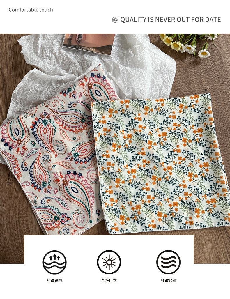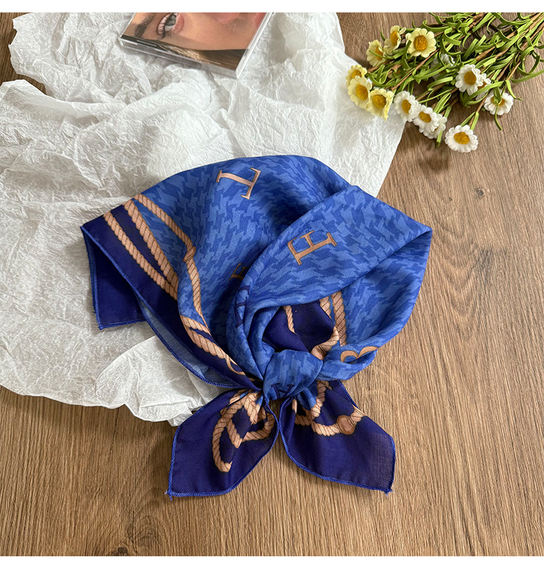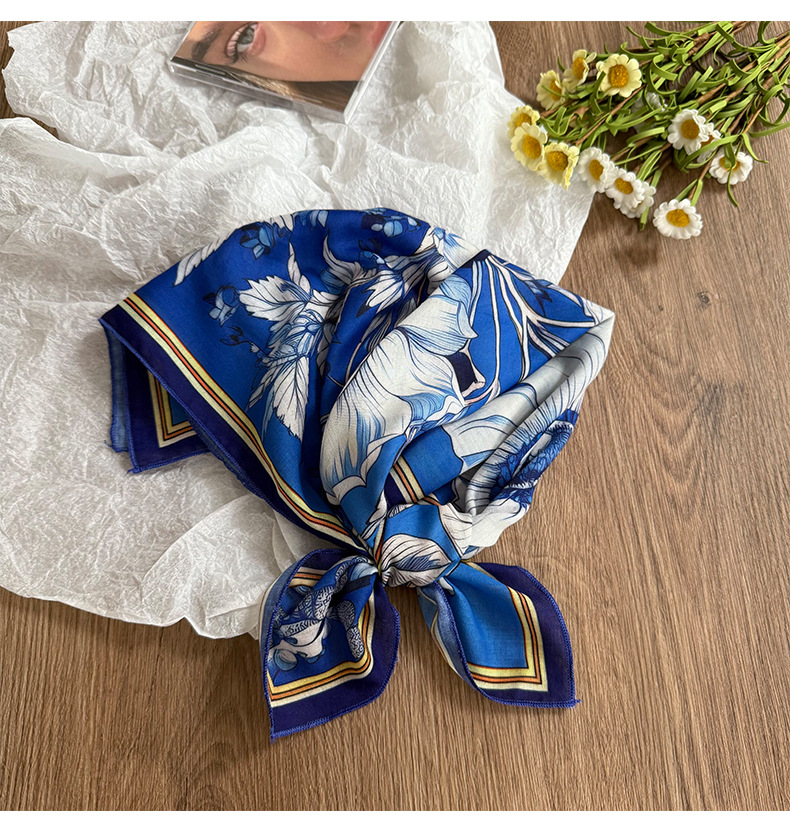 Pañuelo en la cabeza Verano femenino pastoral nuevo estilo floral literario bufanda cuadrada todo fósforo bufanda pequeña bufanda de seda correa para el cabello multifunción accesorios para el cabello