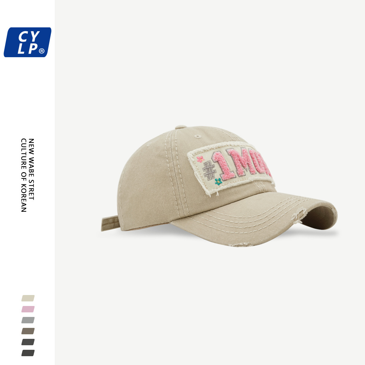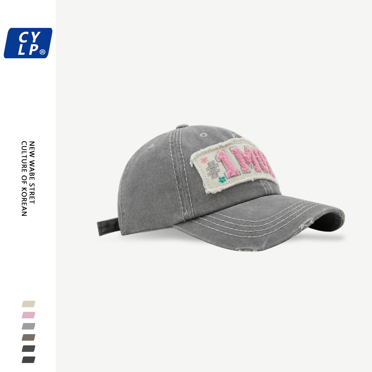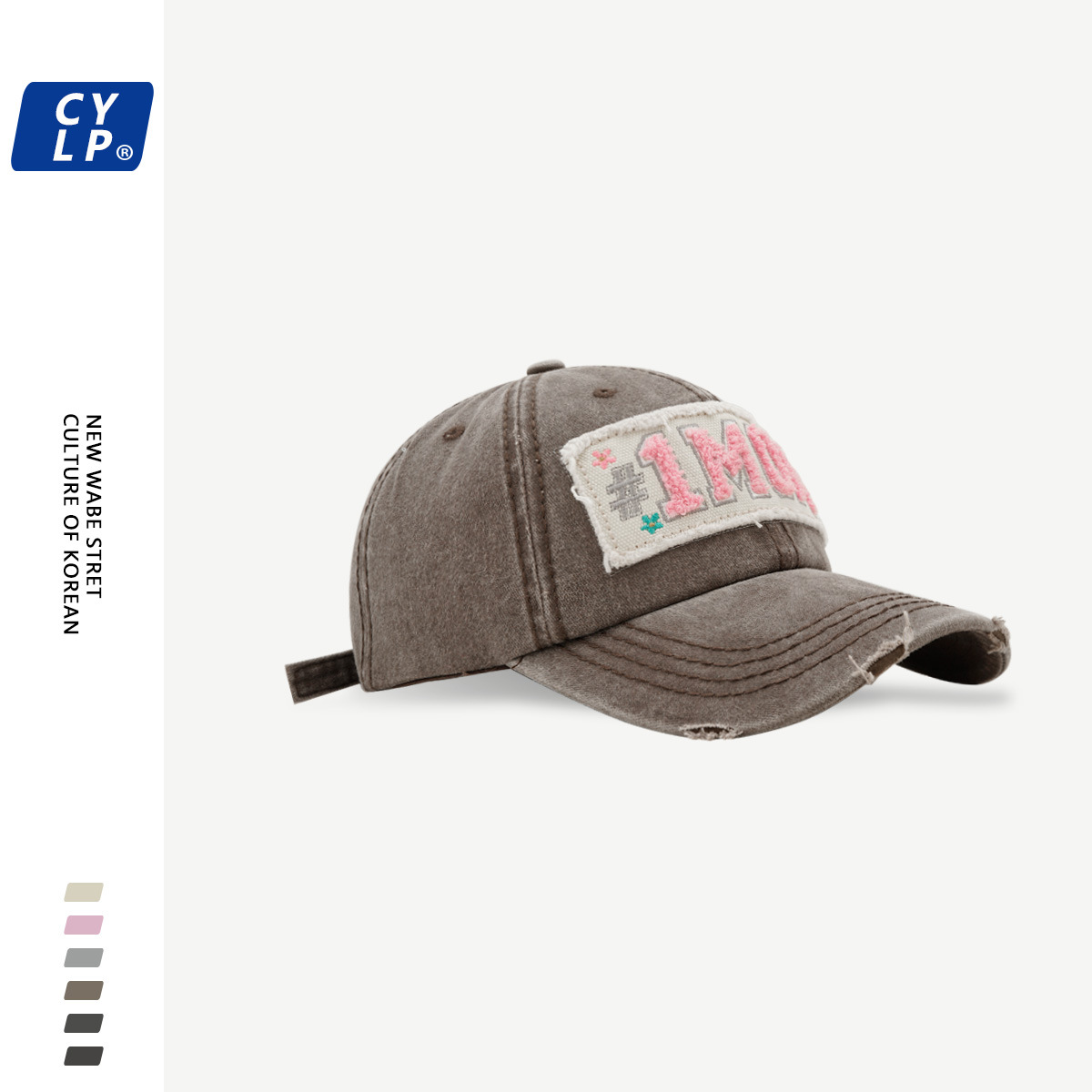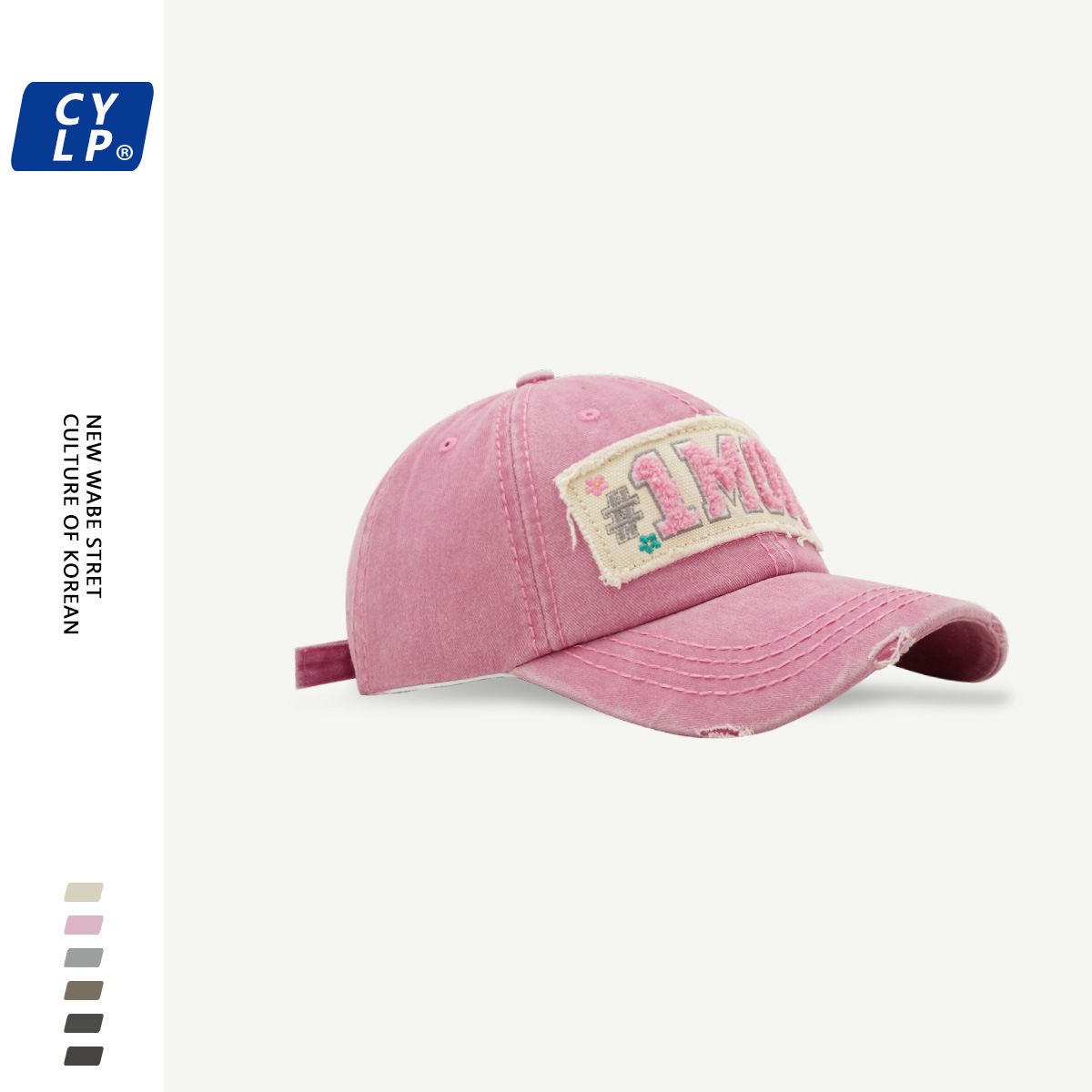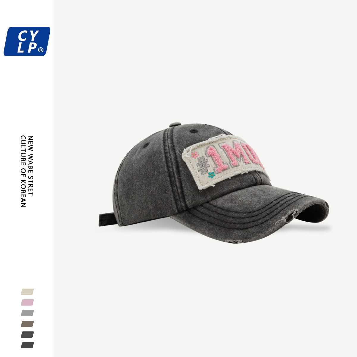 Toalla de diseño original carta bordada etiqueta de tela gorra de béisbol hombres y mujeres Otoño e Invierno estilo coreano moda de la calle rasgado gorra de pico