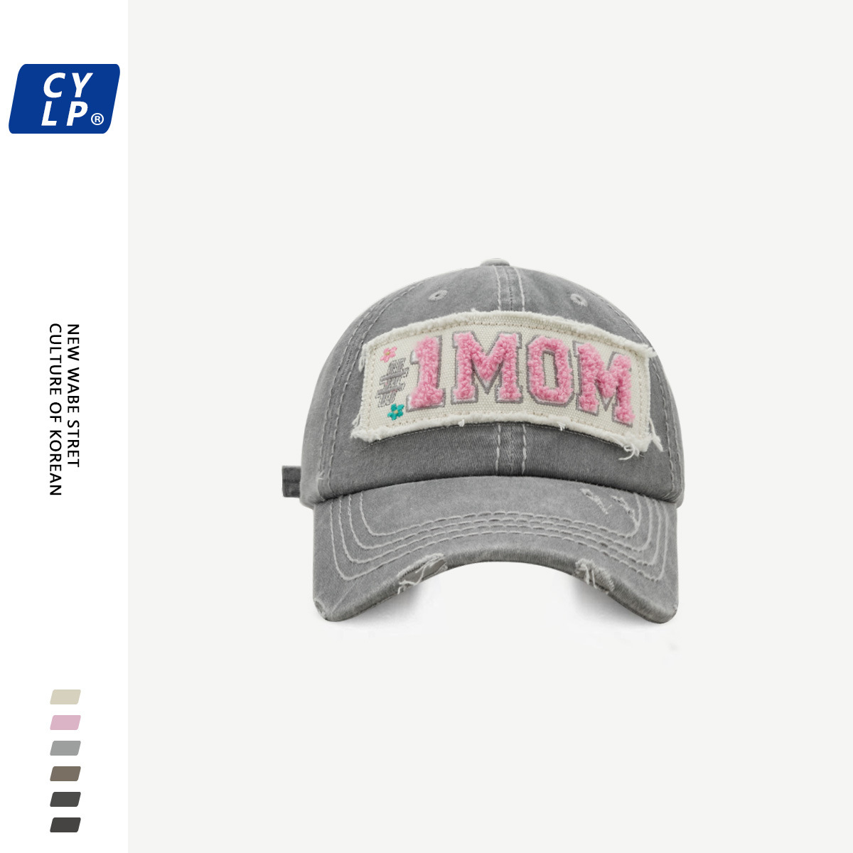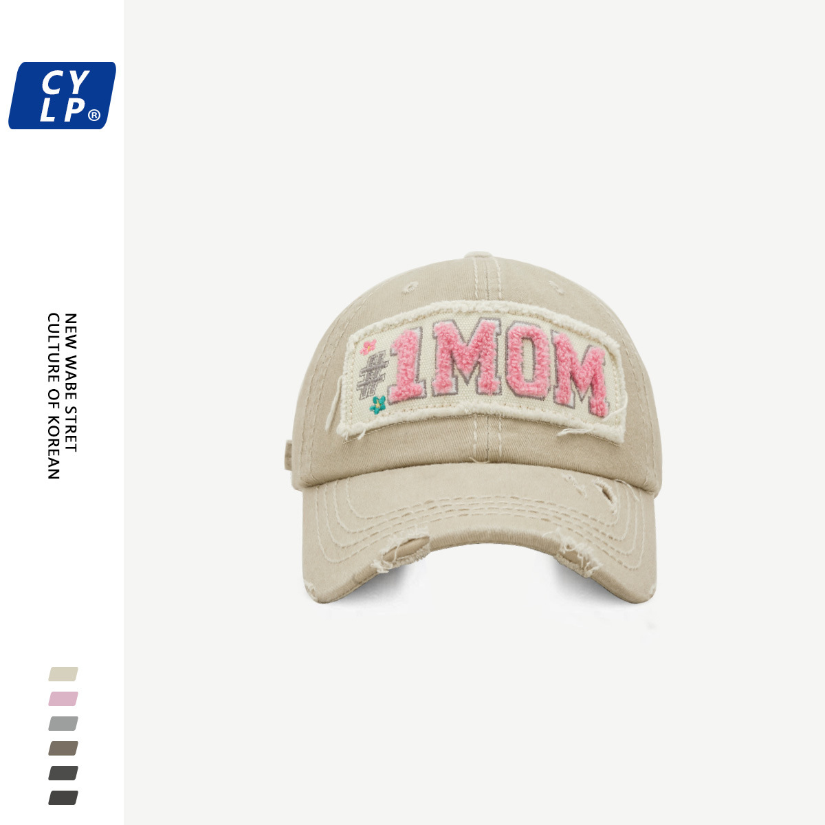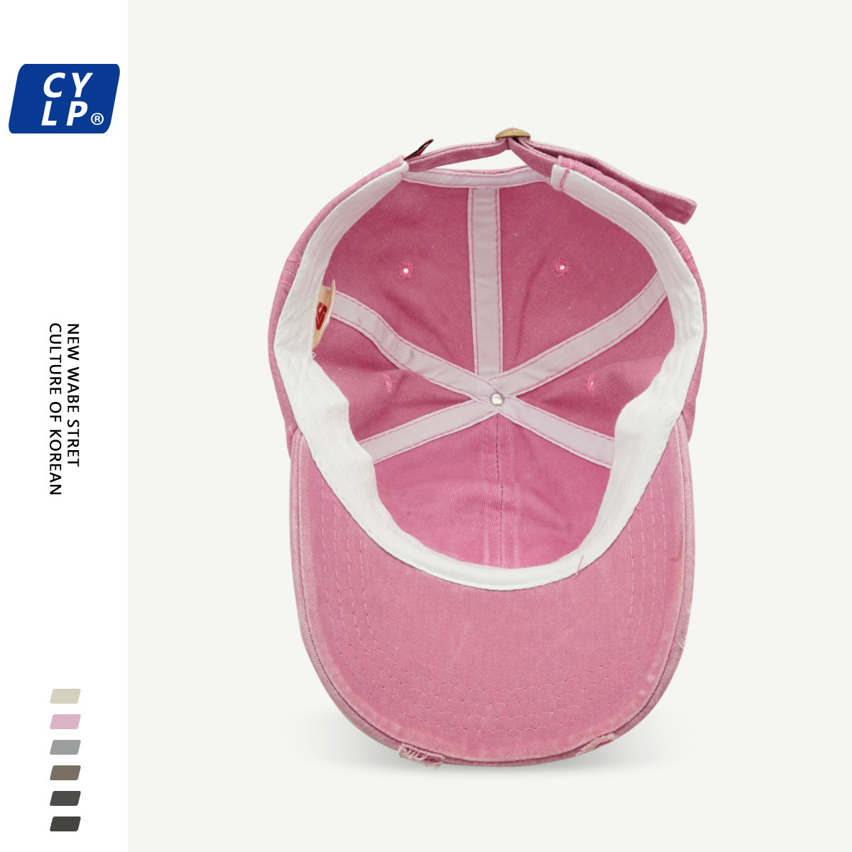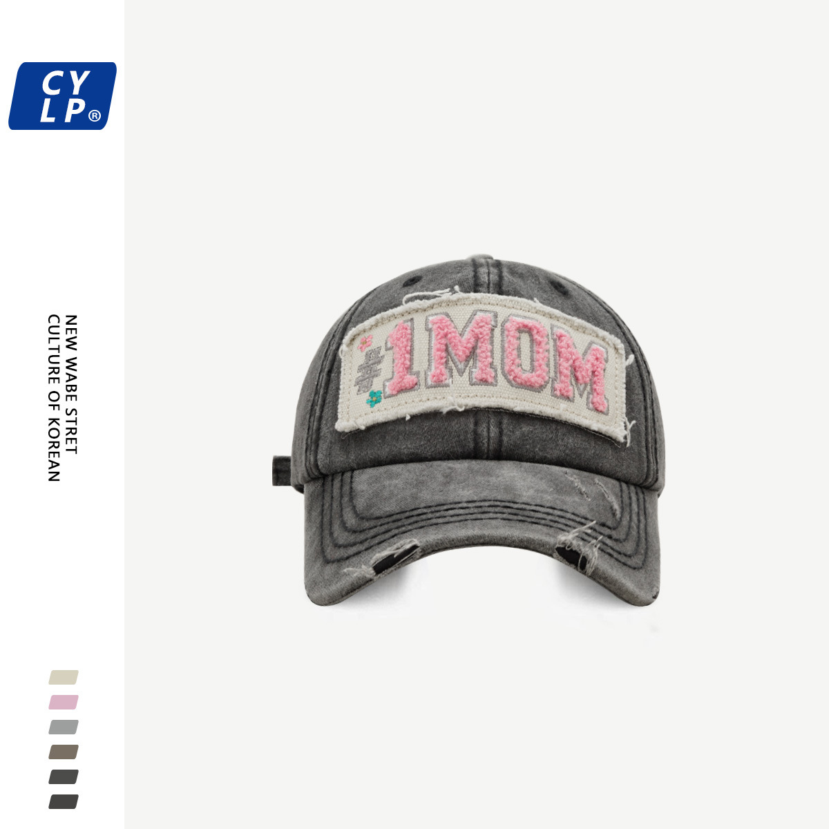 Toalla de diseño original carta bordada etiqueta de tela gorra de béisbol hombres y mujeres Otoño e Invierno estilo coreano moda de la calle rasgado gorra de pico