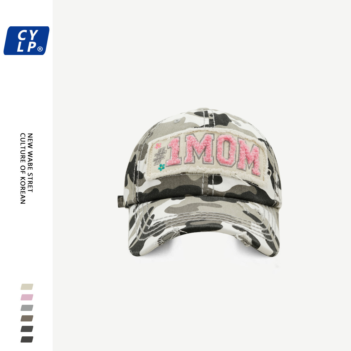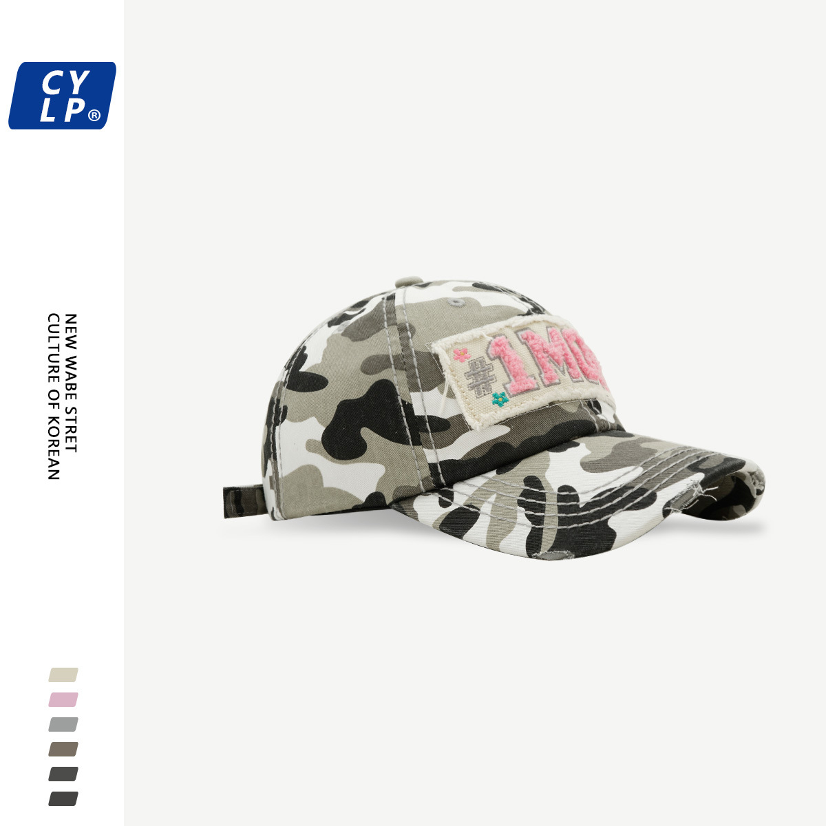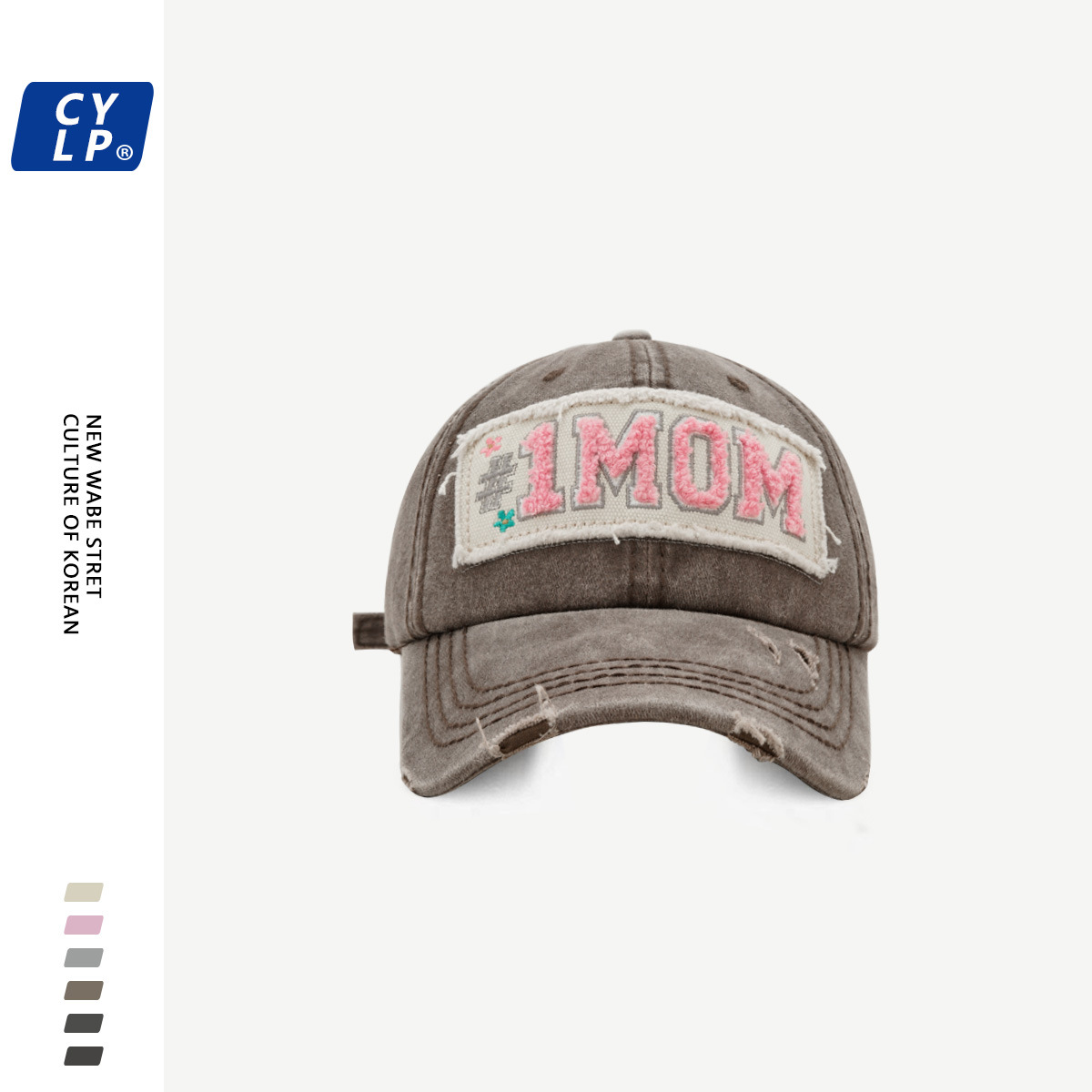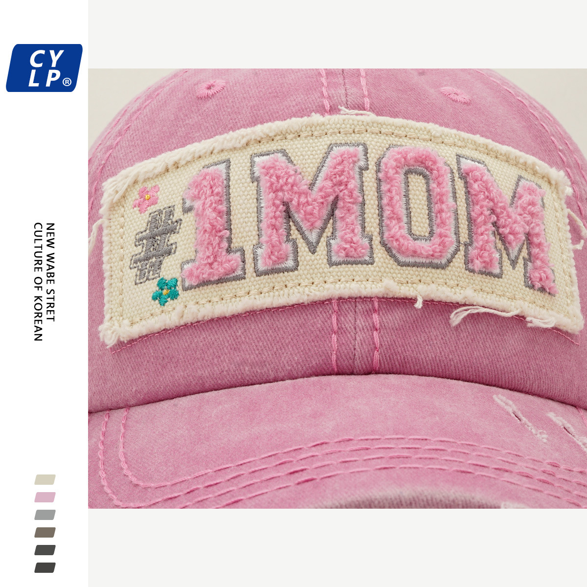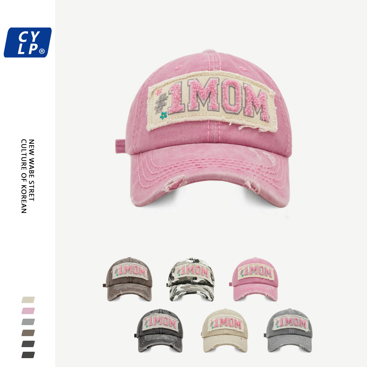 Toalla de diseño original carta bordada etiqueta de tela gorra de béisbol hombres y mujeres Otoño e Invierno estilo coreano moda de la calle rasgado gorra de pico
