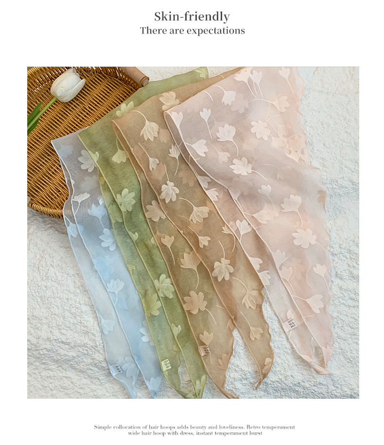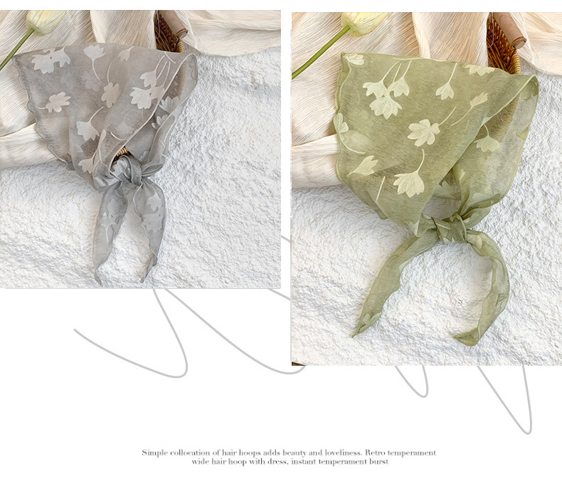 Bufanda triangular, bufanda para el cuello, nueva bufanda de seda fresca pequeña, pañuelo floral de alta calidad, accesorios para el cabello de estilo pastoral femenino de verano