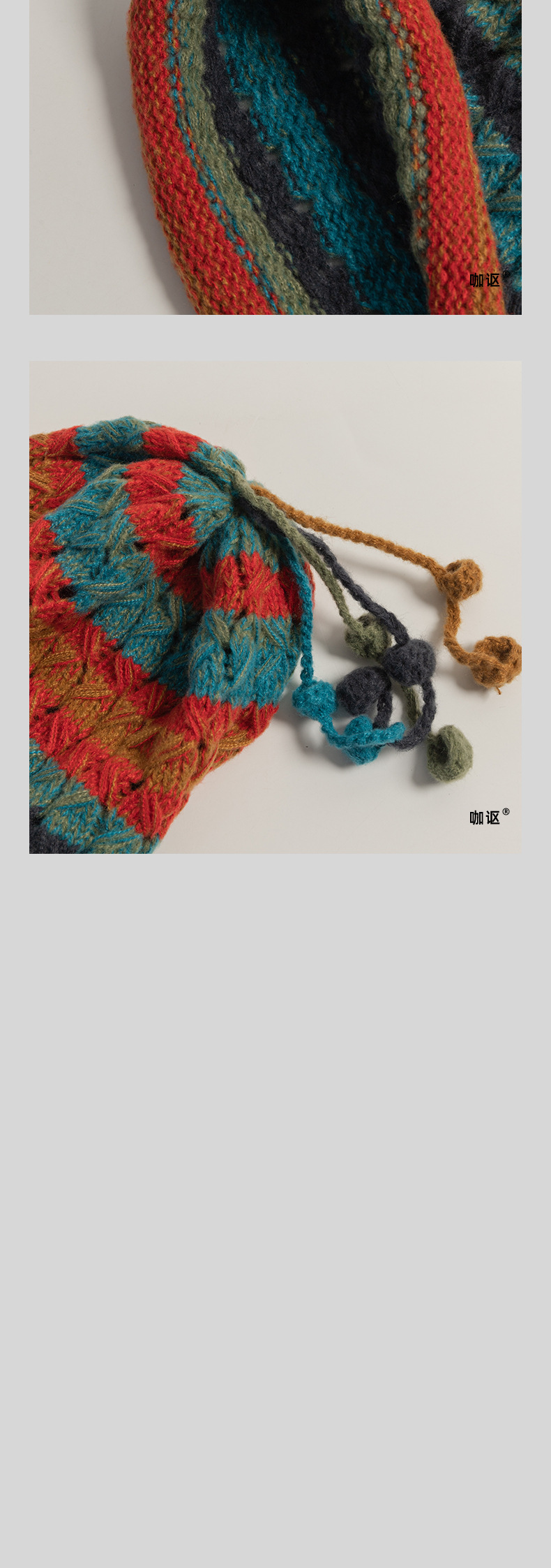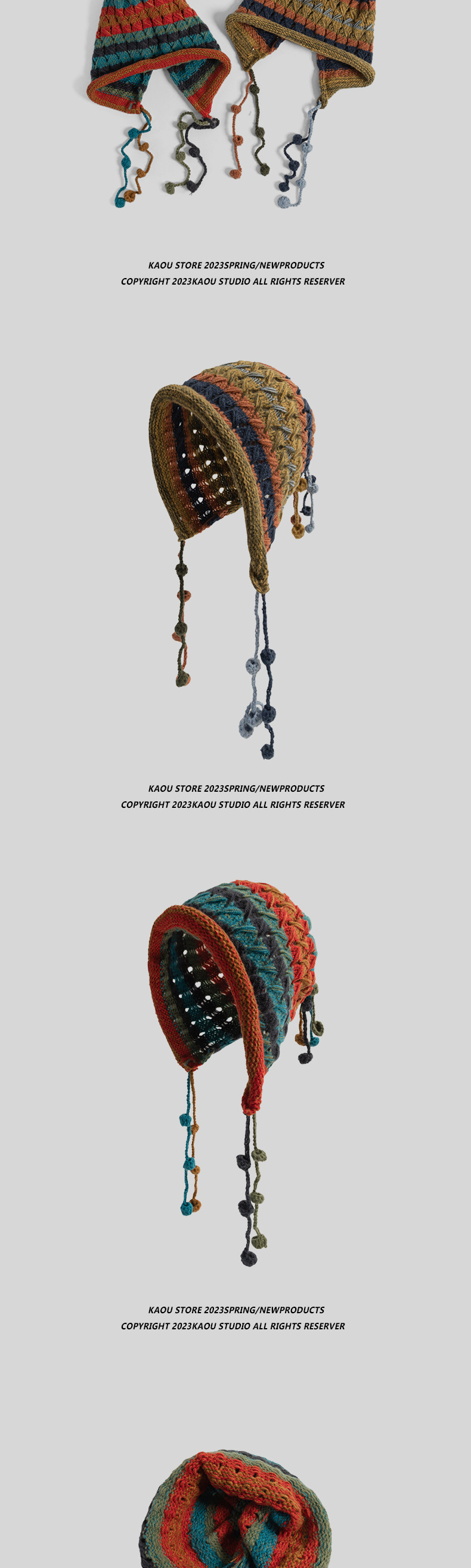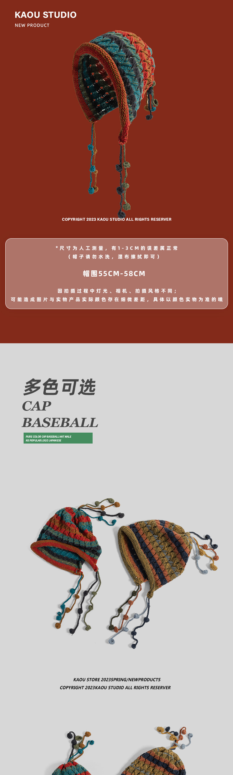 Japonés retro hecho a mano ganchillo nicho borla sombrero de lana hembra otoño e invierno cálido protección del oído sombrero de punto entre padres e hijos sombrero frío