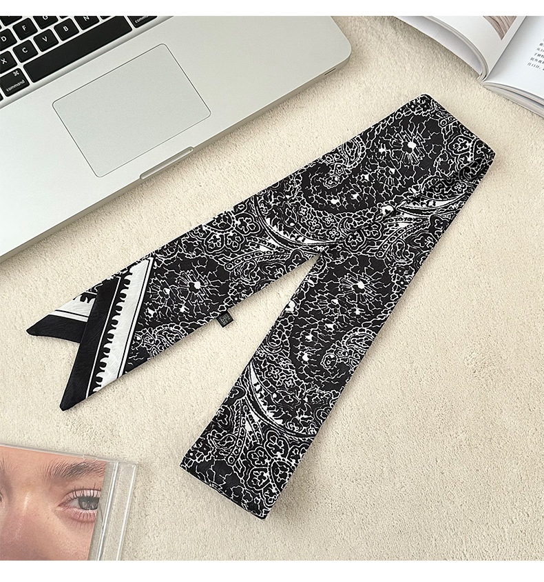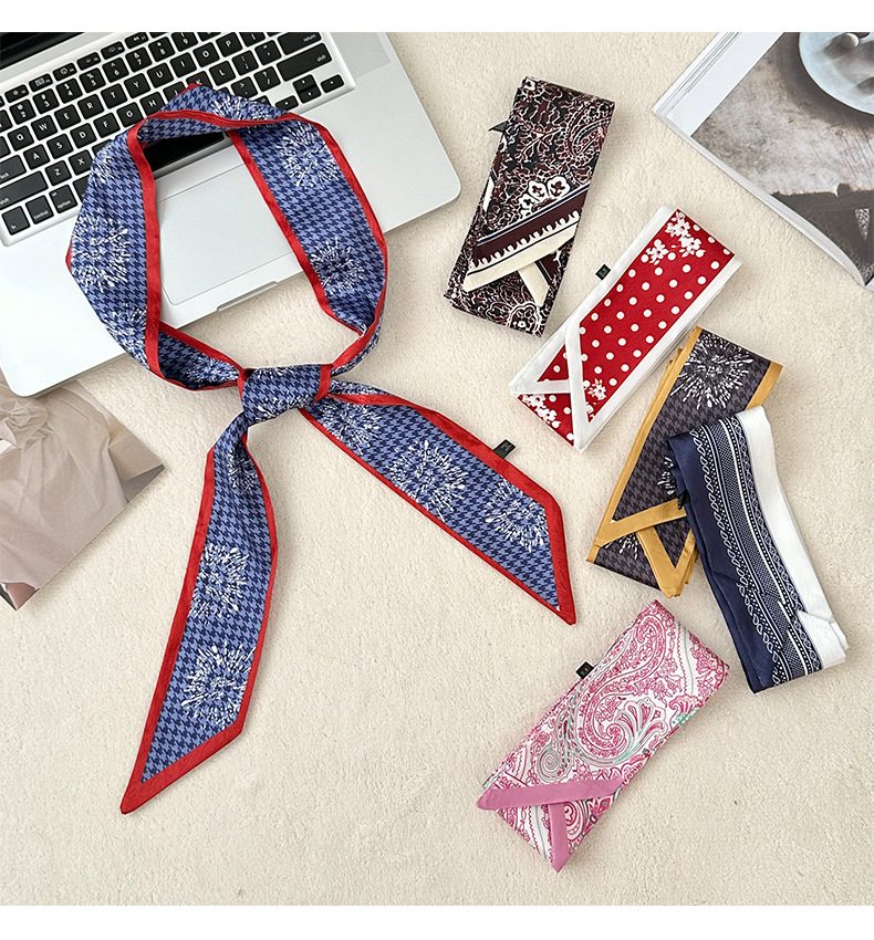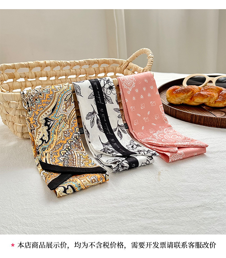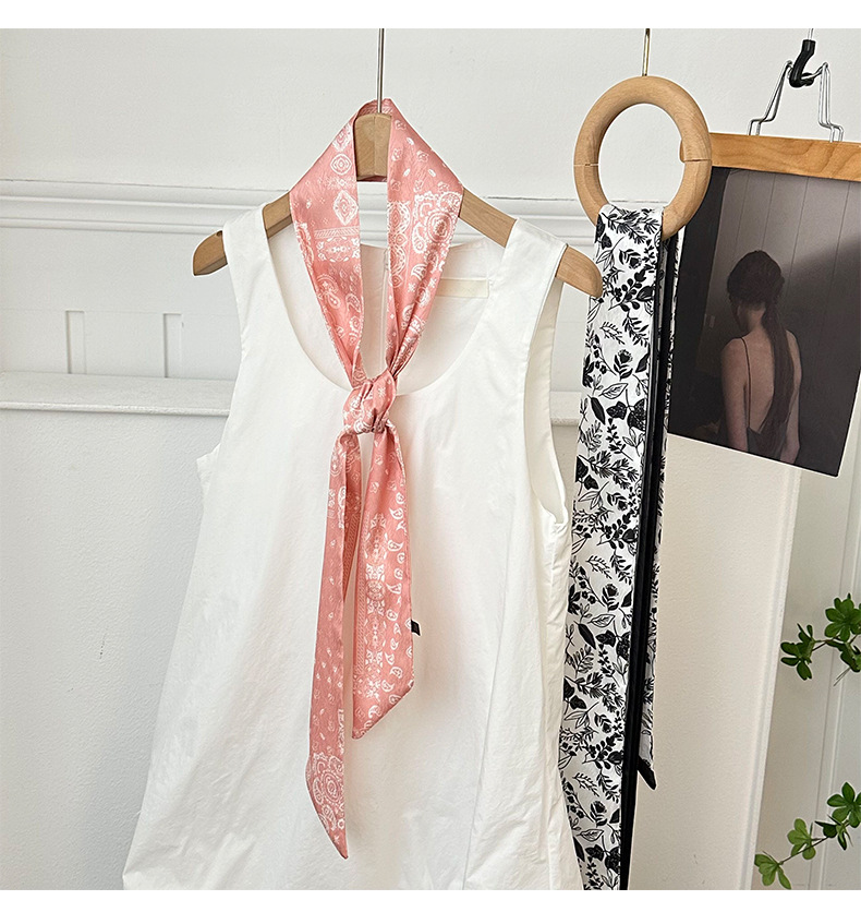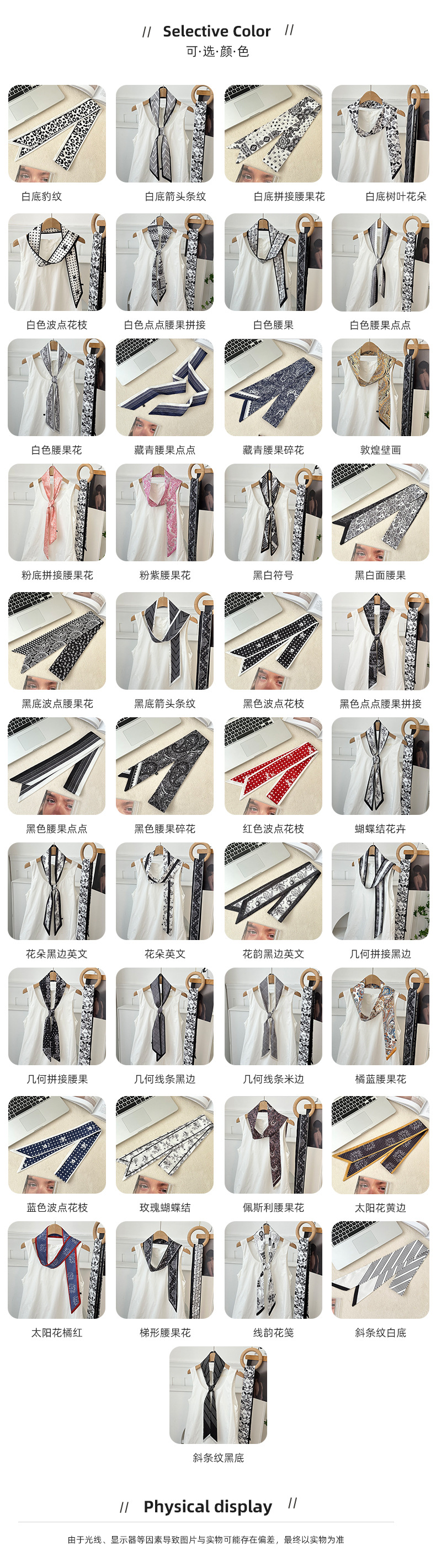 Pañuelo de seda, banda larga, sensación de alta calidad, bufanda pequeña decorativa, bolsa de toalla de seda, envuelta, pañuelo floral, cinta para el cabello, serpentín para el cabello