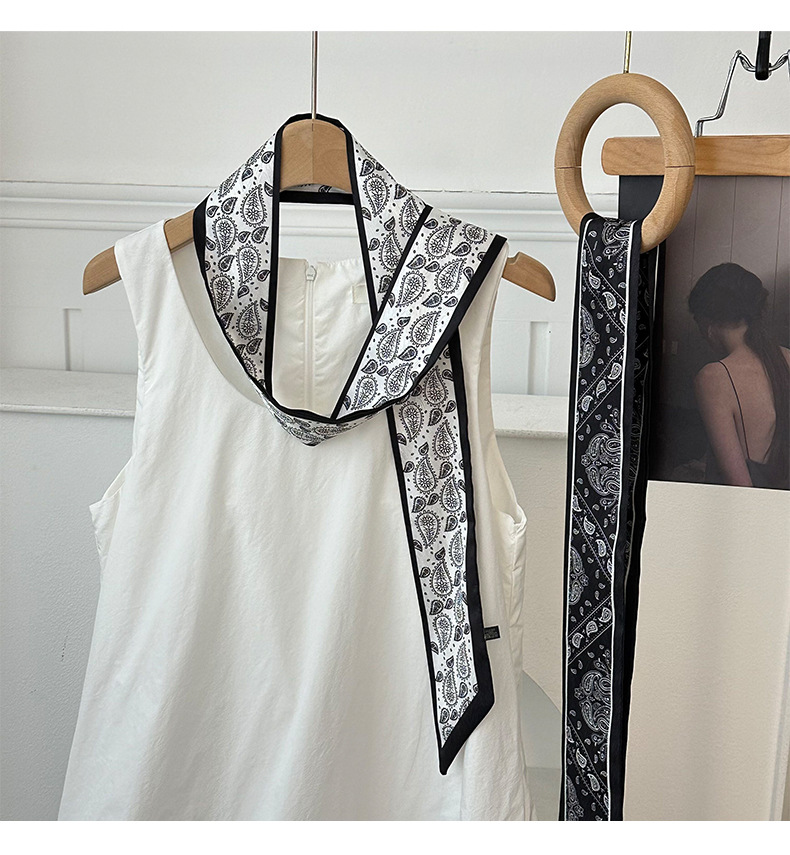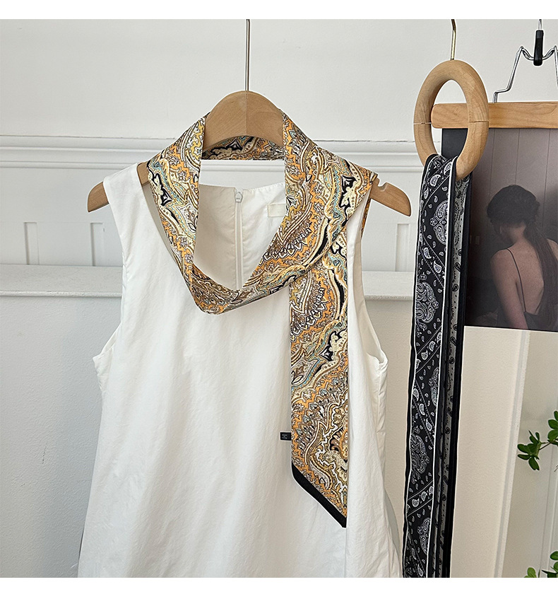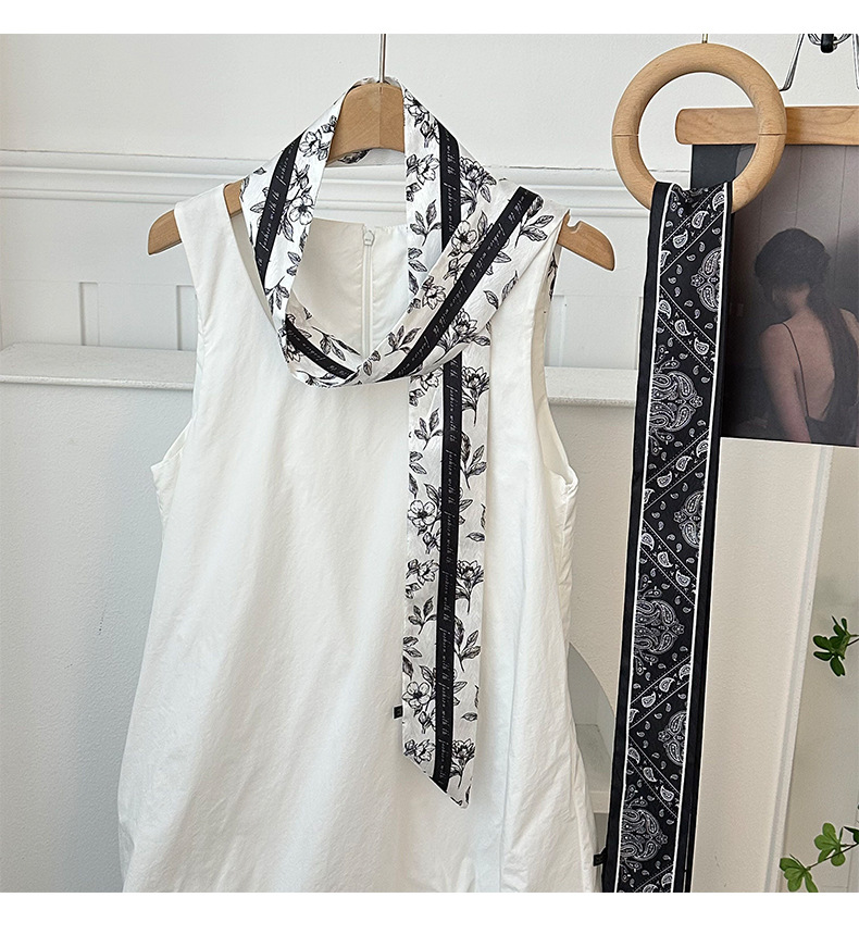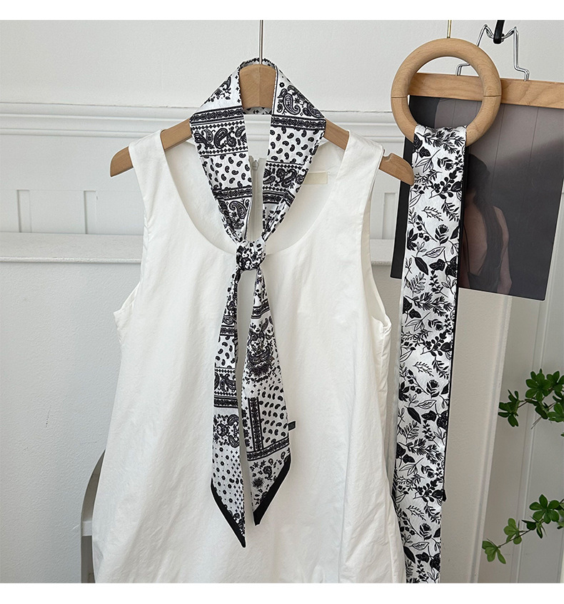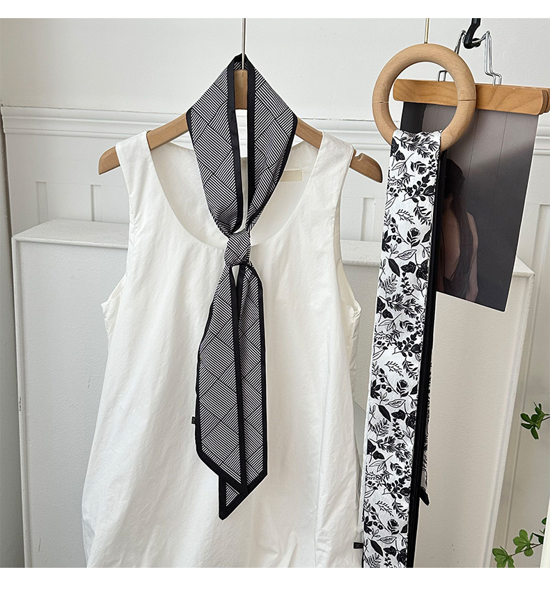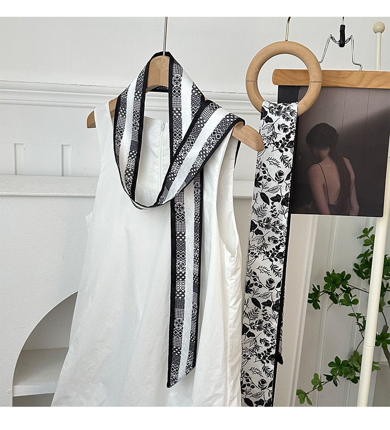 Pañuelo de seda, banda larga, sensación de alta calidad, bufanda pequeña decorativa, bolsa de toalla de seda, envuelta, pañuelo floral, cinta para el cabello, serpentín para el cabello