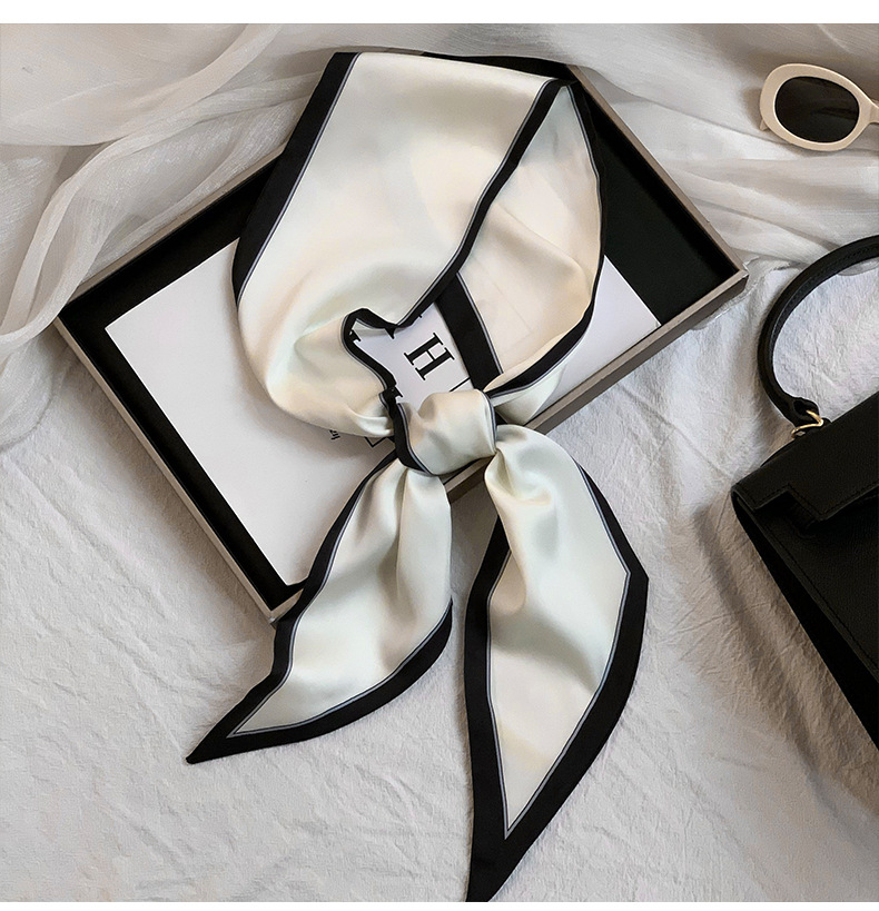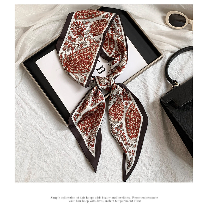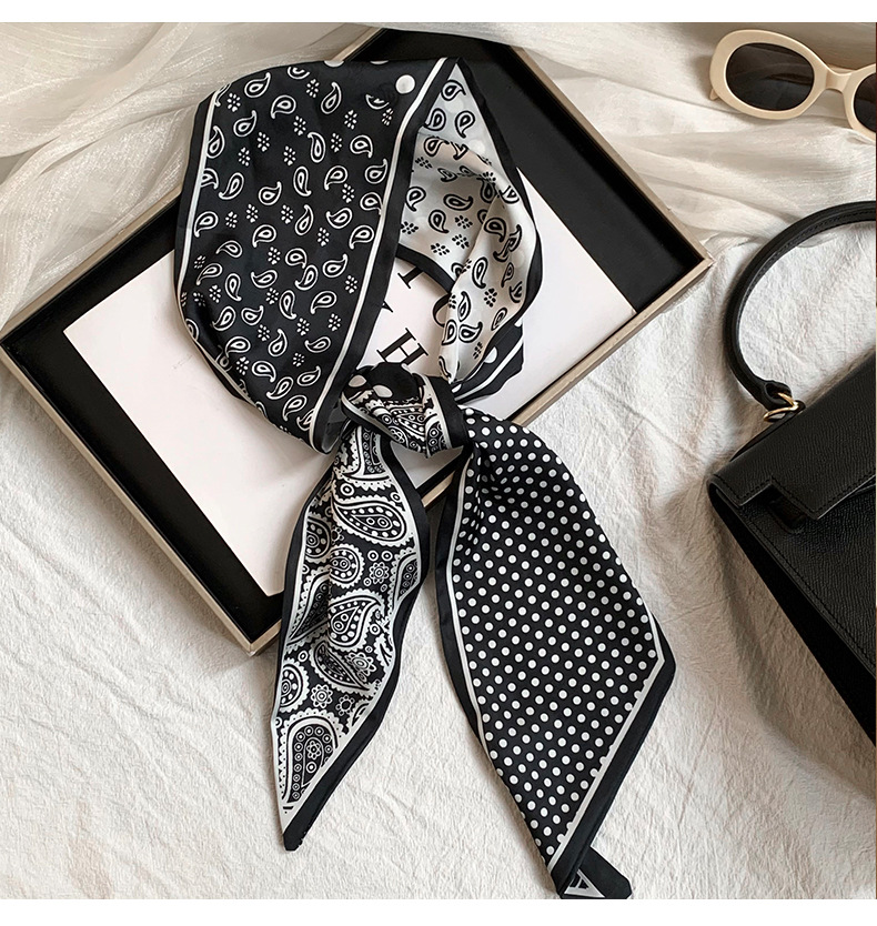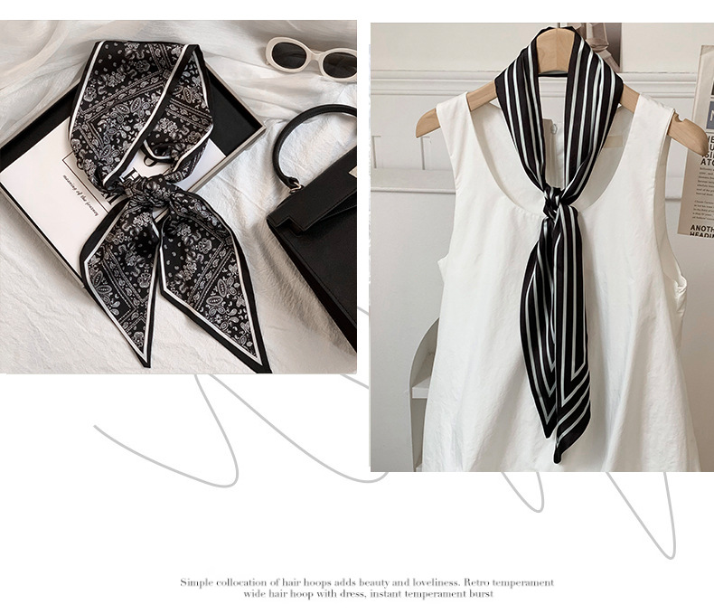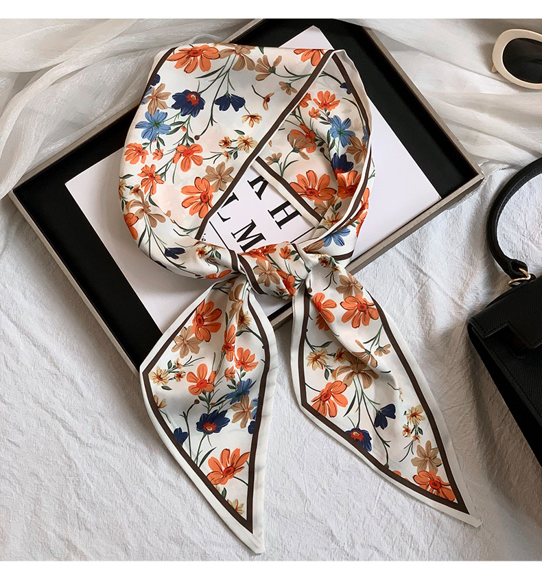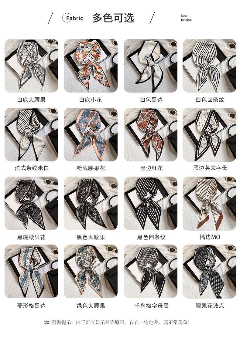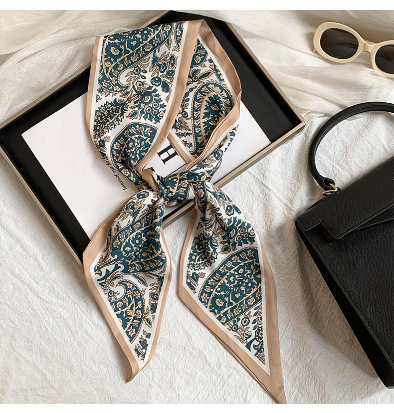 Bufanda de seda, ambiente coreano, impresión de verano, tiras largas de doble capa, bolsa de encaje en ángulo oblicuo, bufanda pequeña, pañuelo en la cabeza, cabello atado