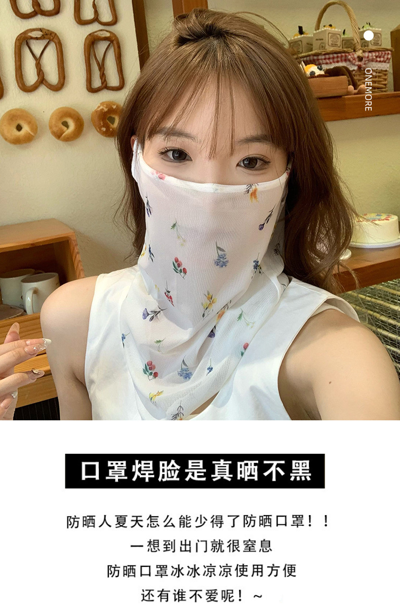 Máscara de protección solar, protección para el cuello, estilo fino de verano, nueva máscara de impresión de todo fósforo, bicicleta al aire libre, conducción, máscara de oreja colgante