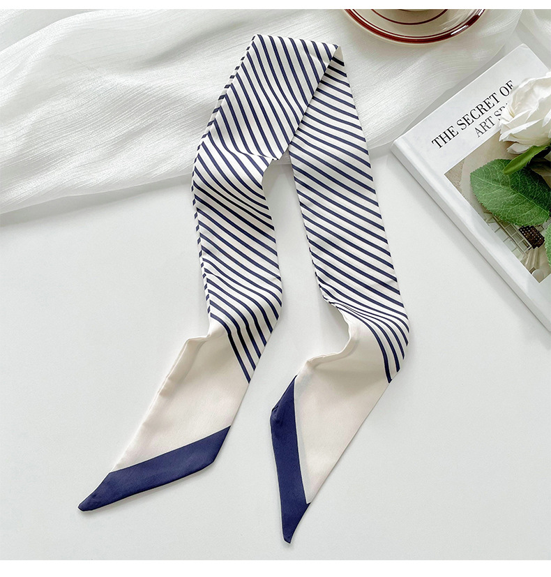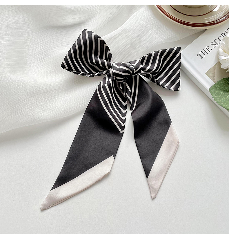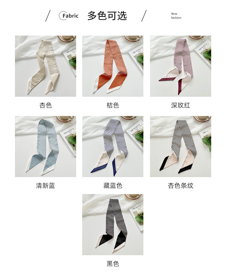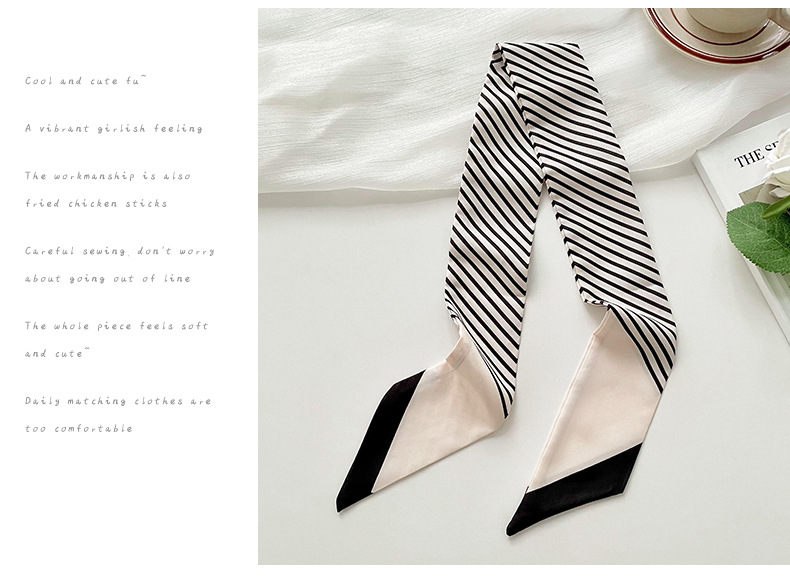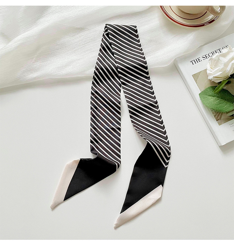 Pañuelo de seda pequeño delgado y largo para mujer, primavera y verano, versión coreana de todo fósforo, rayas negras, bolsa de atar para el cabello, bufanda decorativa, cinta para el cabello, serpentina