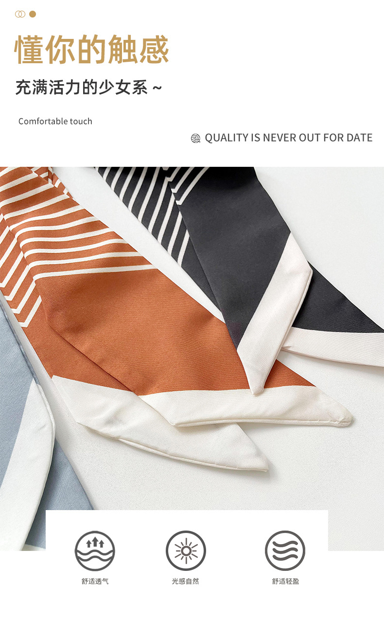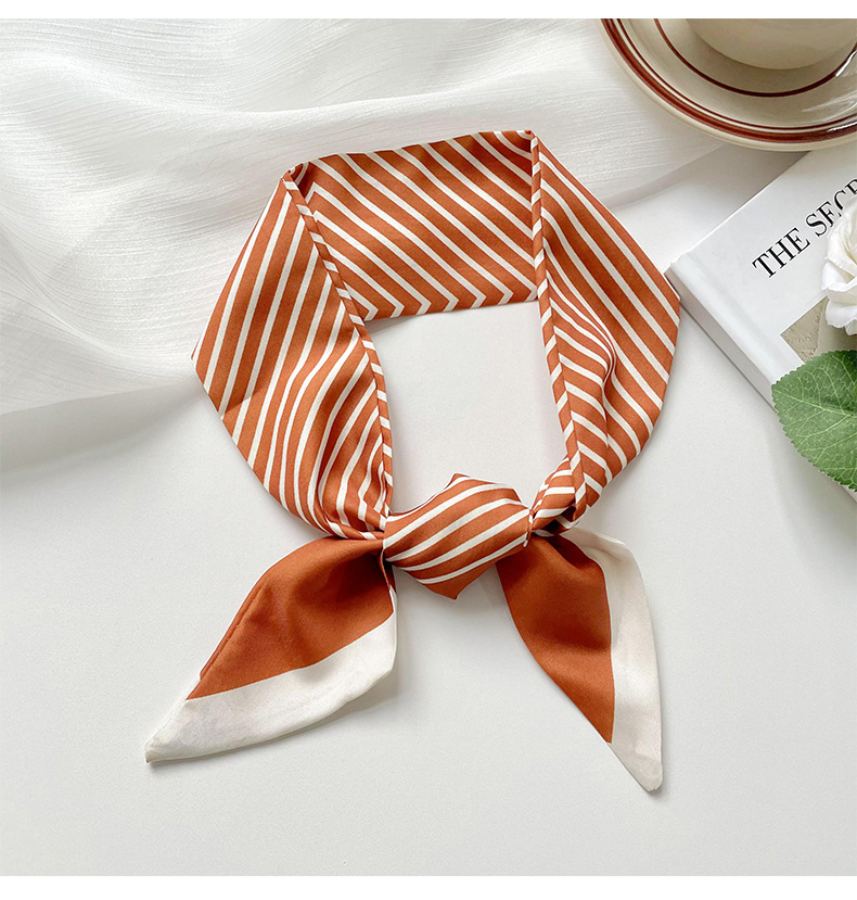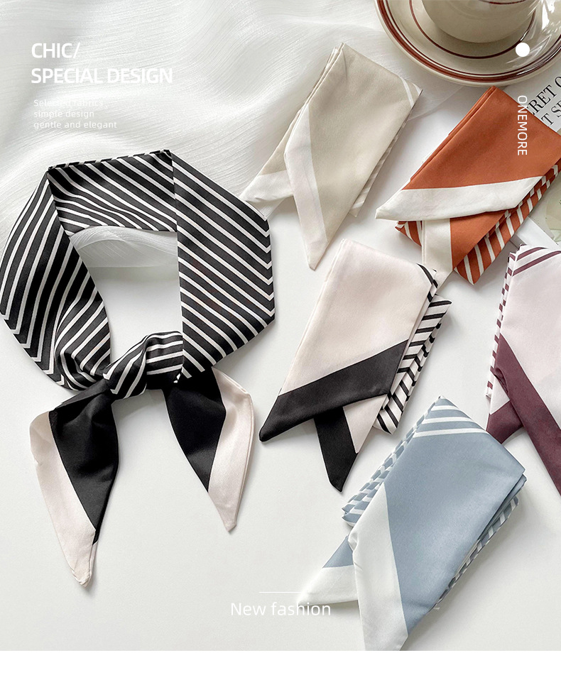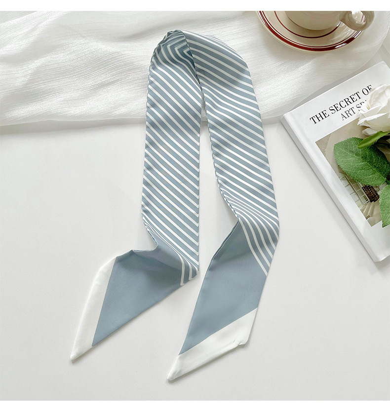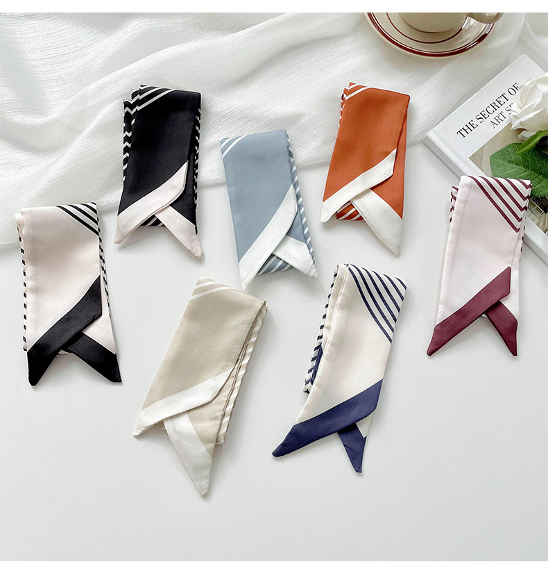 Pañuelo de seda pequeño delgado y largo para mujer, primavera y verano, versión coreana de todo fósforo, rayas negras, bolsa de atar para el cabello, bufanda decorativa, cinta para el cabello, serpentina