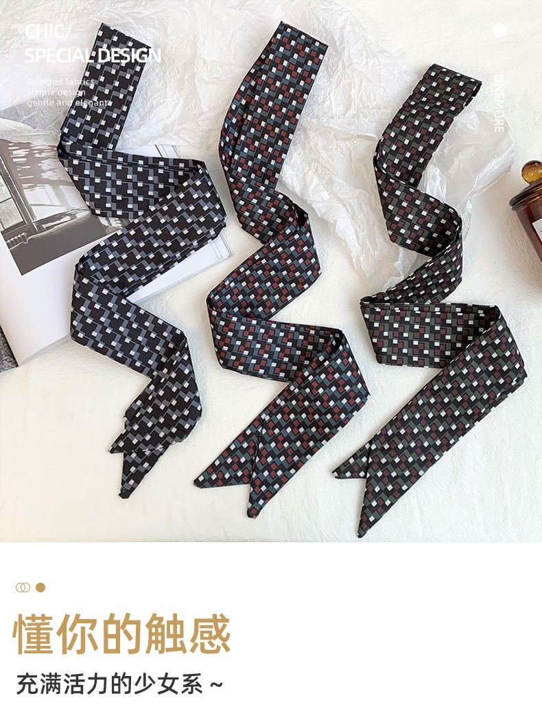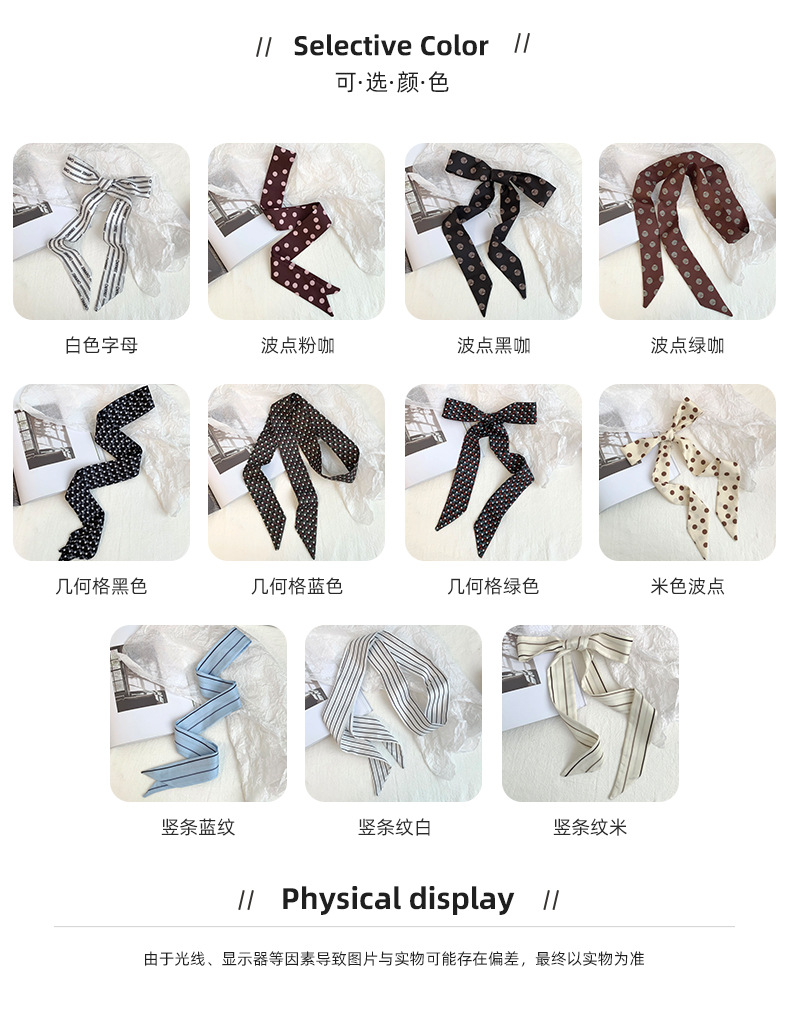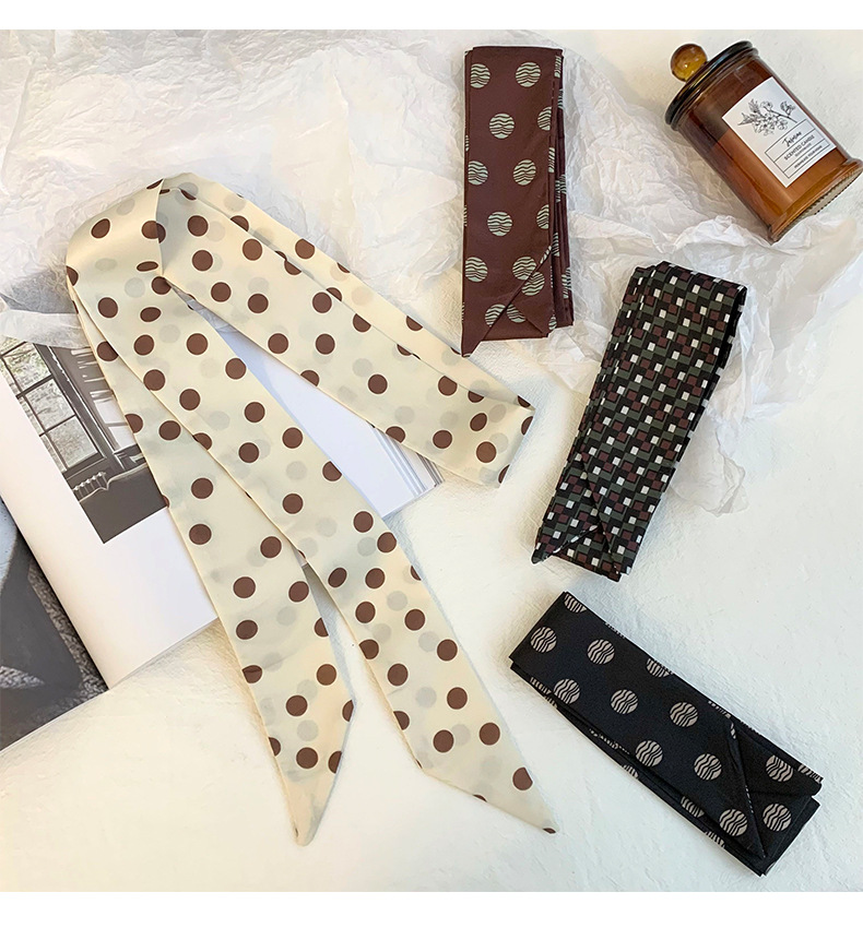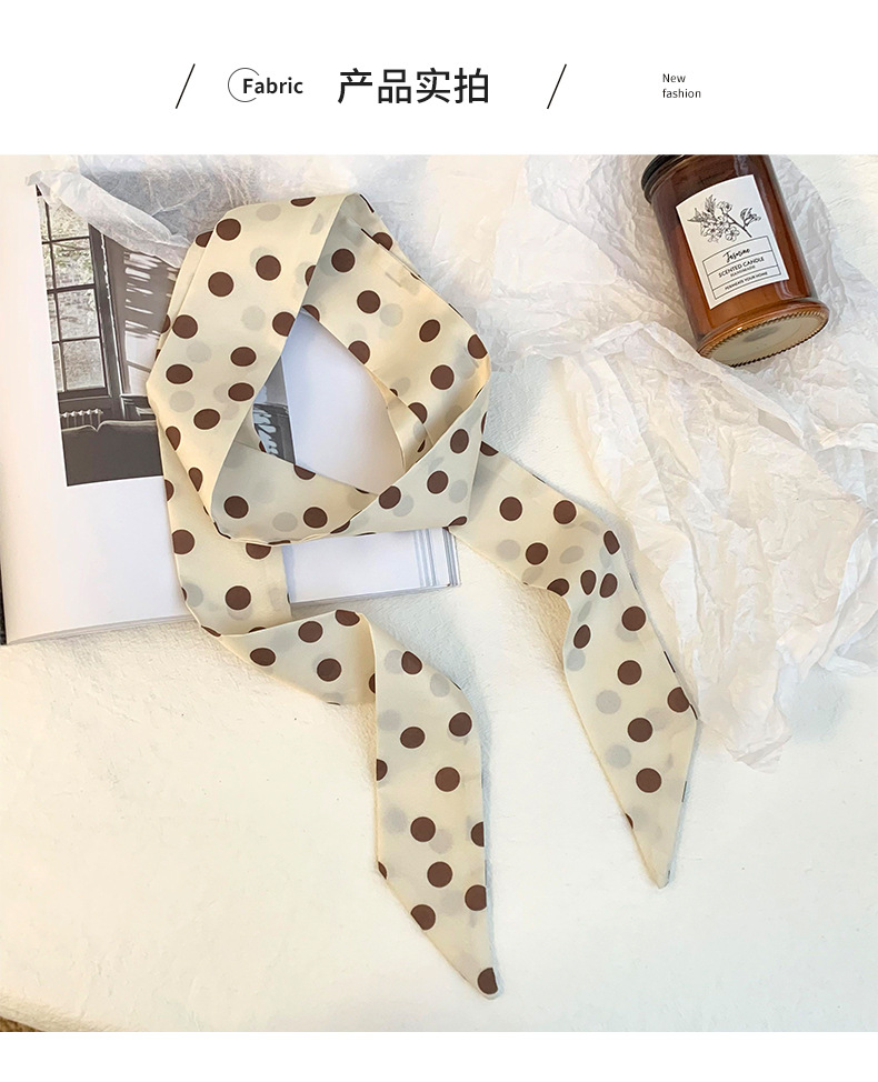 Bufanda de seda de lunares, banda larga, sensación de alta gama, nuevo estilo multiusos, todo-fósforo, bufanda pequeña, pañuelo para el cabello, cinturón de cinta para el cabello