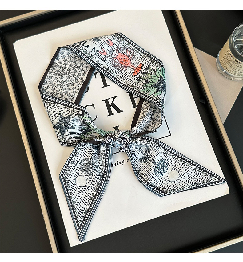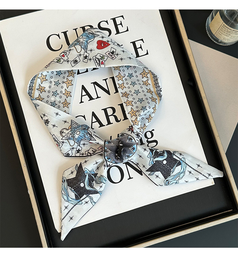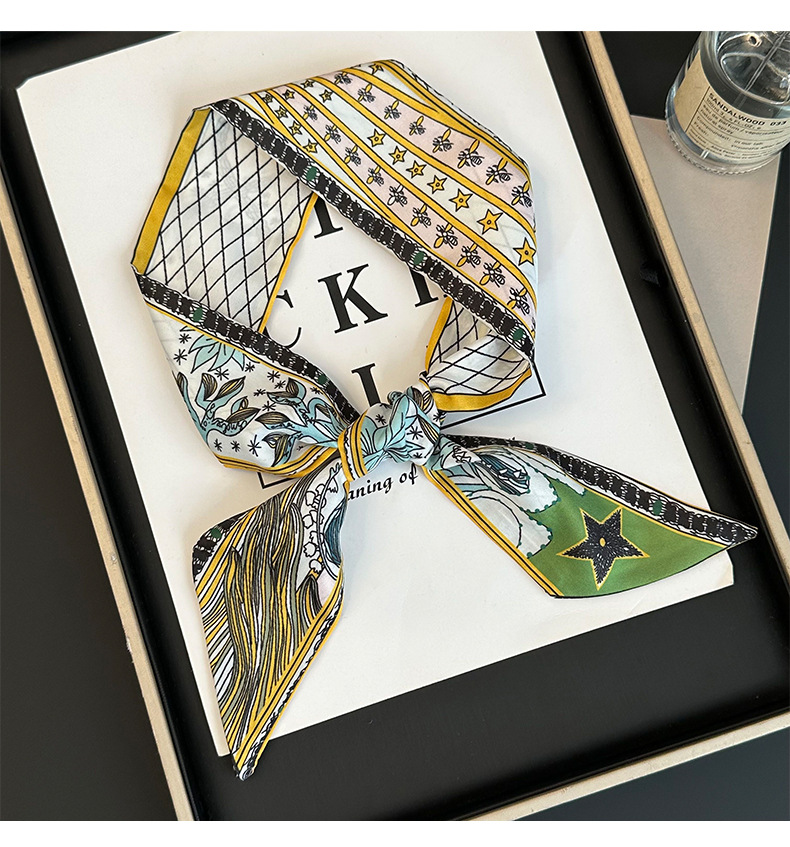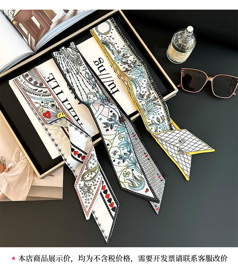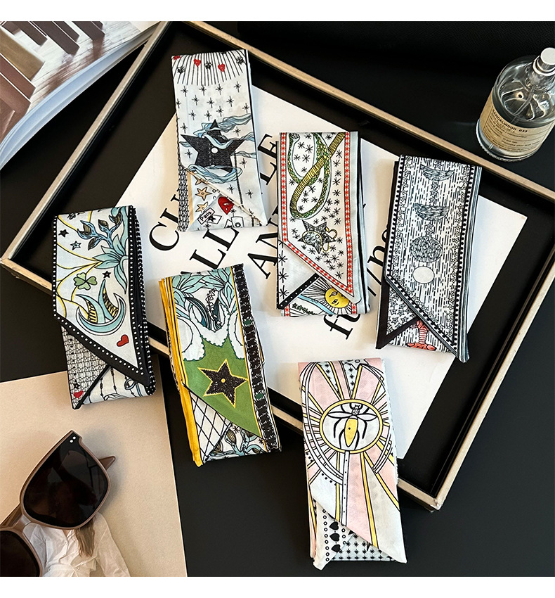 Bufanda de seda, tira delgada y larga, sentido de alta gama, nuevo bolso de la marca del tarot de la constelación, pañuelo para el cabello, cinturón para el cabello, cinturón para la cintura