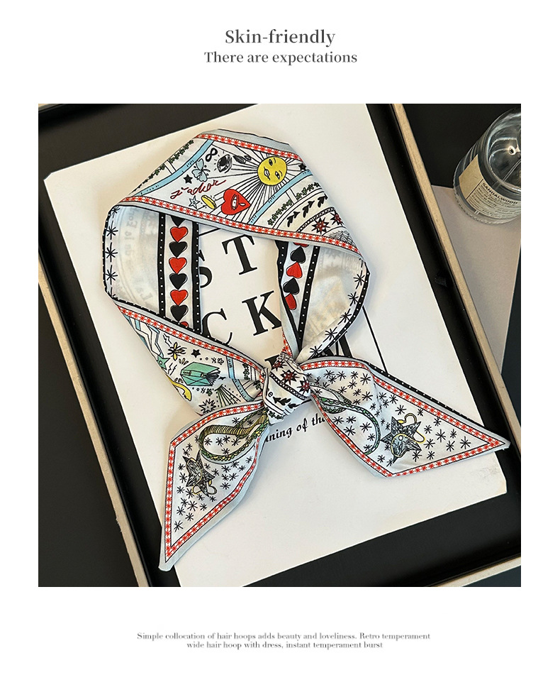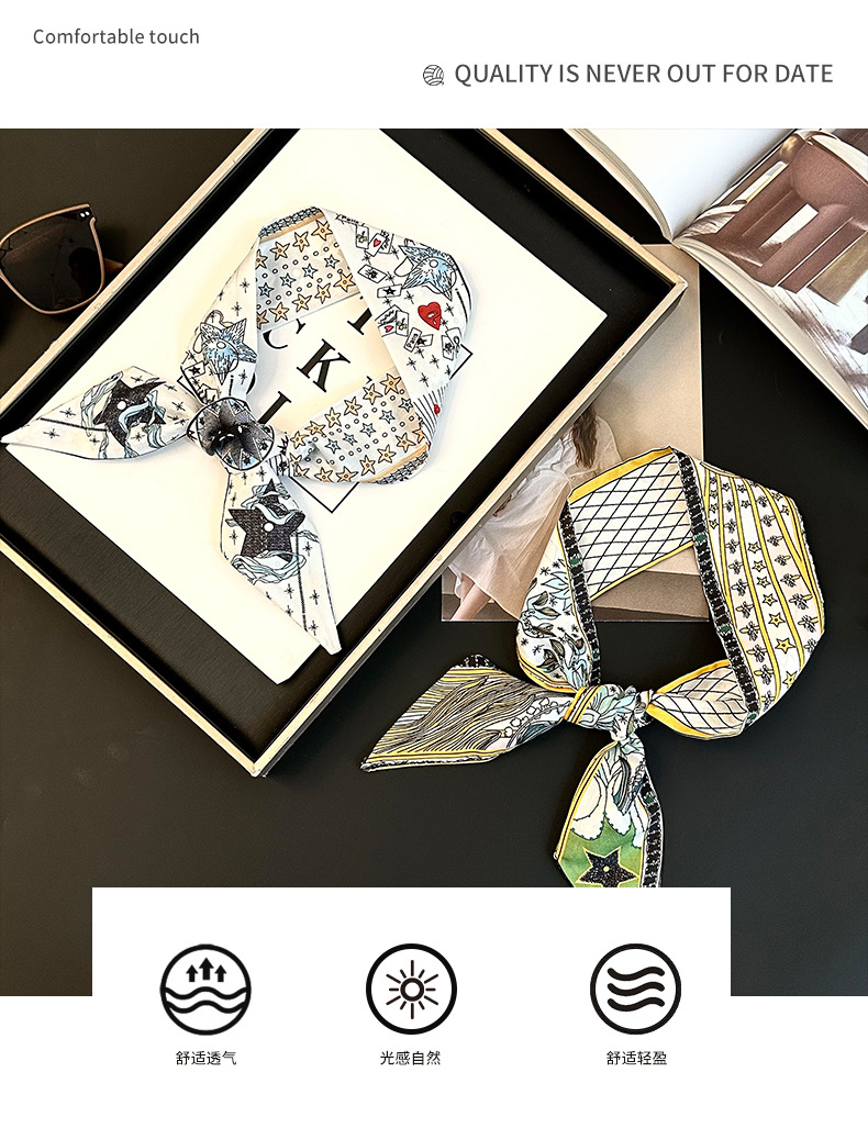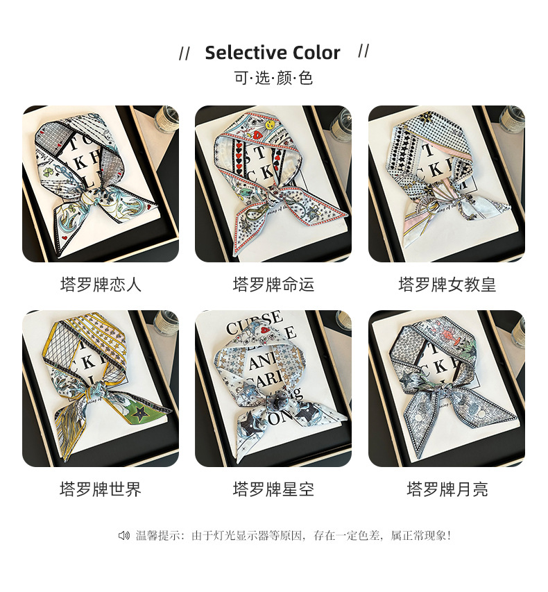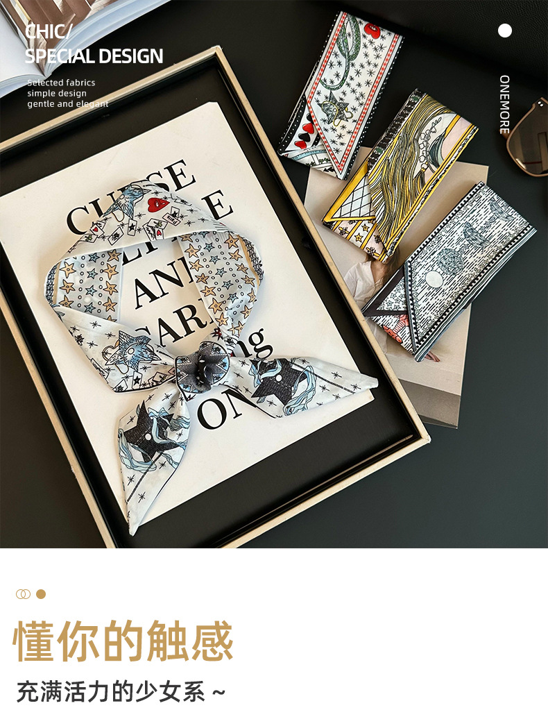 Bufanda de seda, tira delgada y larga, sentido de alta gama, nuevo bolso de la marca del tarot de la constelación, pañuelo para el cabello, cinturón para el cabello, cinturón para la cintura