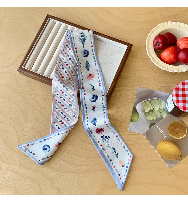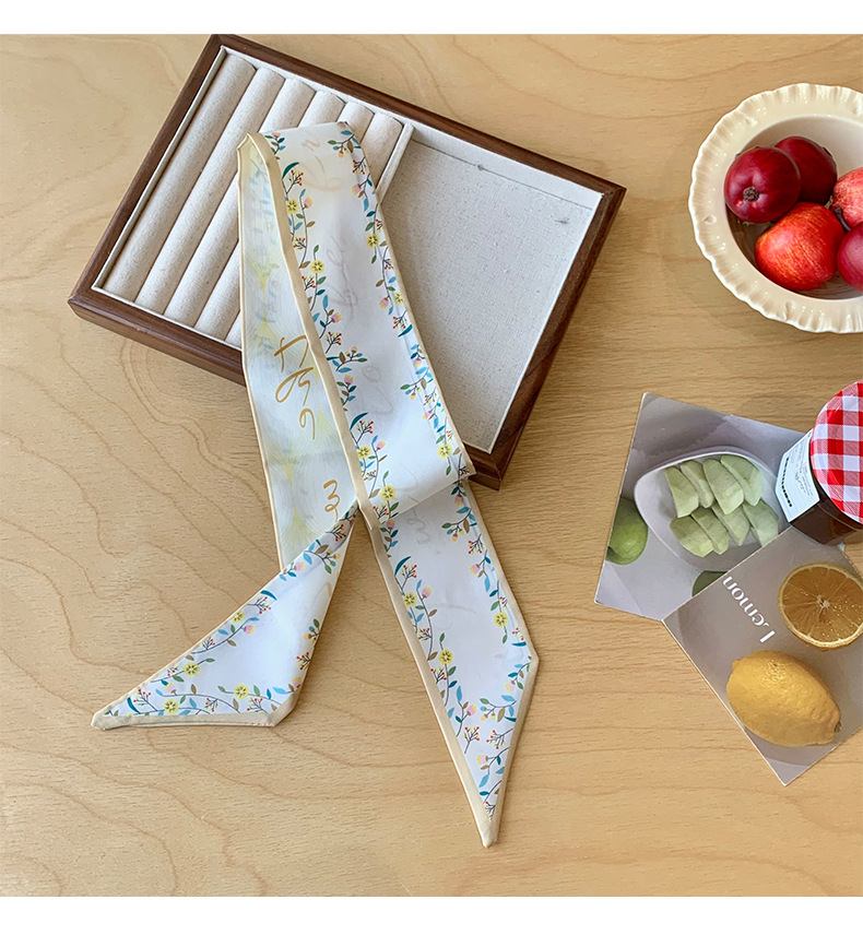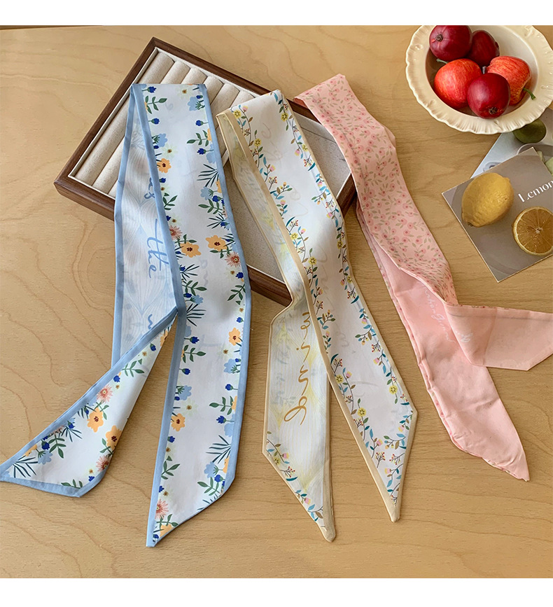 Bufandas de seda para mujeres de verano nuevo bufandas de moda flores y hierbas toallas de muñeca bolsas largas cinta cinturón atar cabello flotante