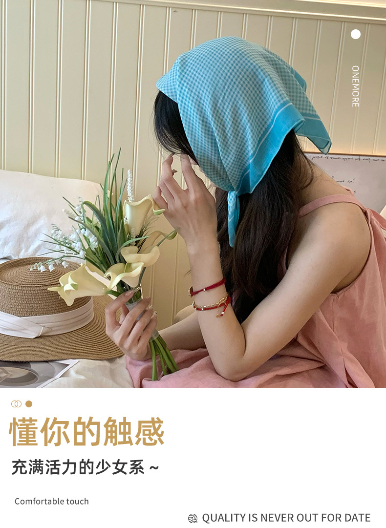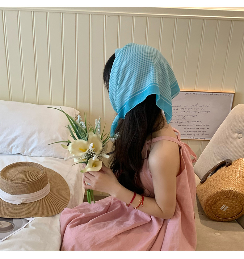 Azul cuadrado de alta calidad toallas de primavera y verano mujeres nuevas bufandas de seda de estilo francés universal moda toallas triangulares al por mayor