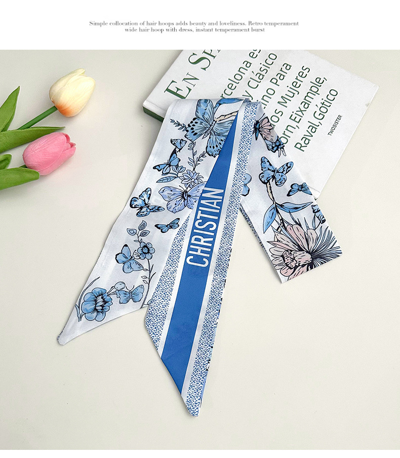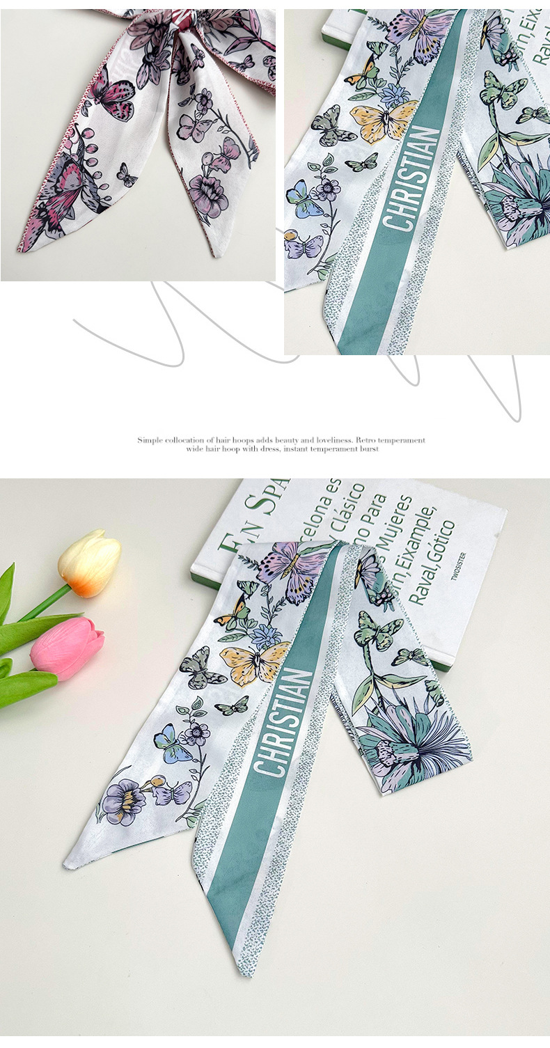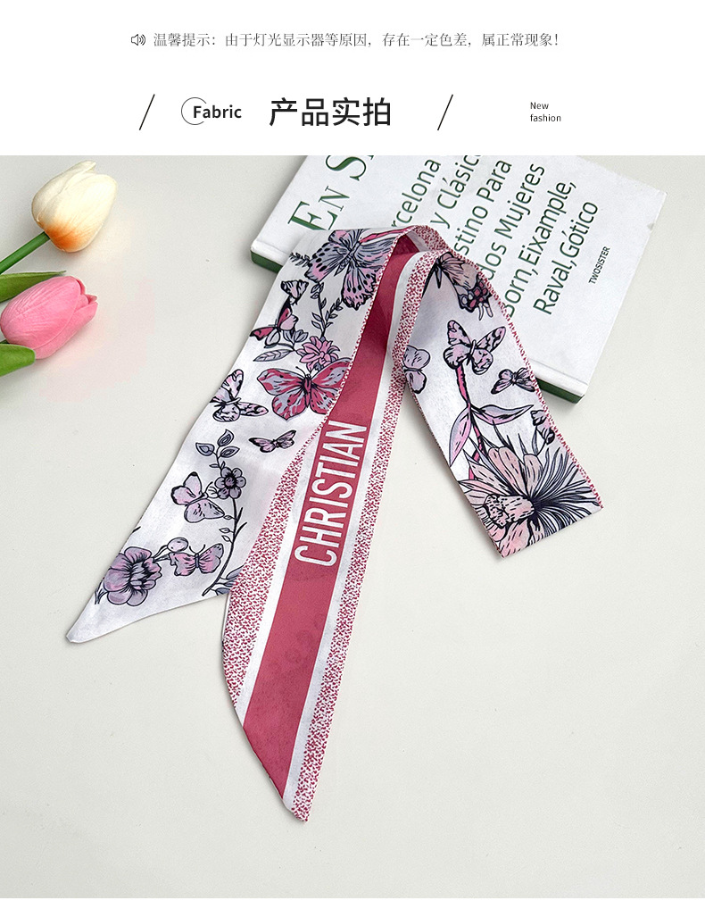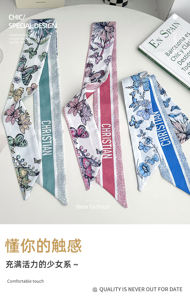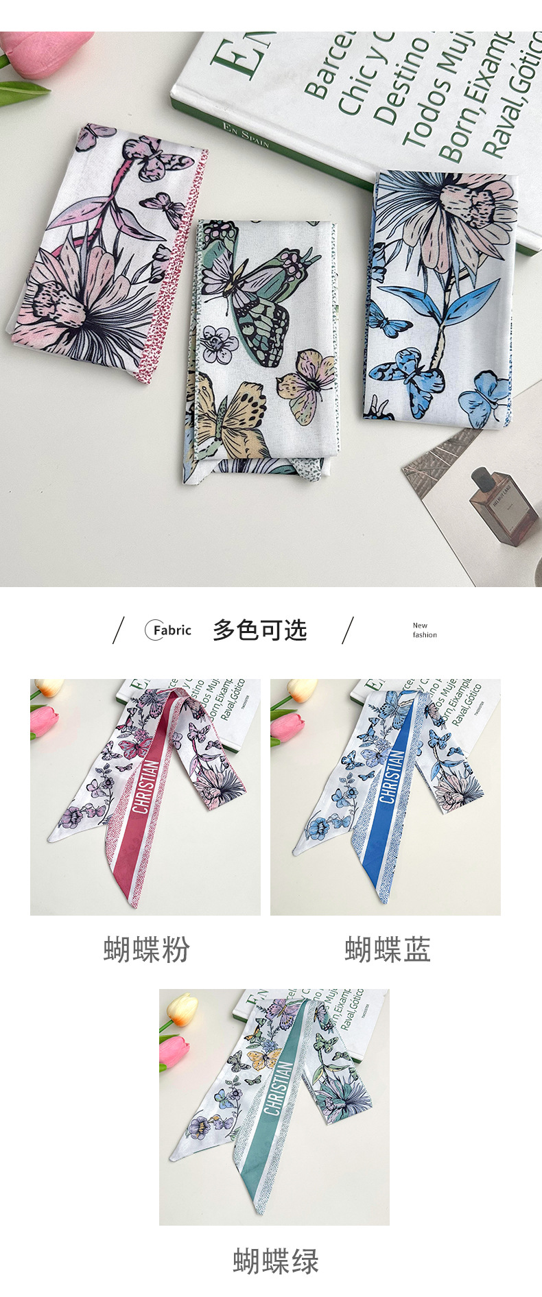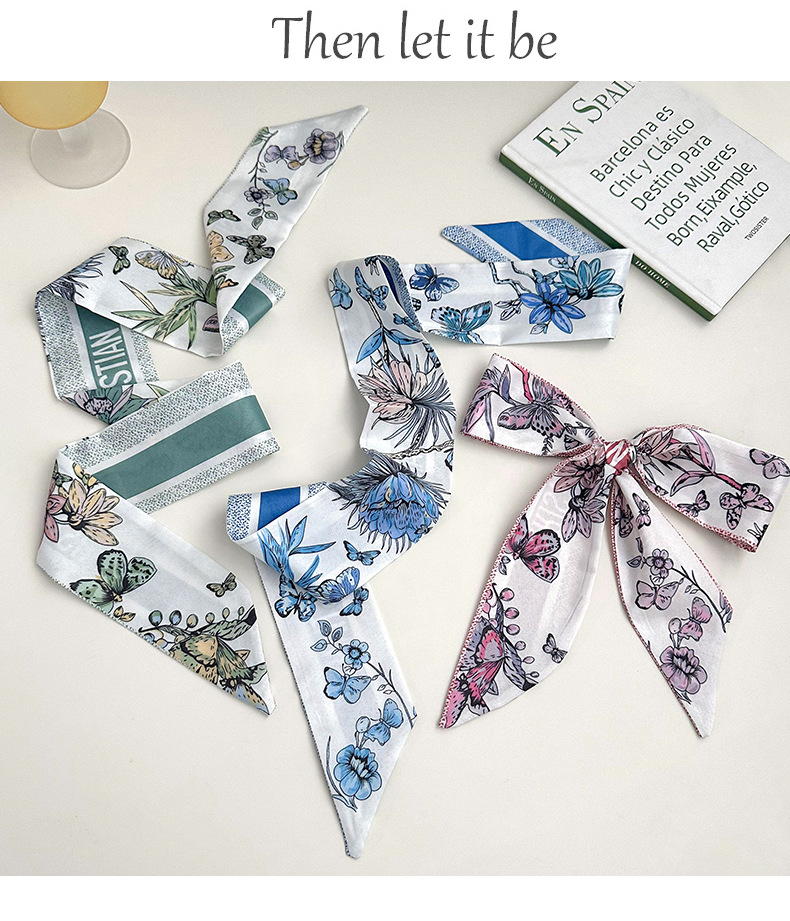 Moda larga bufandas de seda para mujeres, mano de bolsa, cinta, nueva sensación de alto nivel de flores, cinta de cabello de mariposa, cinta de cabello de cabello