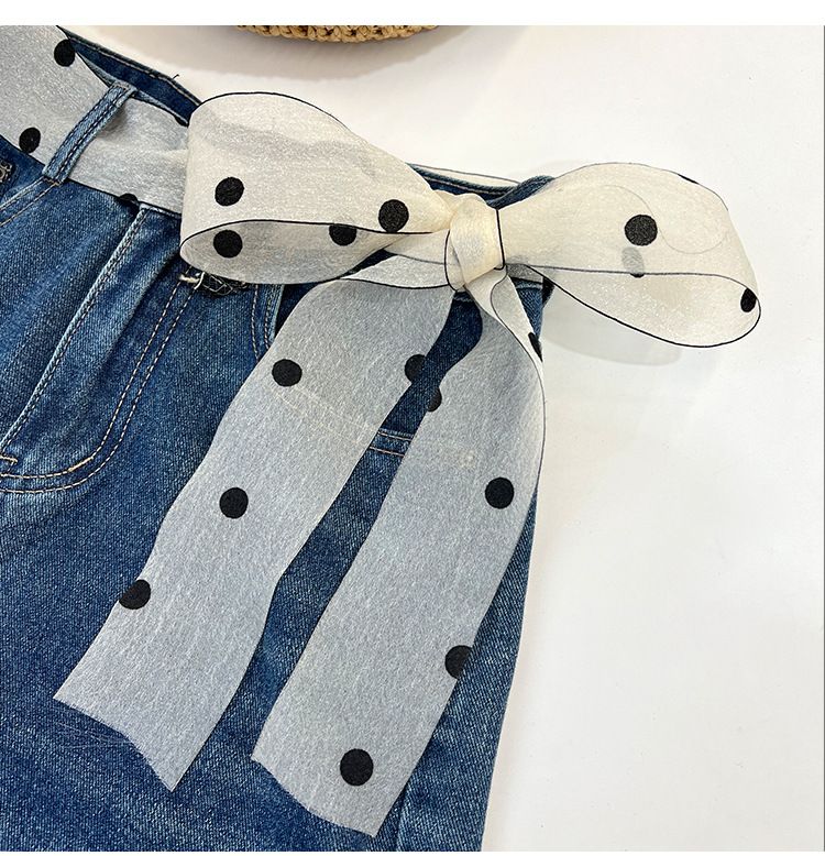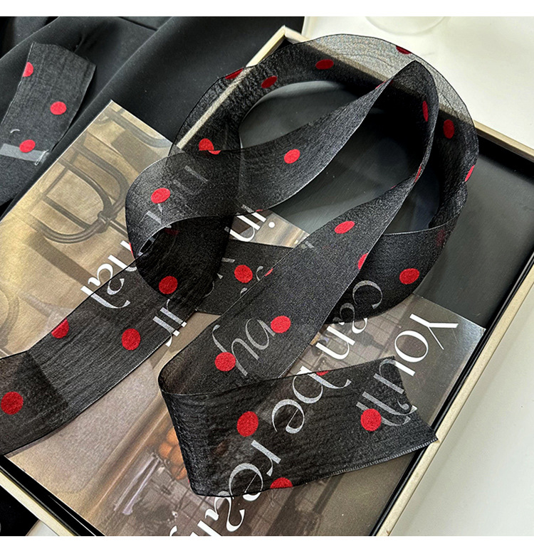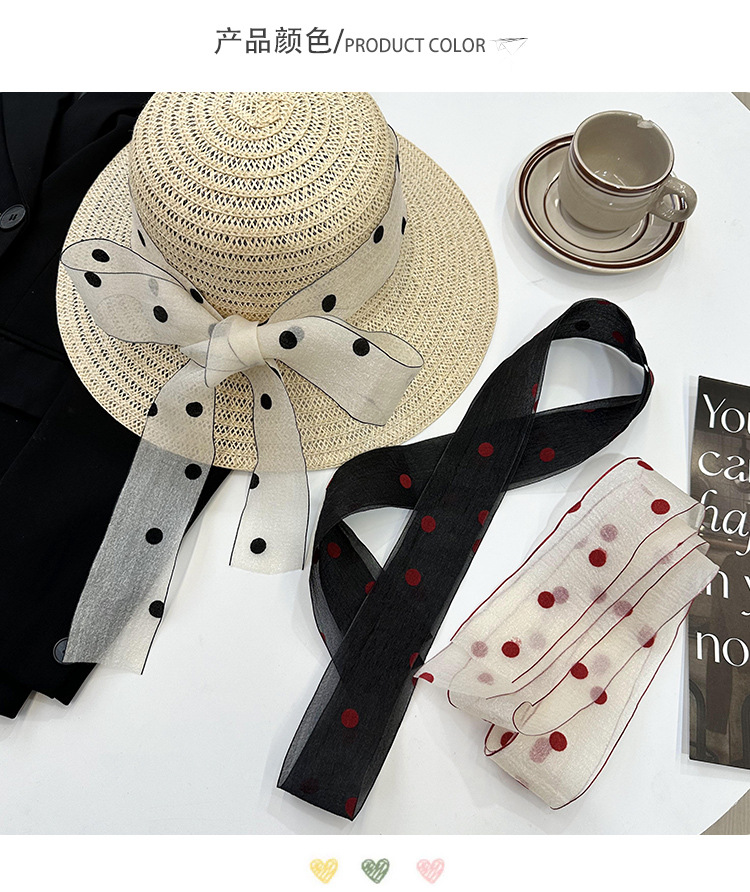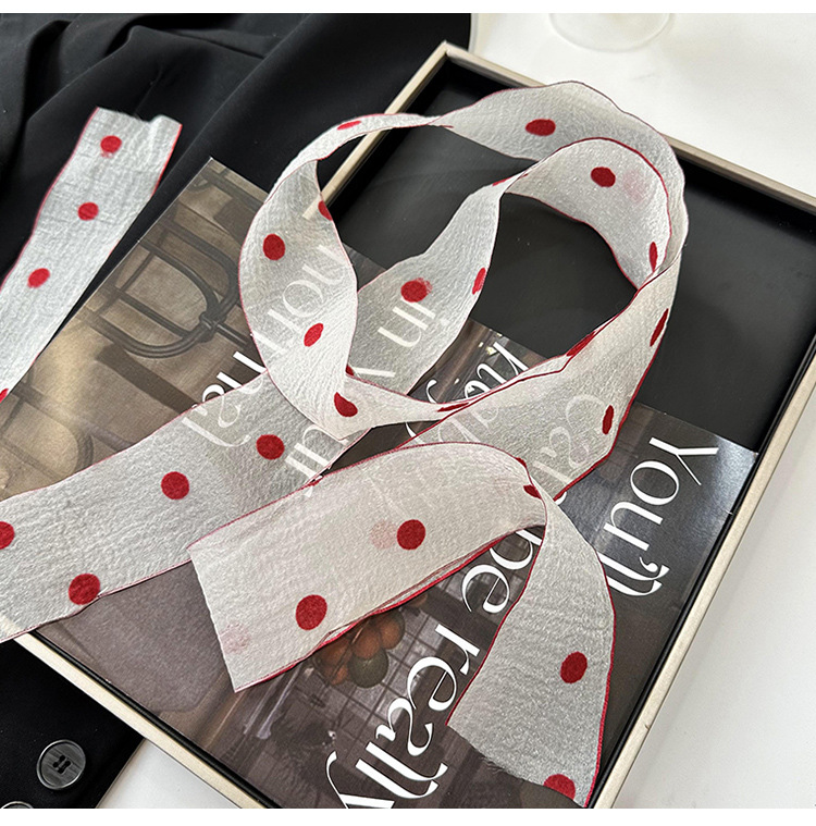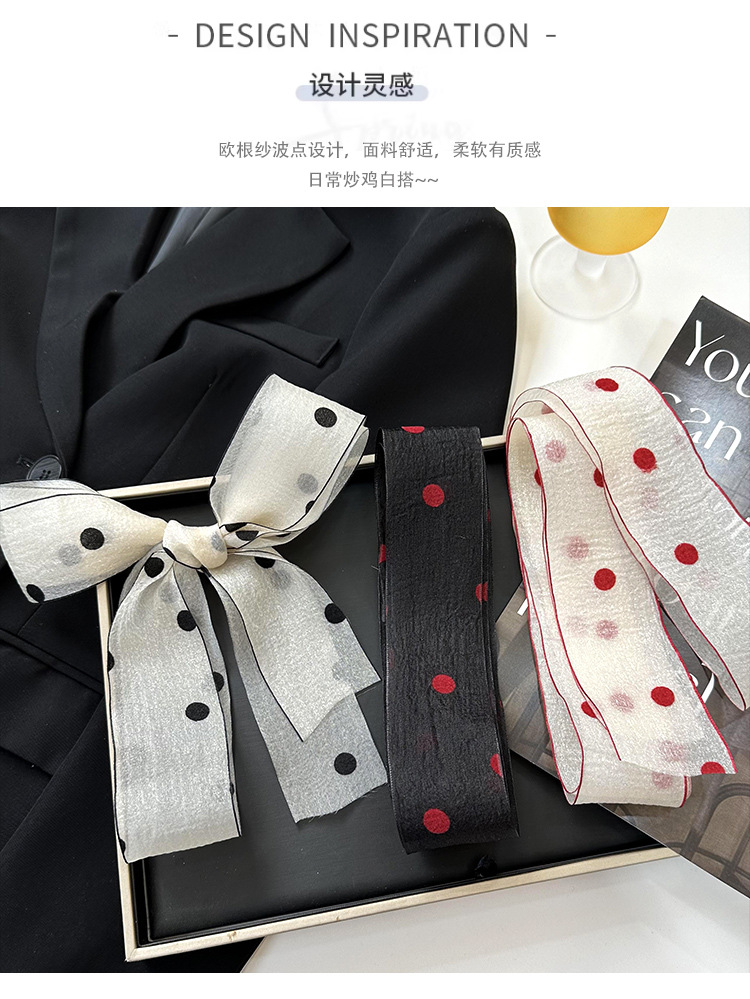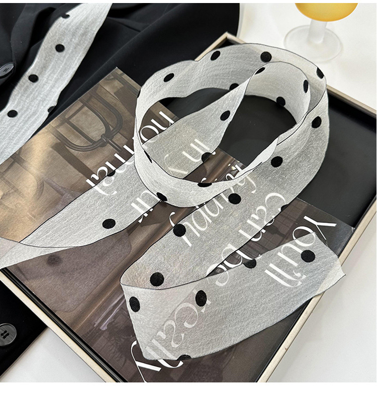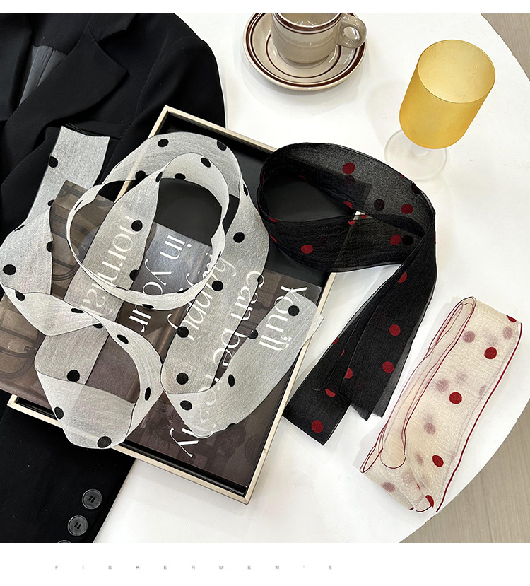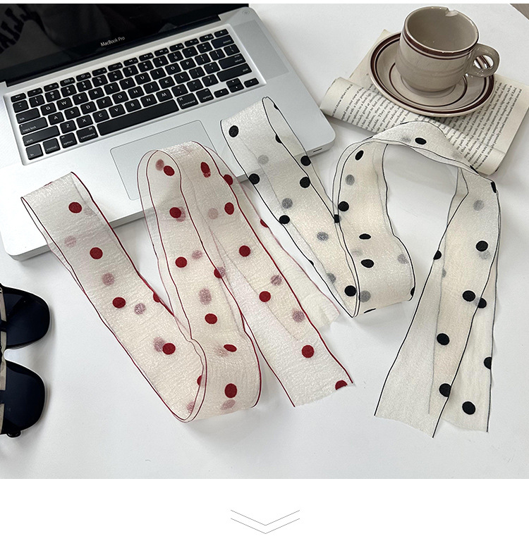 Primavera y verano nueva decoración de lunares serpentina femenina todo-fósforo hada bufanda de seda larga cinturón de pelo literario bufanda de encaje trenzado