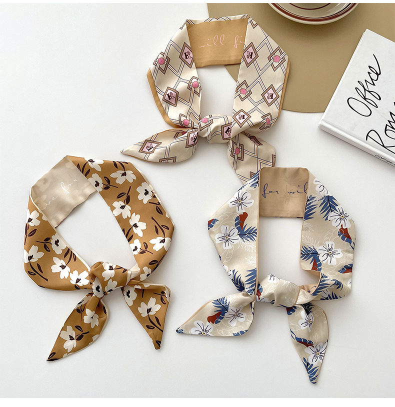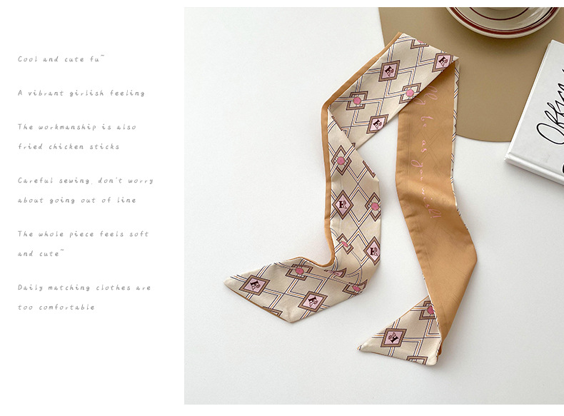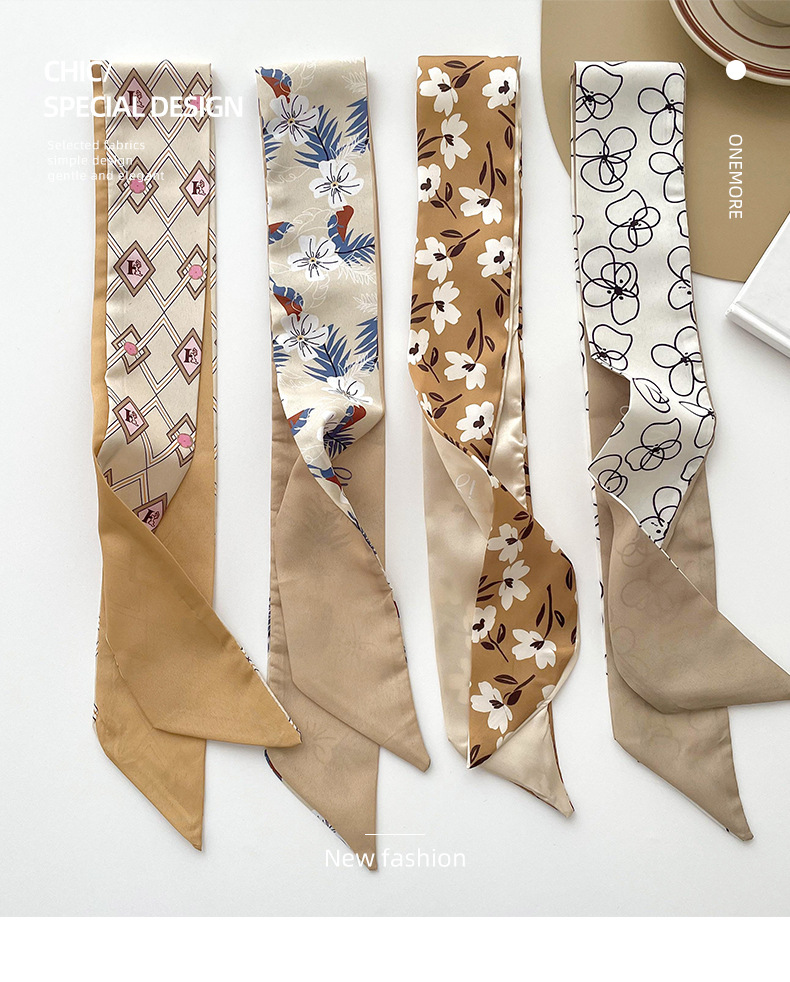 Color caqui desnudo larga bufanda pequeña bolsa de corbata de pelo decorativo del todo fósforo de las mujeres con cinta de regalo de mano banda de pelo pequeña bufanda