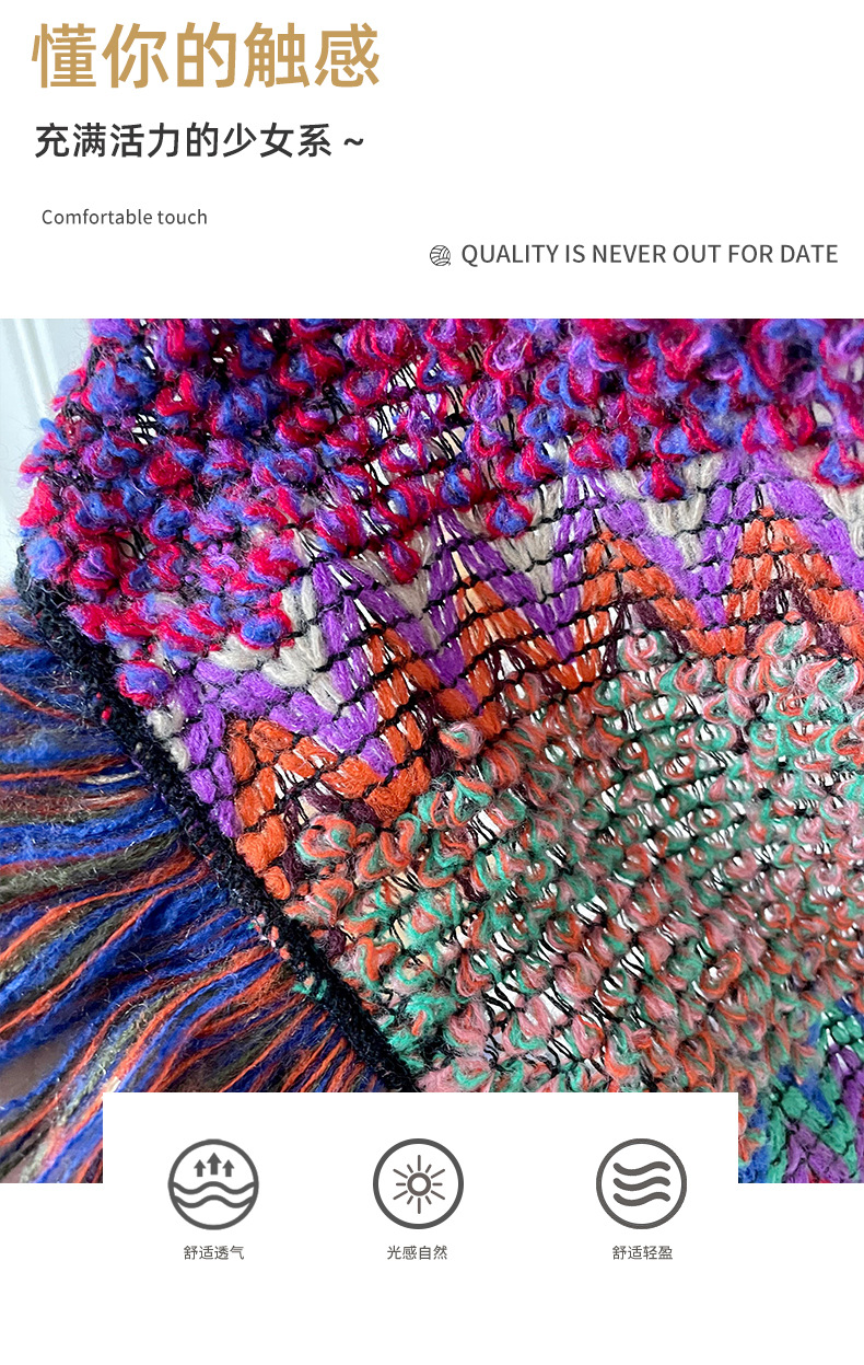 Nacional viento turismo primavera chal femenino irregular cabeza caliente llano borla bufanda fuera con capa