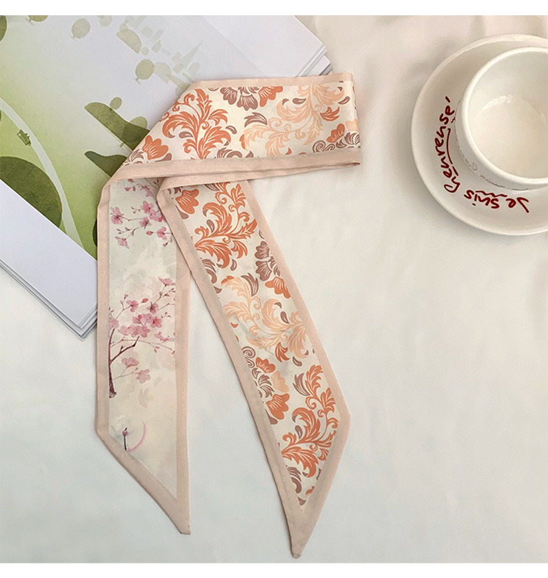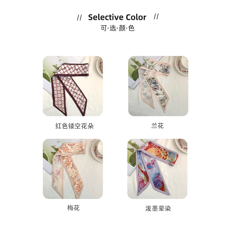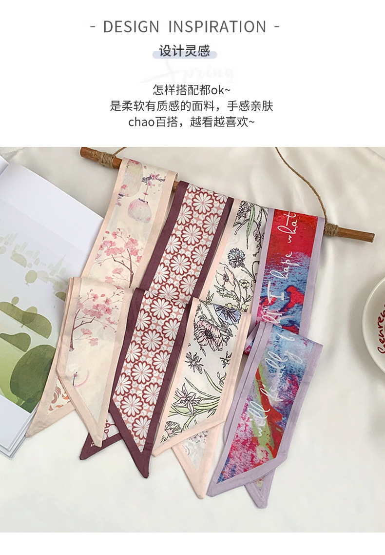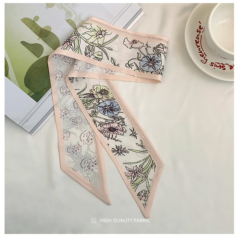 Pañuelo de seda, tira larga, sensación de alta calidad, pequeño pañuelo floral fresco, cinturón para el cabello, bolsa para atar, cinta para atar, bufanda decorativa, cinturón para la cintura