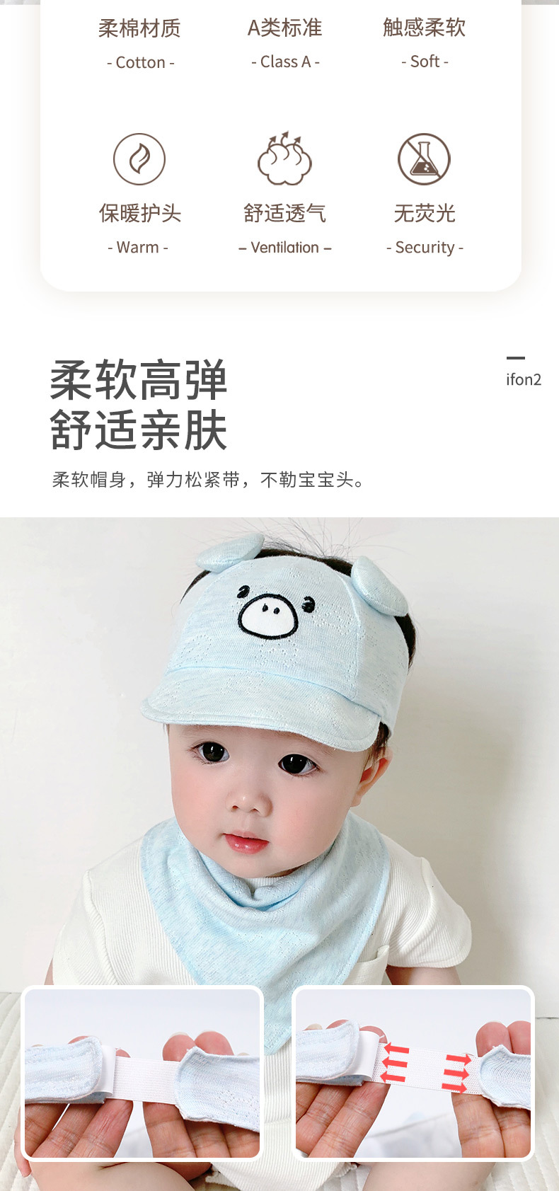 Perímetro del sombrero (40 - 48 cm) adecuado para 0 - 18 meses - ajustable