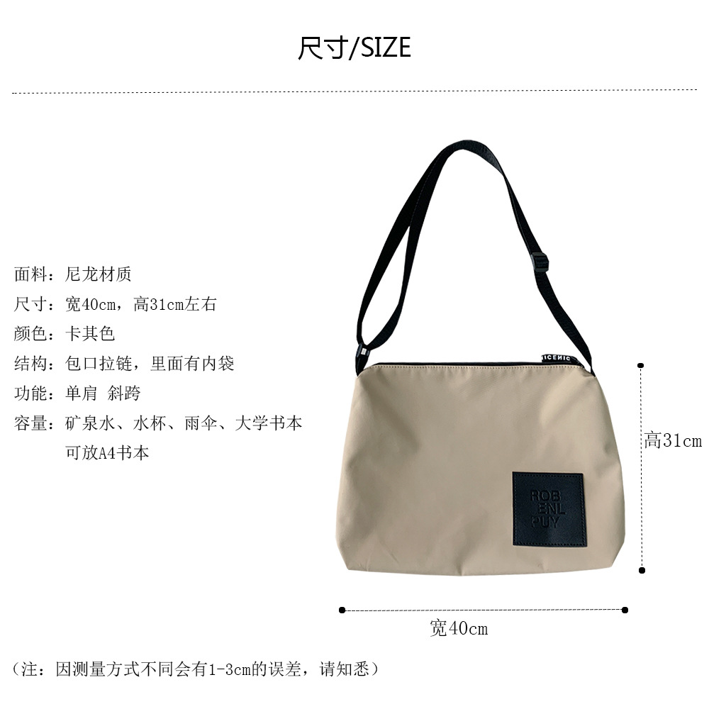 Bolsa de mensajero de estilo japonés simple todo fósforo bolsa de lona de nylon impermeable estilo de Hong Kong hombro de gran capacidad de moda para hombres y mujeres estudiantes