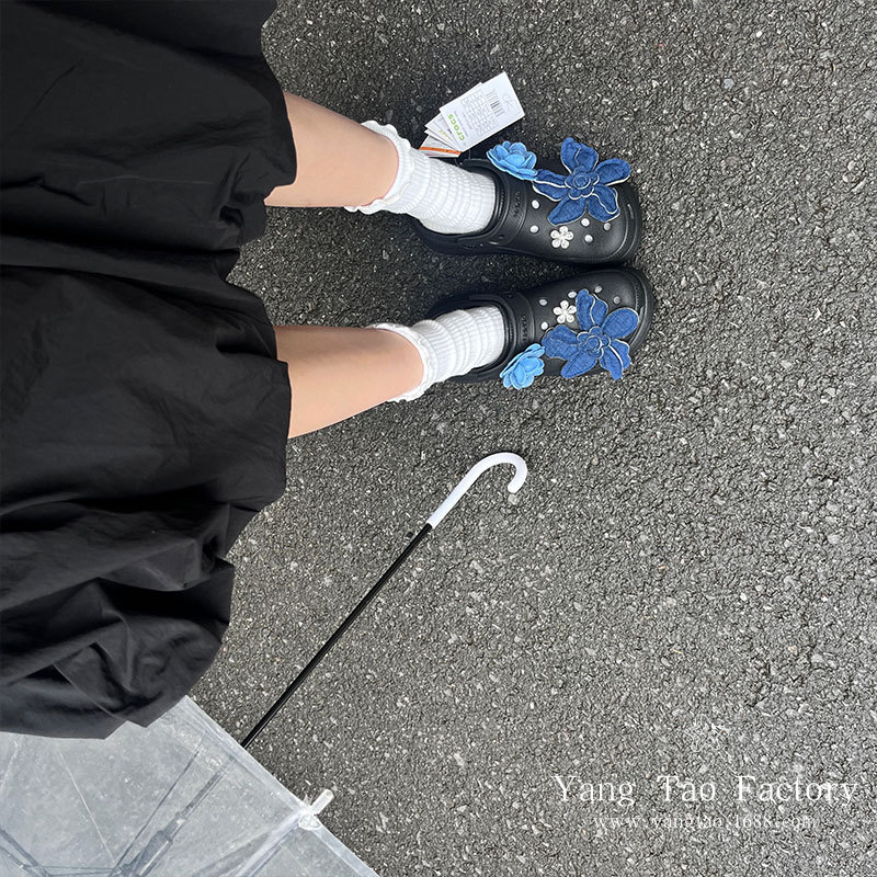 Vaquero Tiancai Vaquero flor hebilla de zapatos con agujeros accesorios de zapatos vaquero azul flor hebilla de zapatos diy desmontable flor