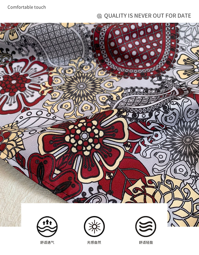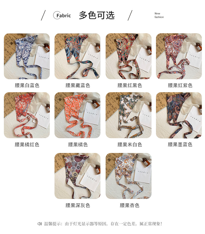 Toalla triangular, sello de cintura de verano, cintura, cortina de pedos, flor de anacardo, bufanda de seda de alta calidad, pañuelo en la cabeza, cinta para el cabello, fábrica de procesamiento personalizada