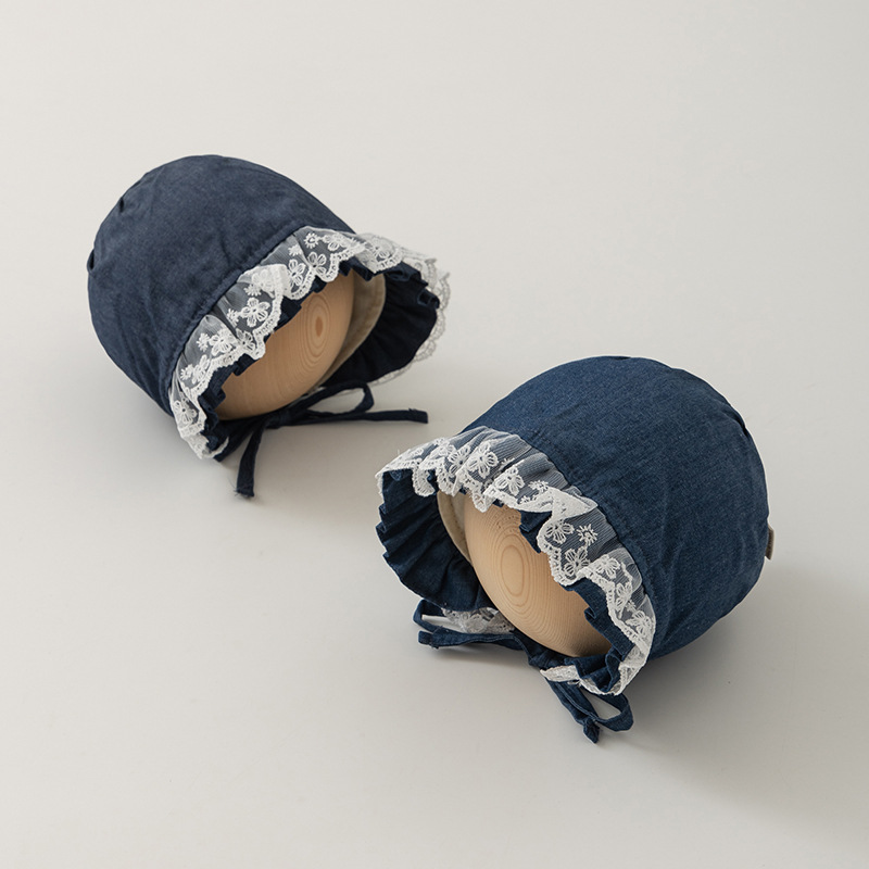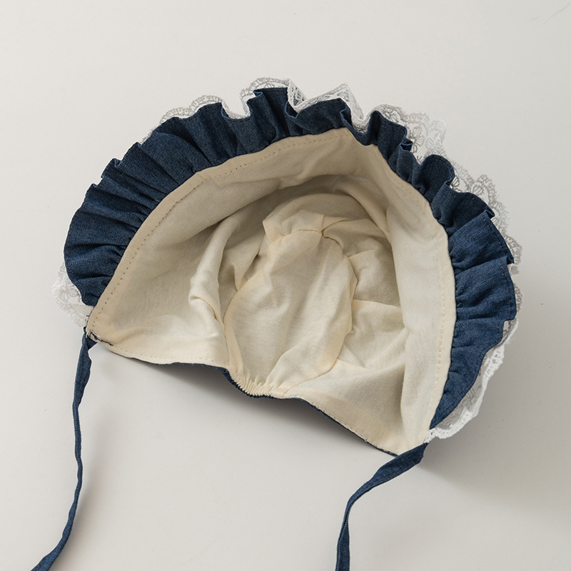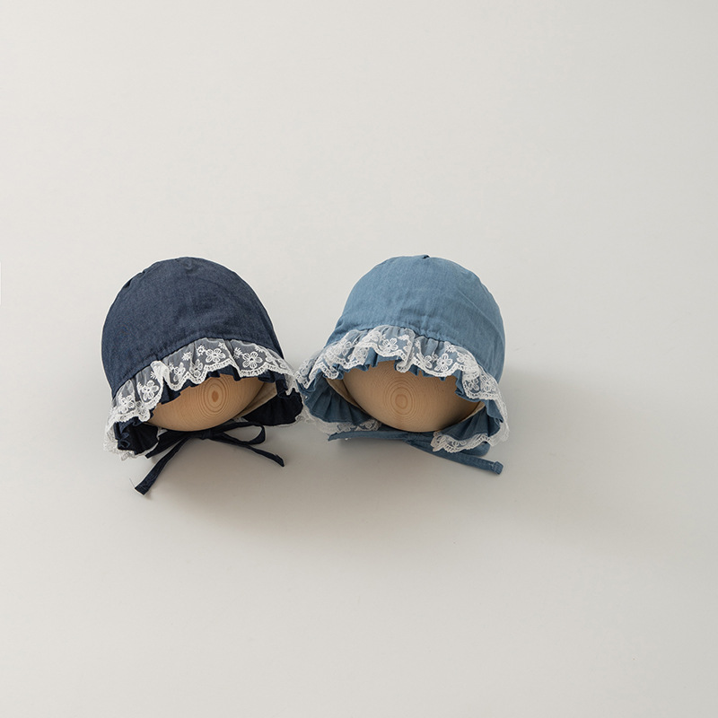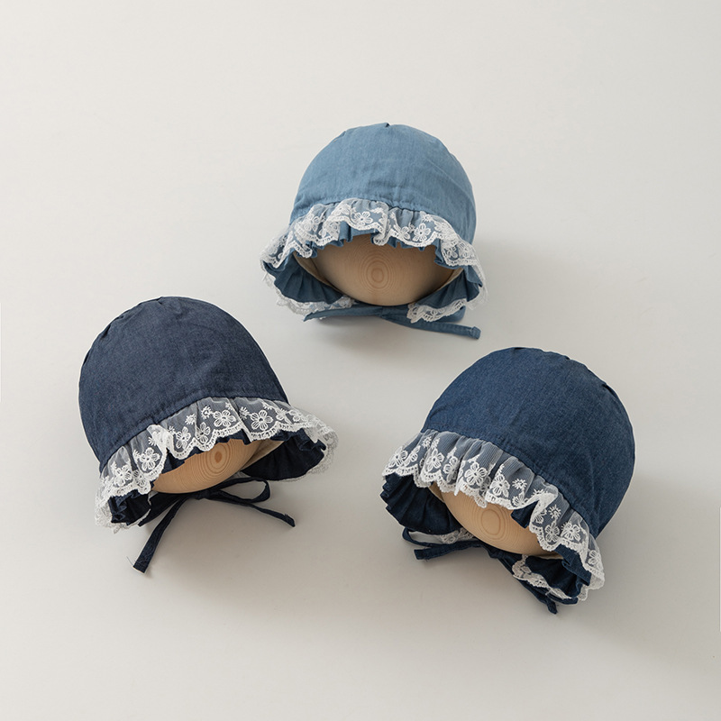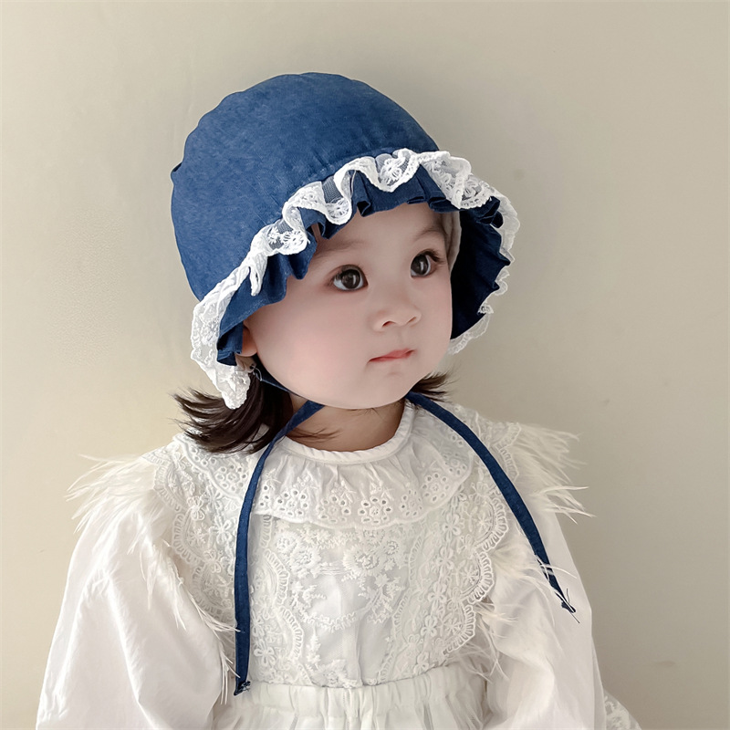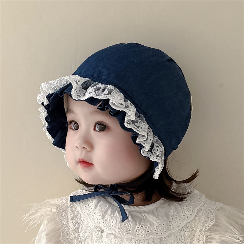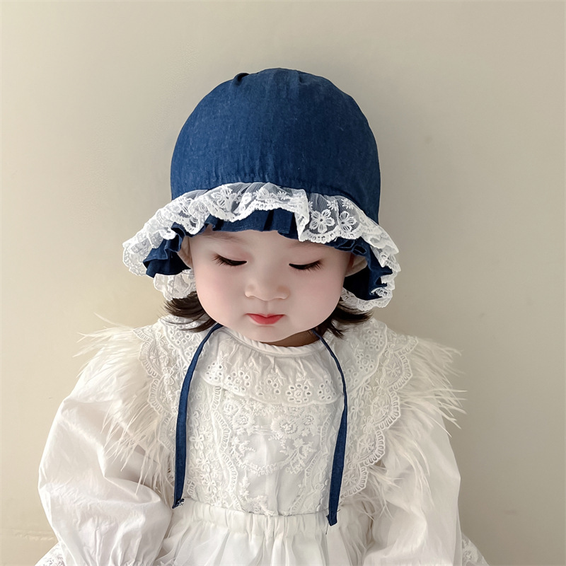 Sombrero de bebé primavera y otoño princesa sombrero de corte recién nacido encaje protector de oído sin hueso de invierno a prueba de viento