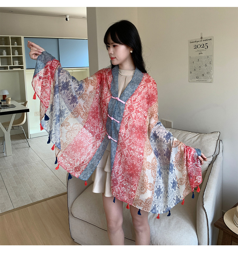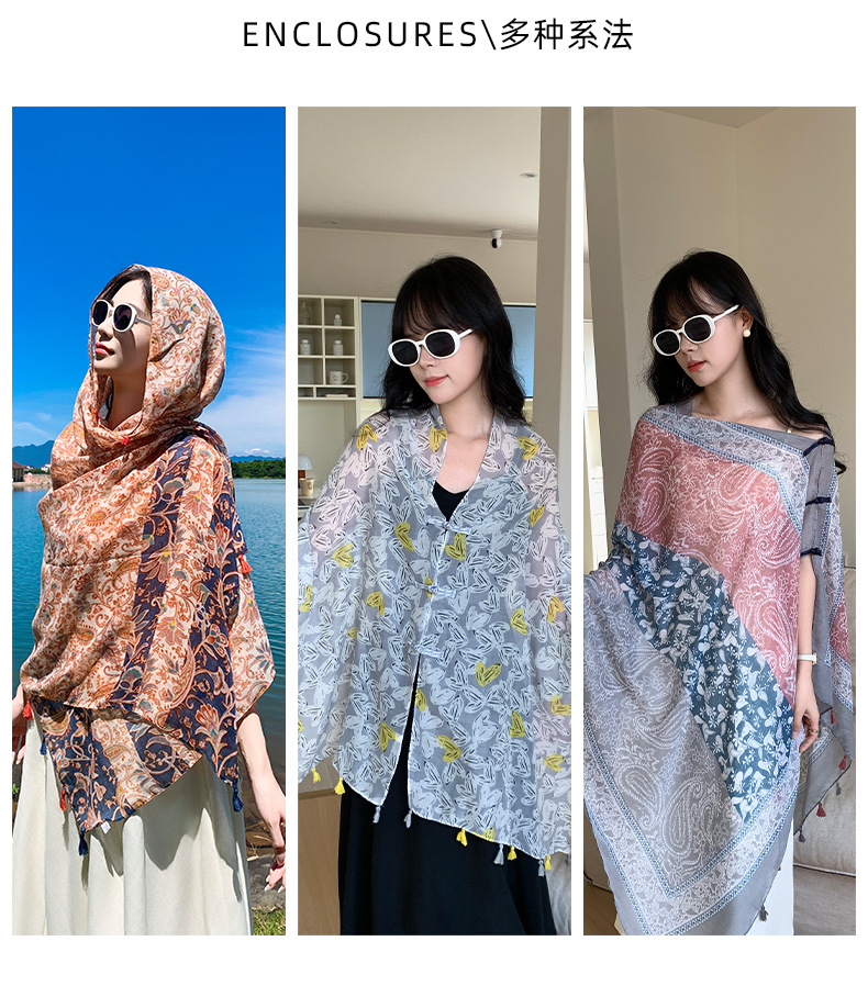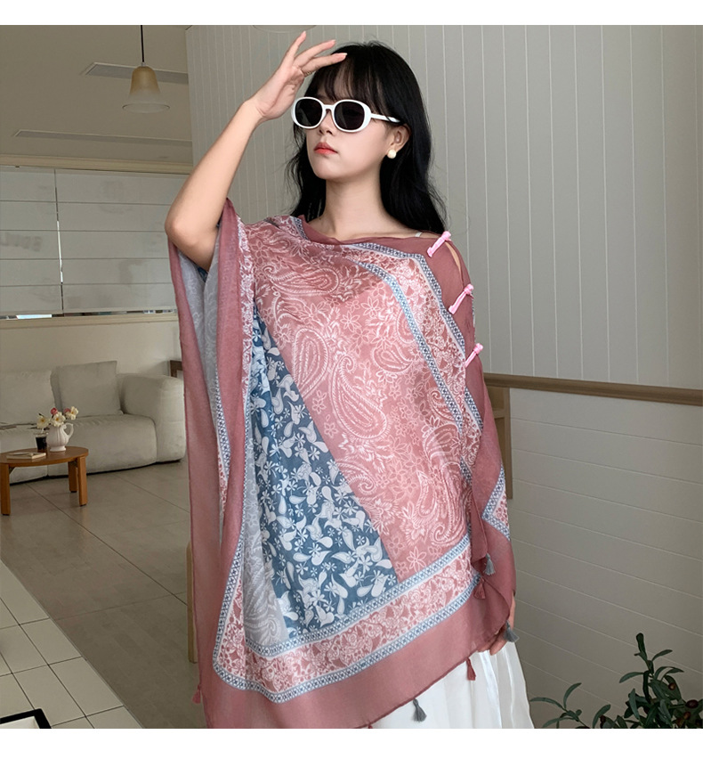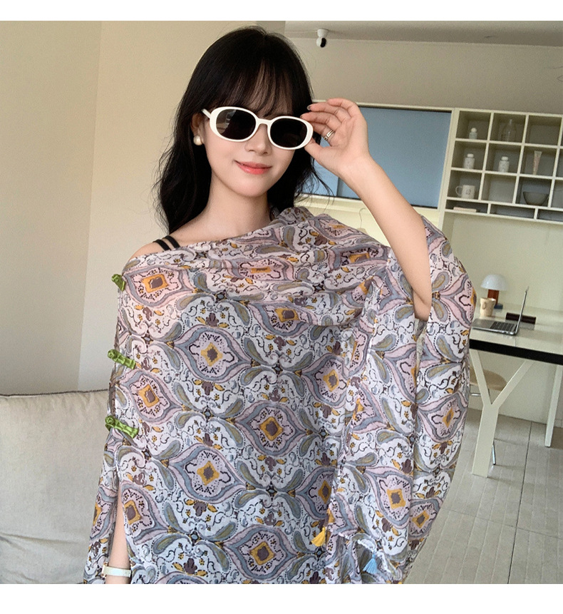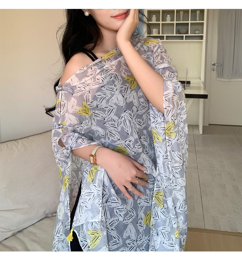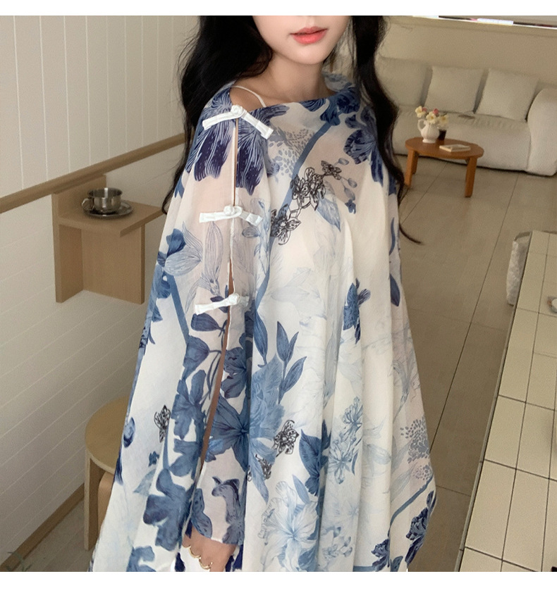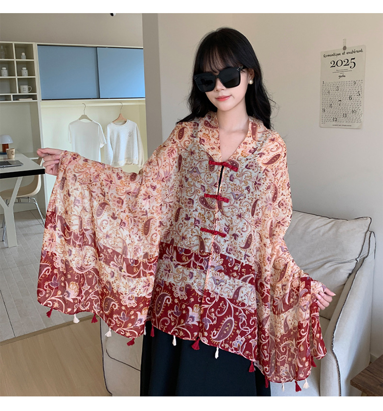 Chal de verano con falda, estampado de verano, nuevo estilo chino, bufanda de seda con hebilla, chal de protección solar, chaleco pequeño