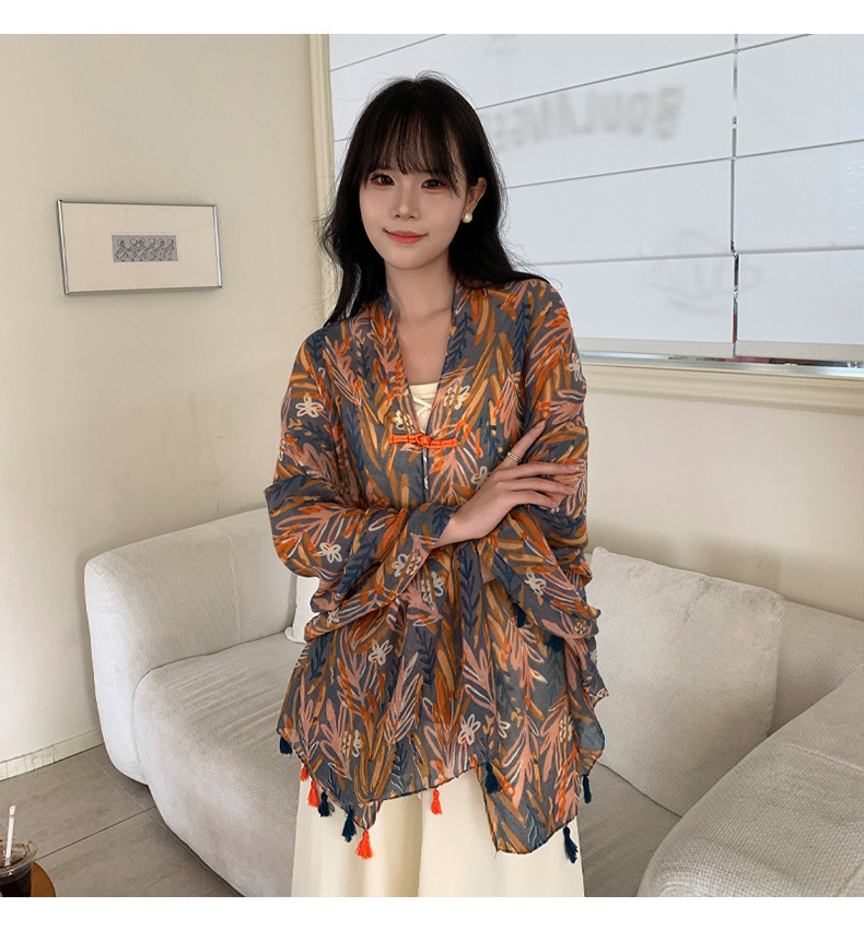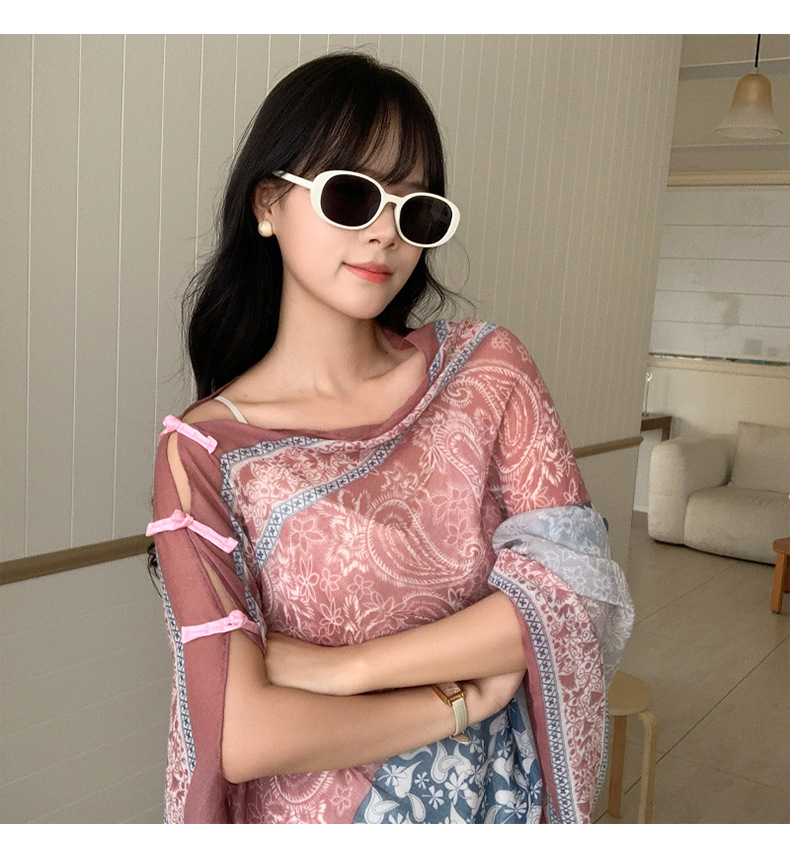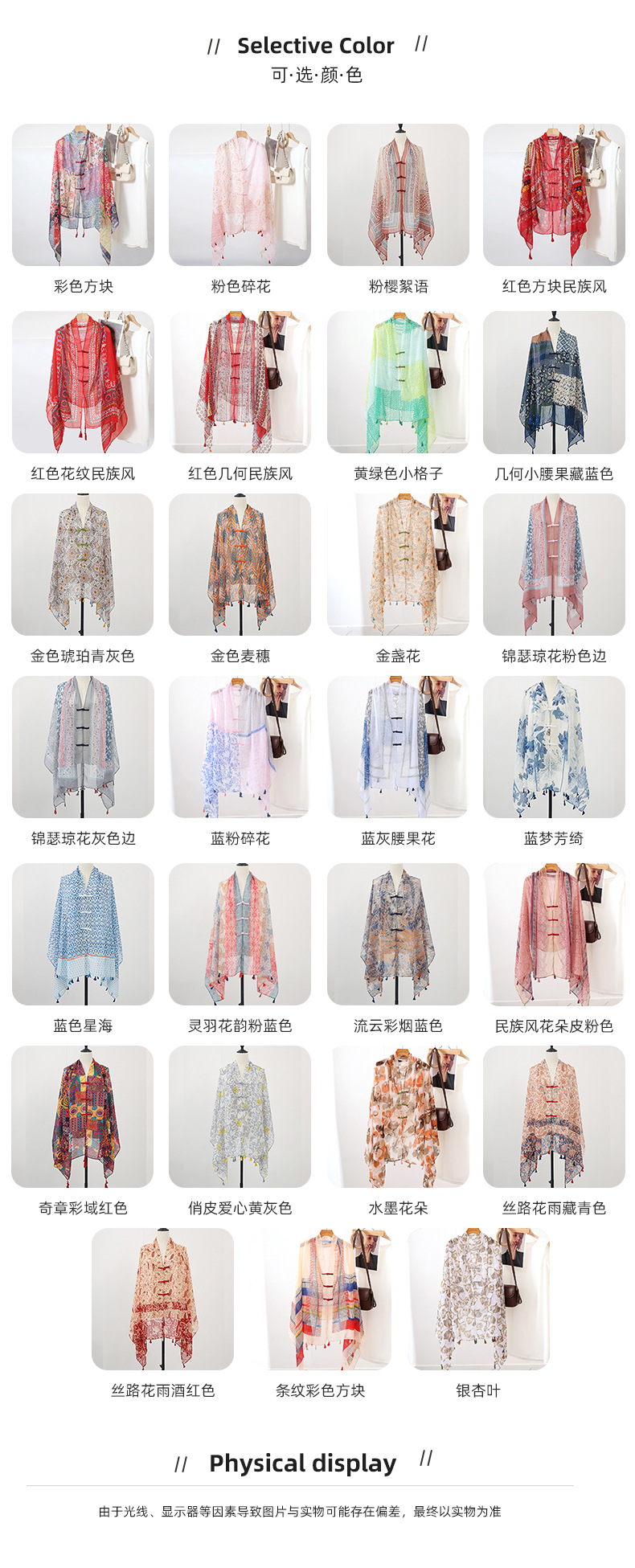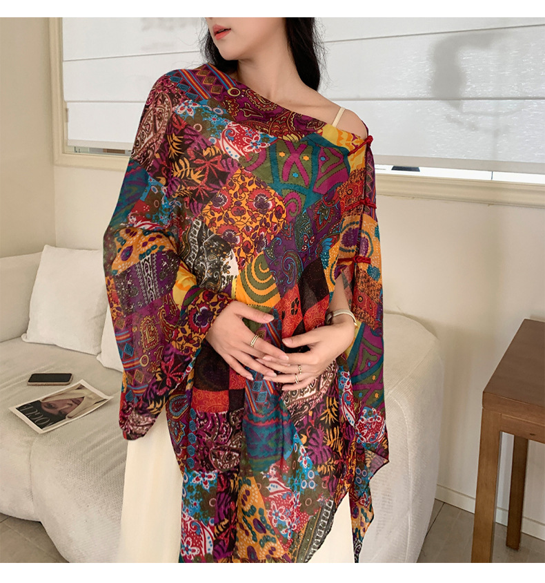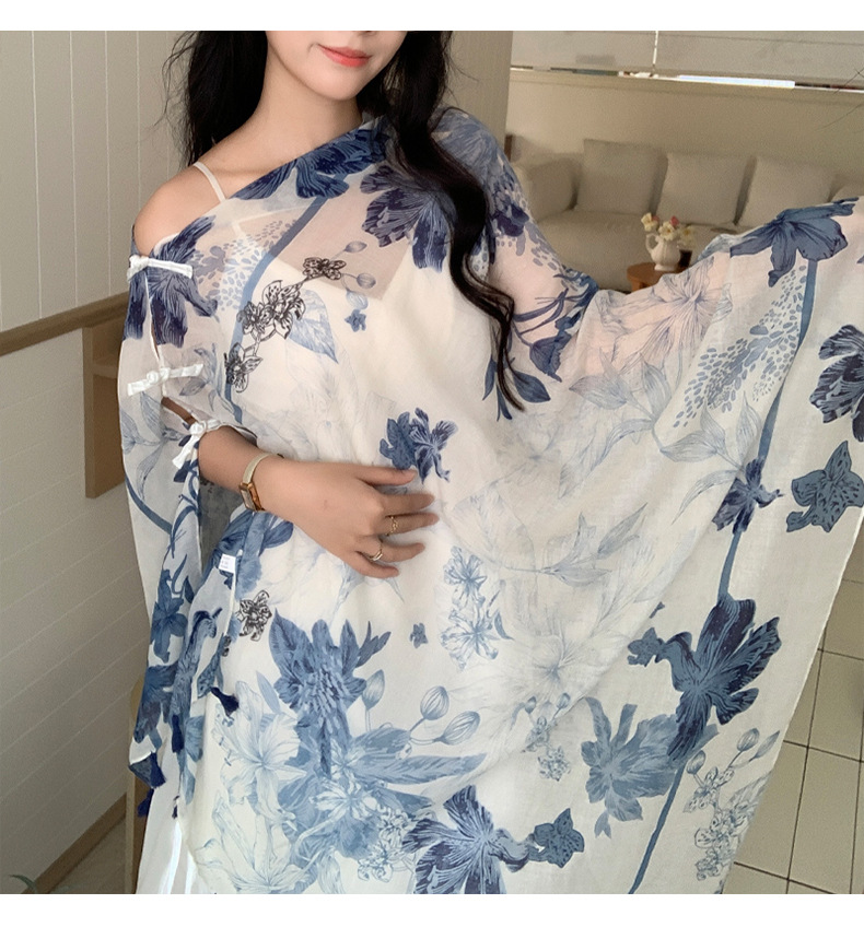 Chal de verano con falda, estampado de verano, nuevo estilo chino, bufanda de seda con hebilla, chal de protección solar, chaleco pequeño