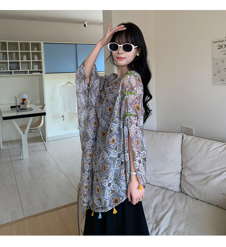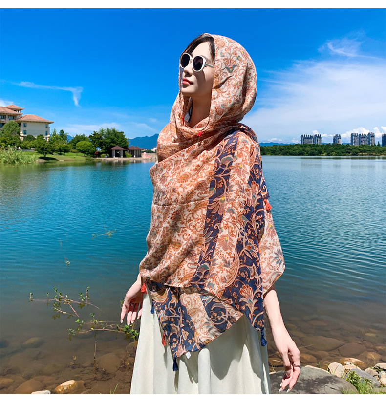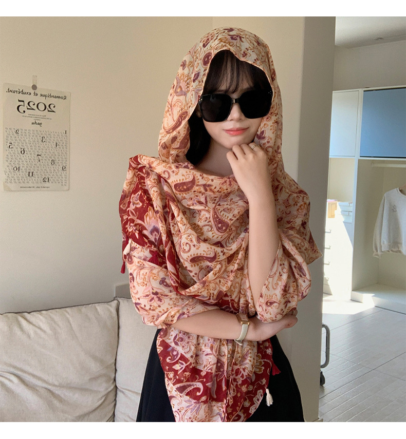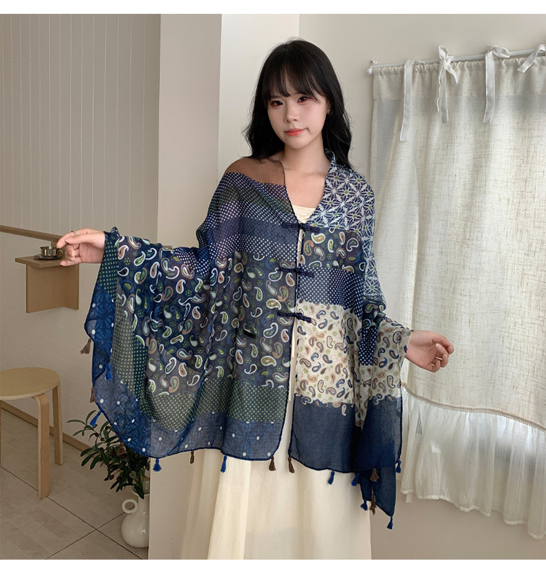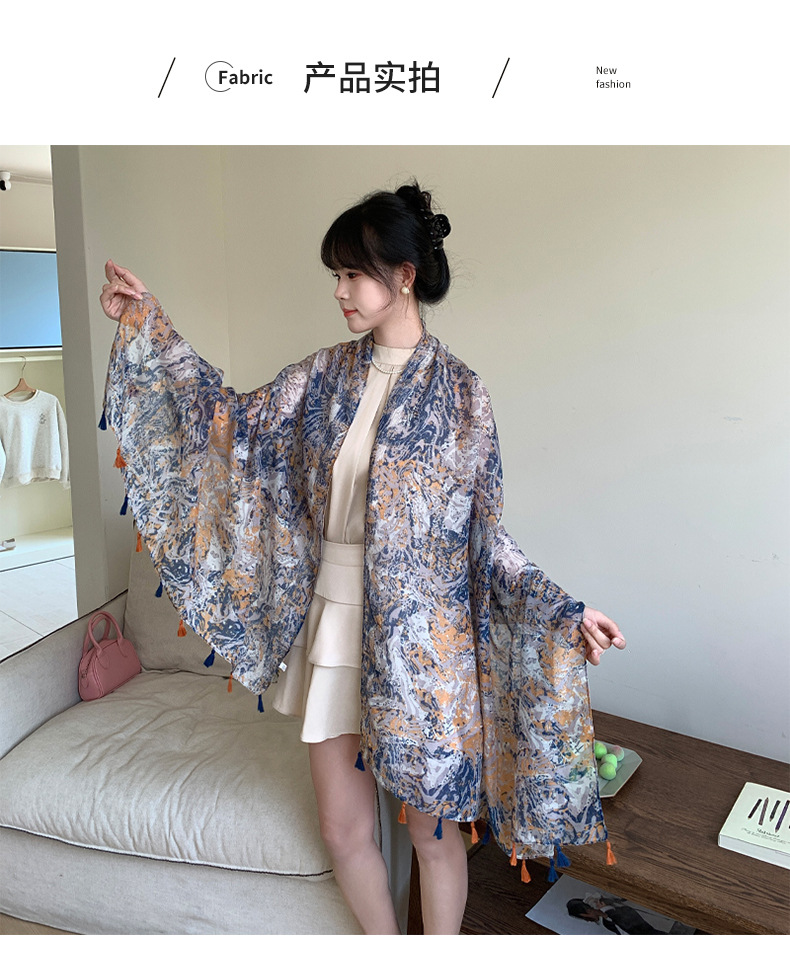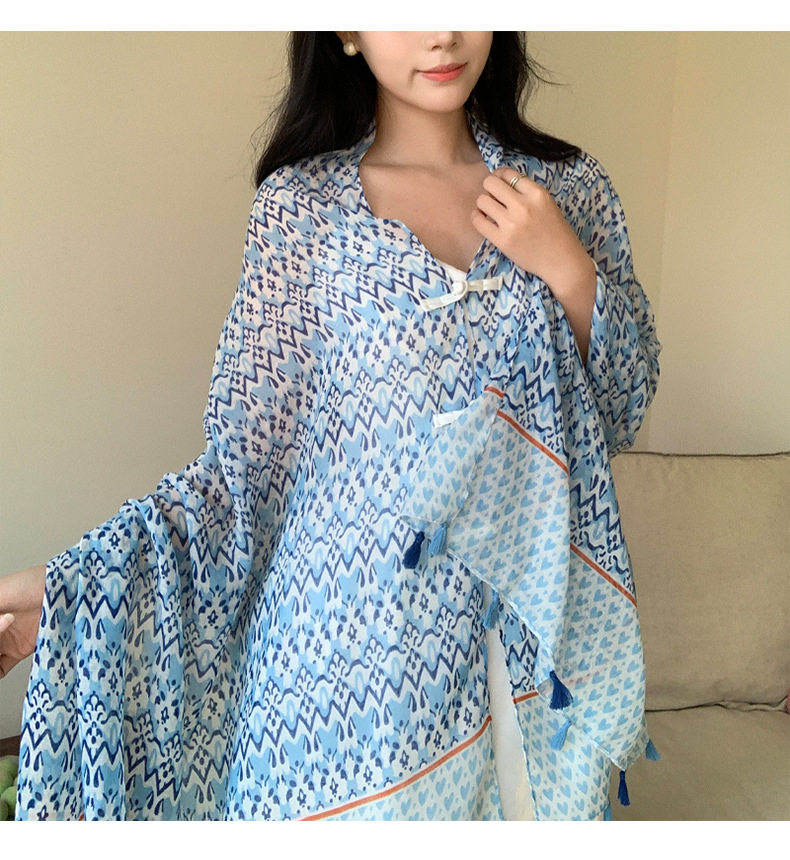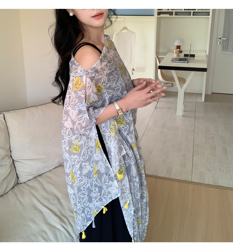 Chal de verano con falda, estampado de verano, nuevo estilo chino, bufanda de seda con hebilla, chal de protección solar, chaleco pequeño