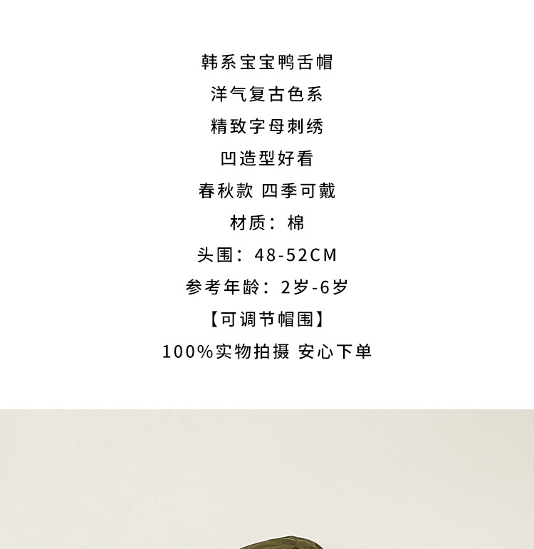 ins sombrero para niños bordado coreano sombrero de béisbol primavera y otoño 2 años de niño sombrero de lengua de pato niñas estilo extranjero moda versátil