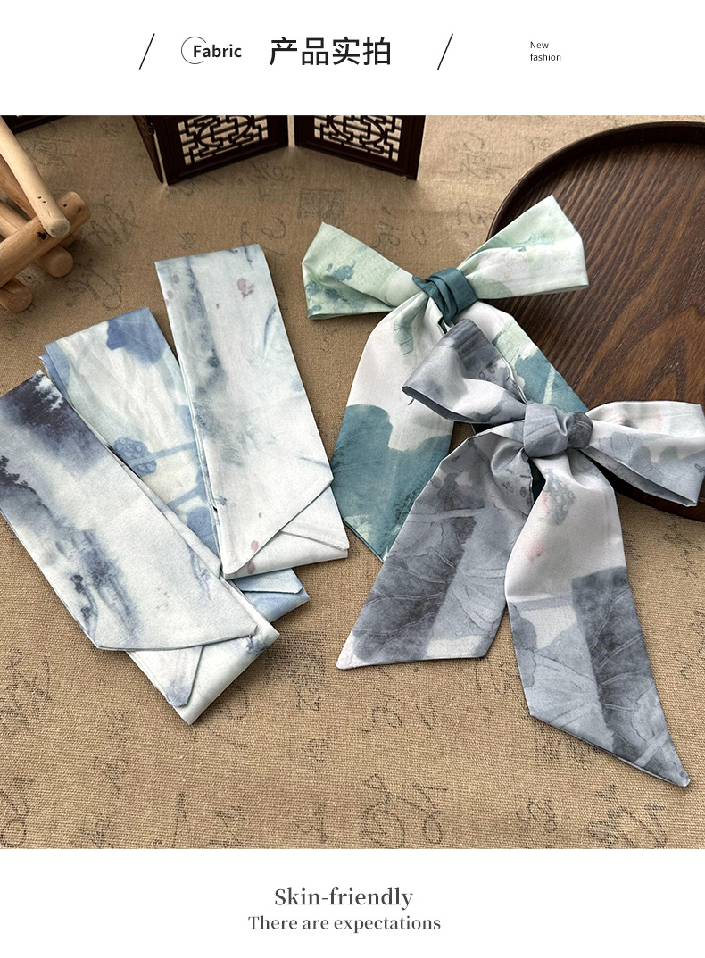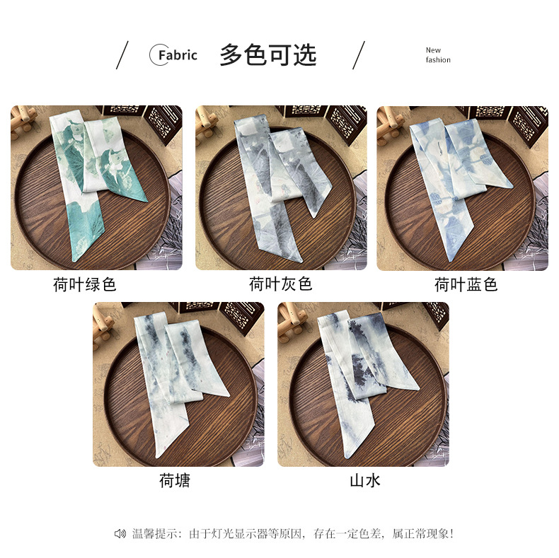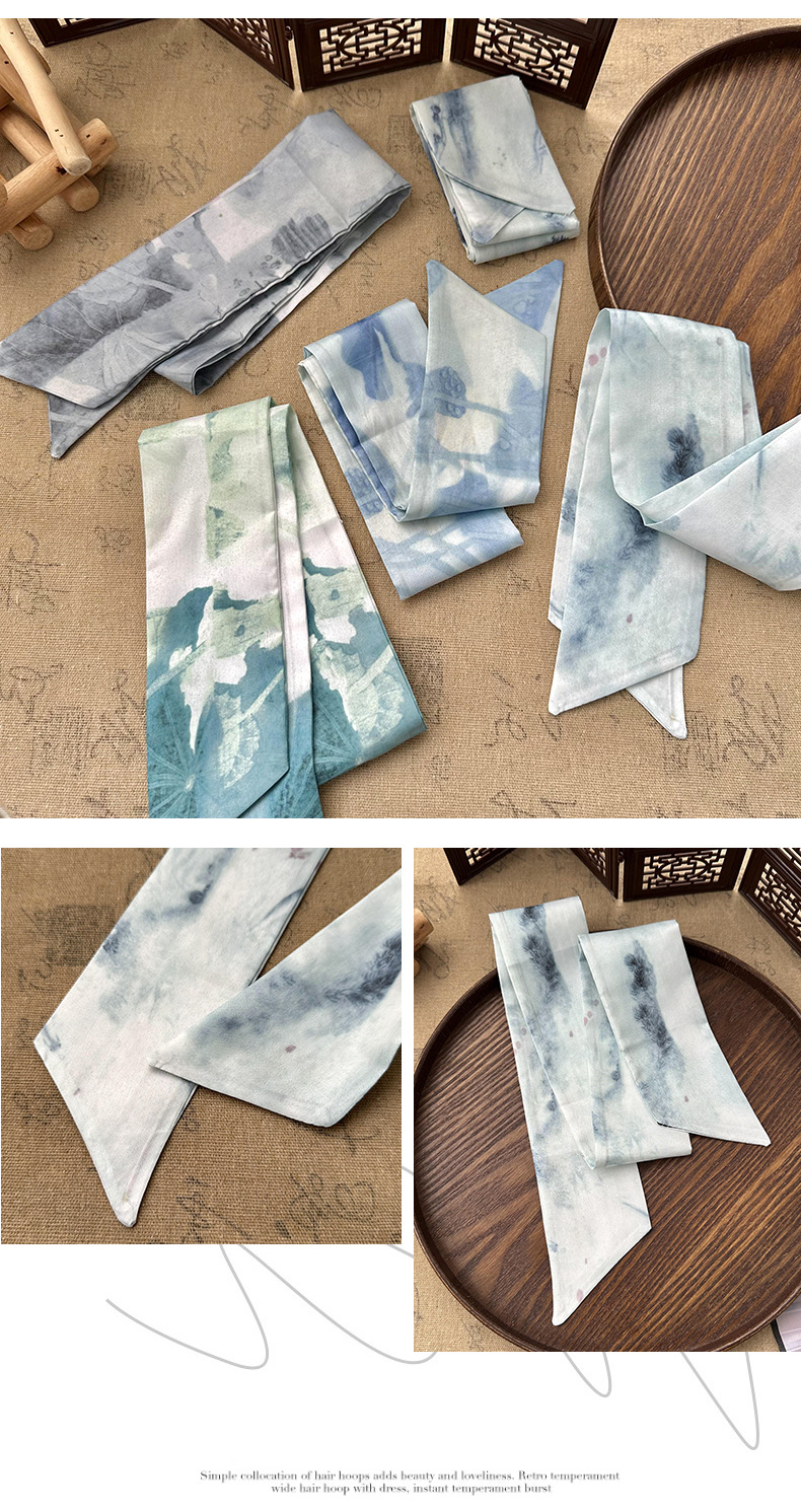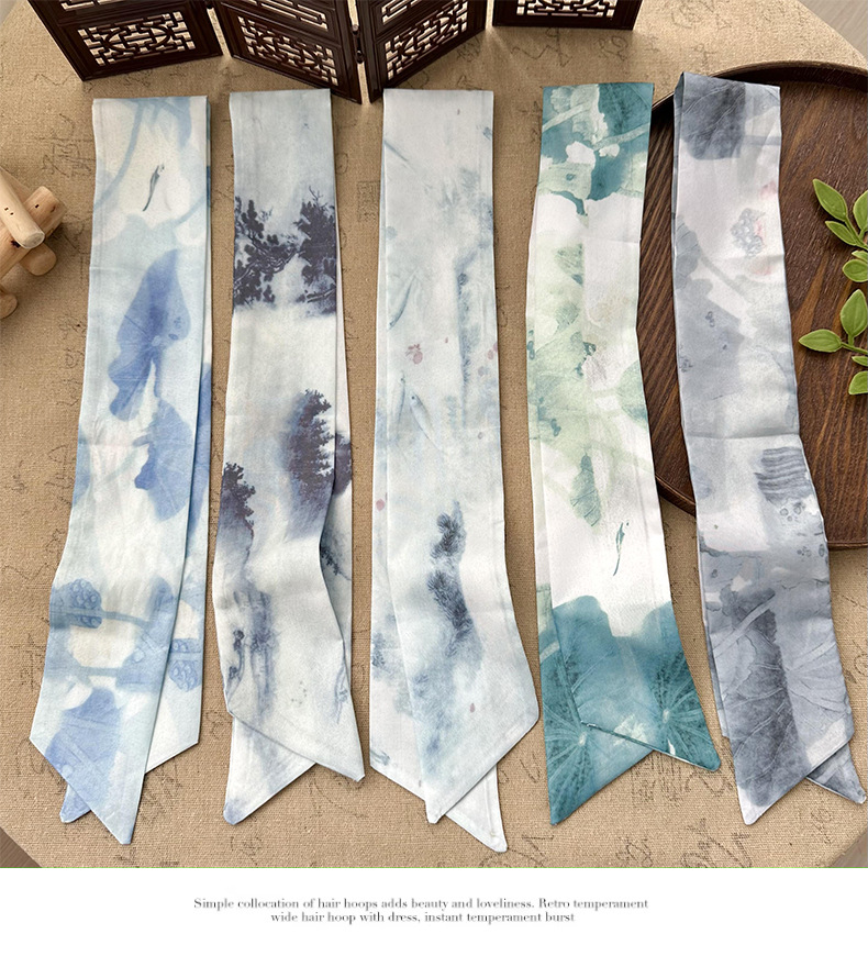 Bufandas de seda largas mujeres dibujo de hoja de bambú estilo antiguo chino nuevo cinturón de cabello adornamiento de cabello pintura de tinta de estilo chino correa bufandas cinturón