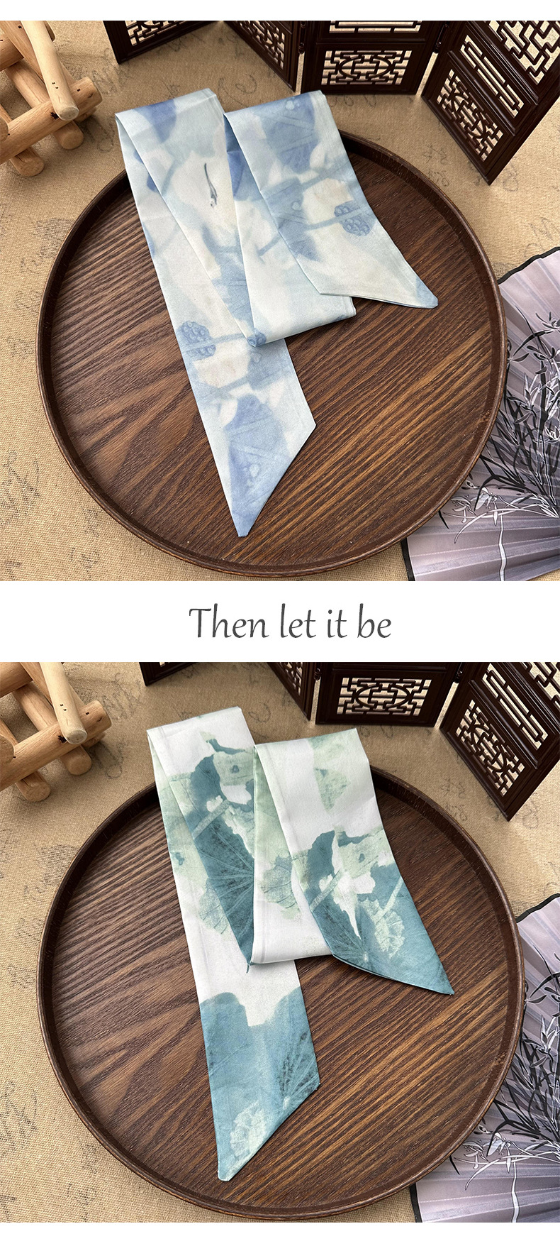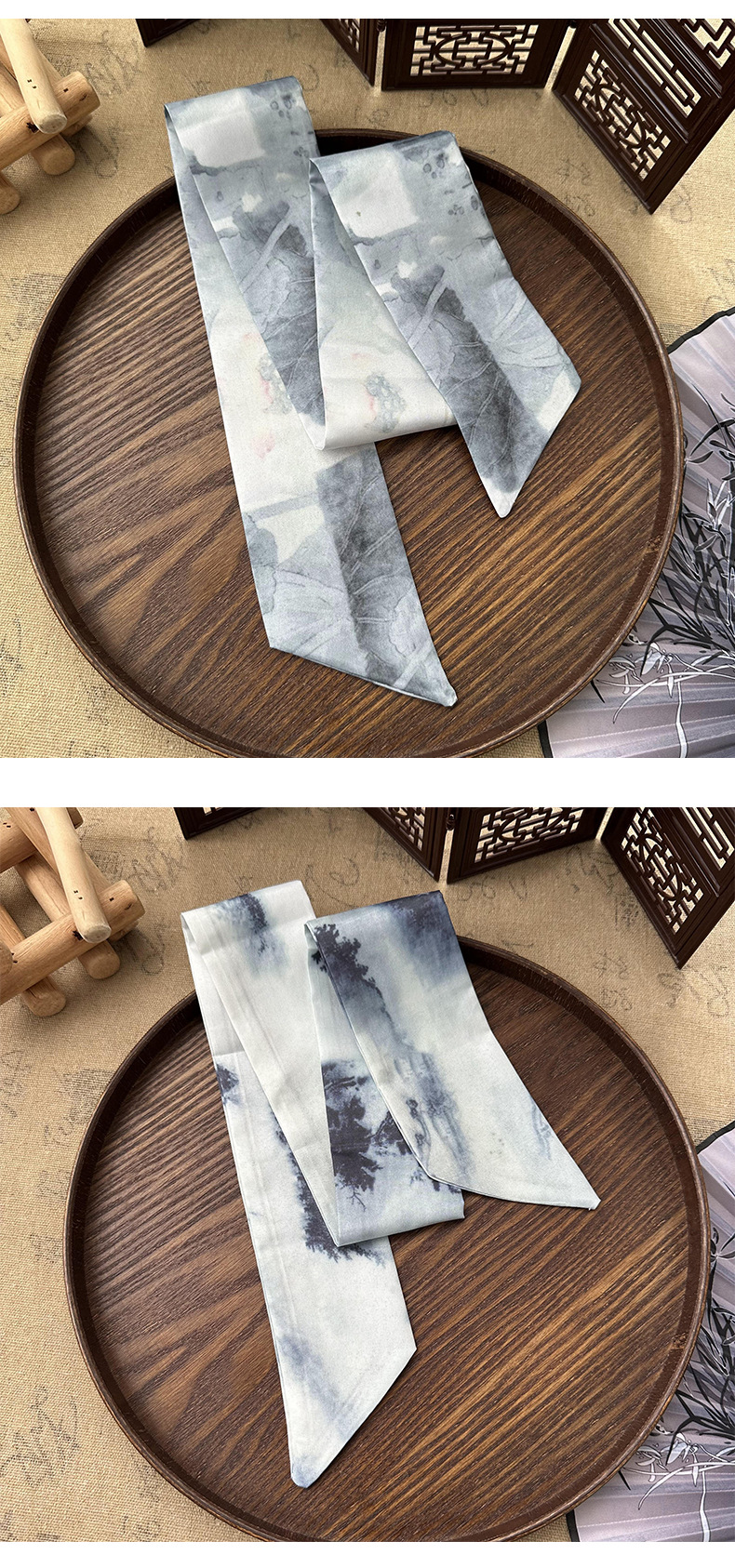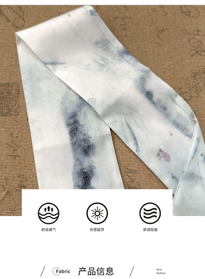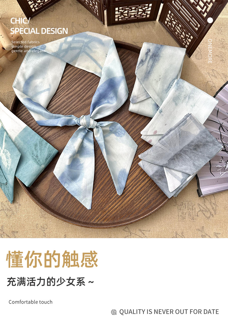 Bufandas de seda largas mujeres dibujo de hoja de bambú estilo antiguo chino nuevo cinturón de cabello adornamiento de cabello pintura de tinta de estilo chino correa bufandas cinturón