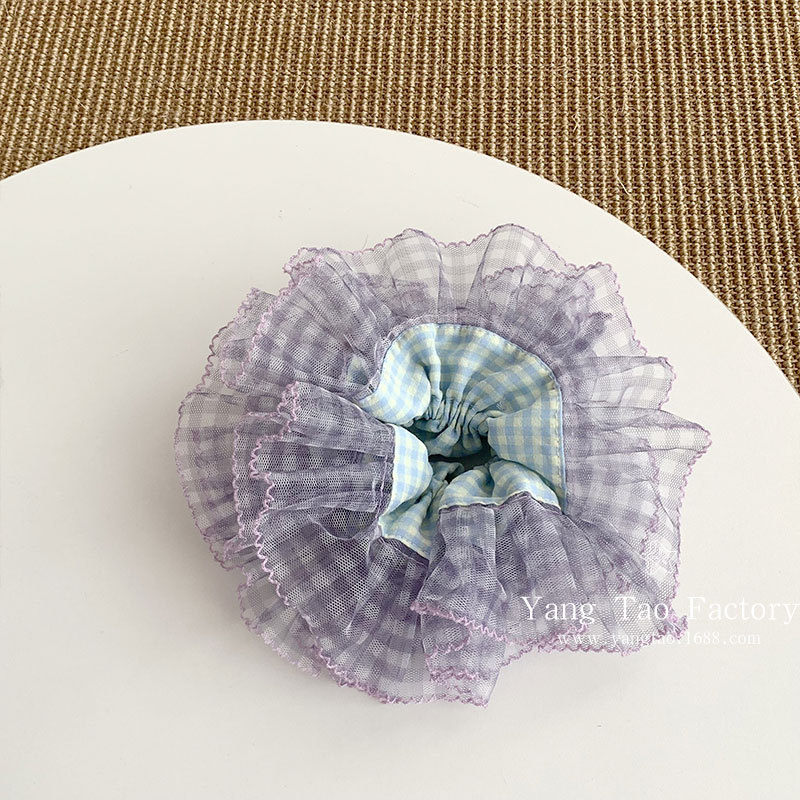 Uva morada ~ Hilo de malla púrpura, lazo para el cabello de intestino grueso, sentido de alto nivel femenino, lazo para el cabello de agarre de cabeza de bola de gran tamaño