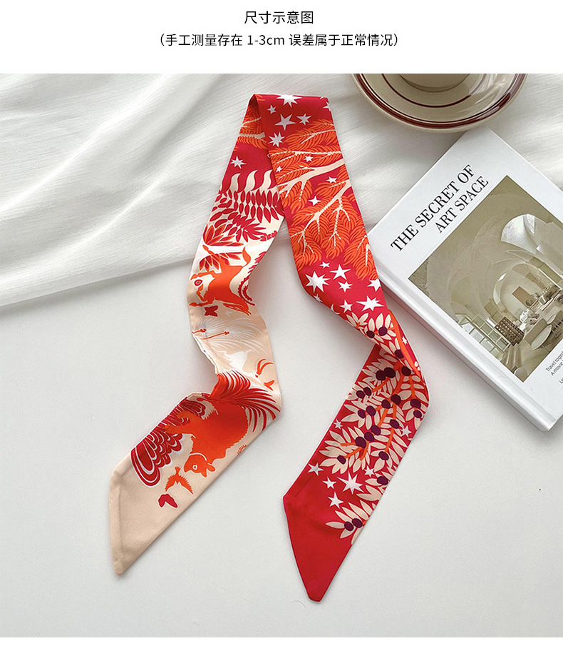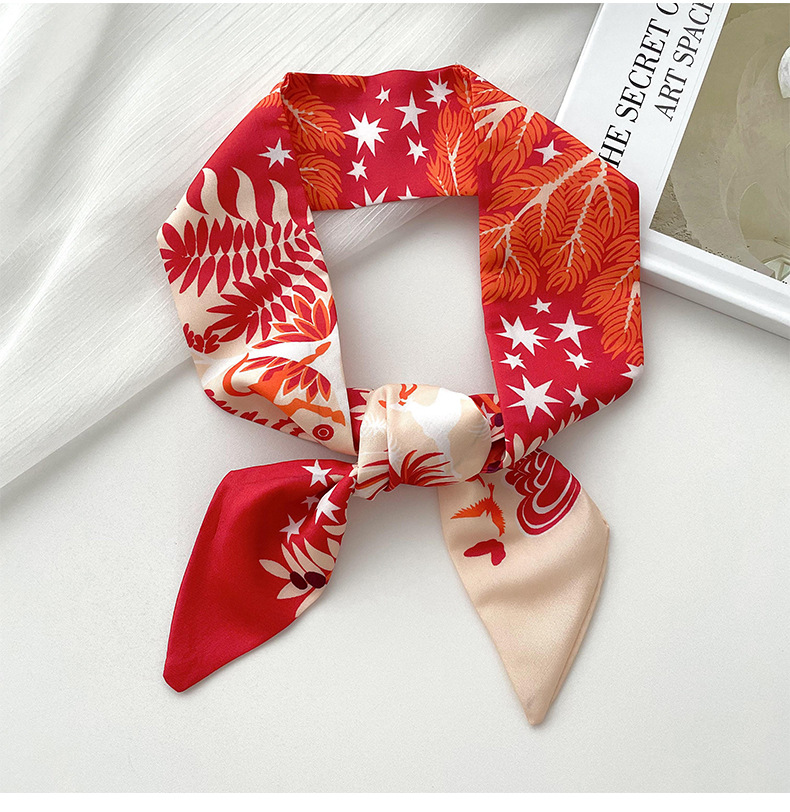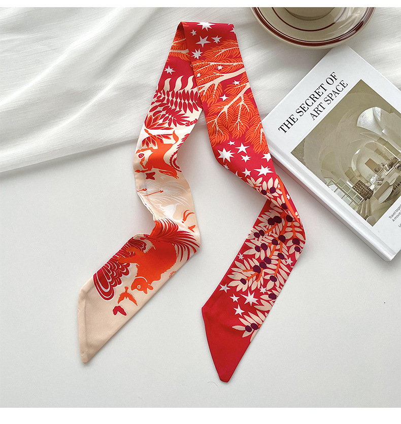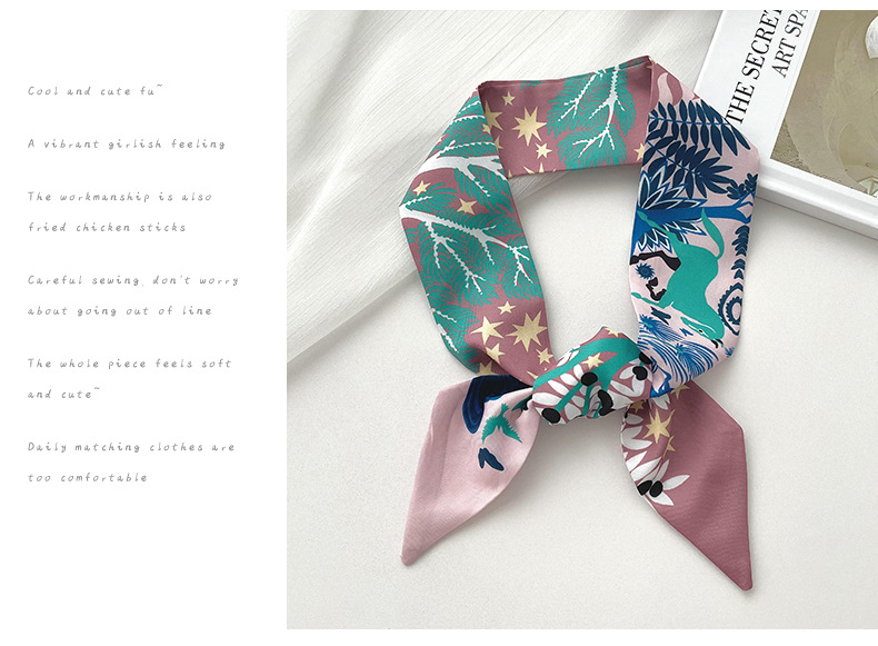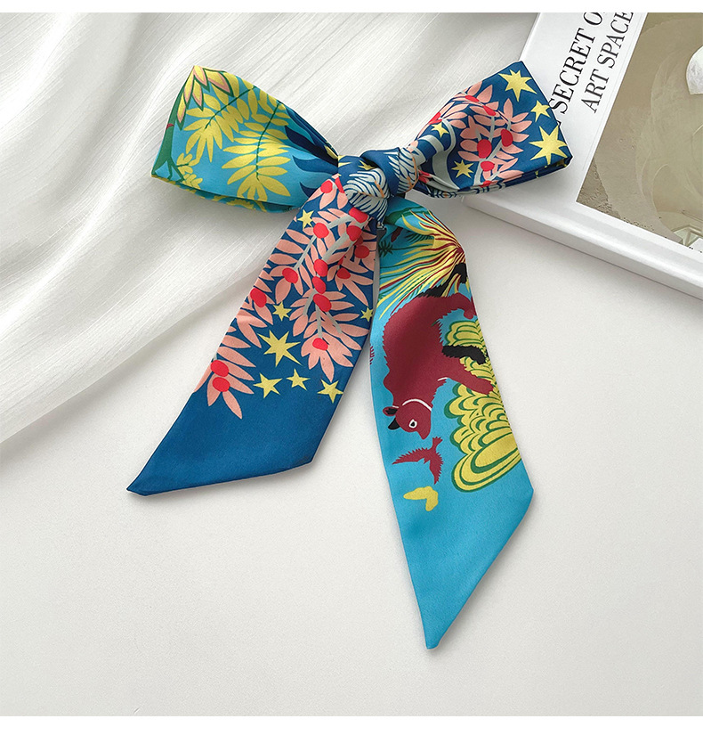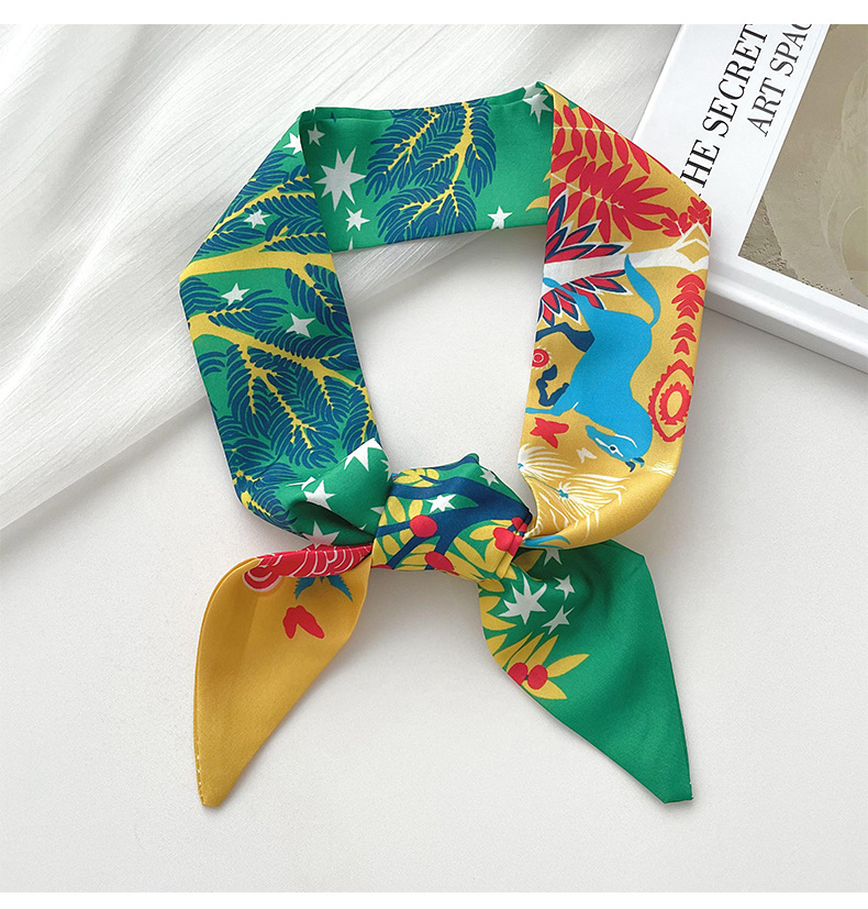 Nueva delgada estrecha larga bufanda de seda para las mujeres primavera y verano versátil animal selva impresión lazo pelo bolsa mango cinta
