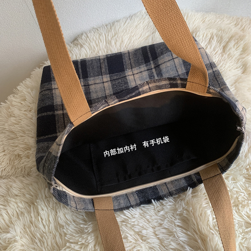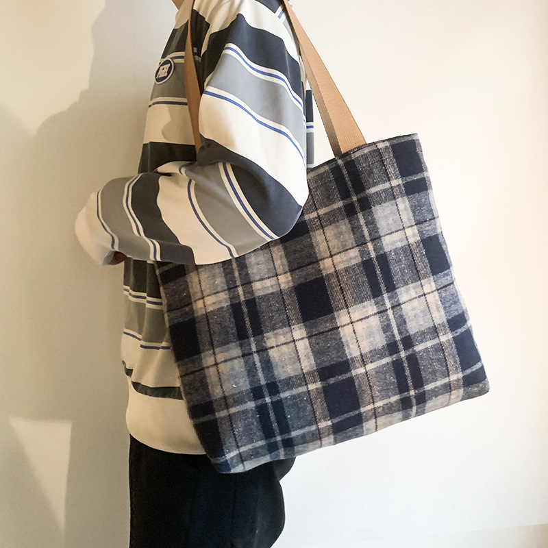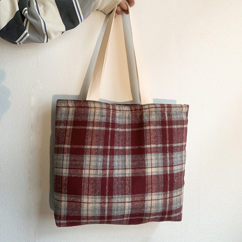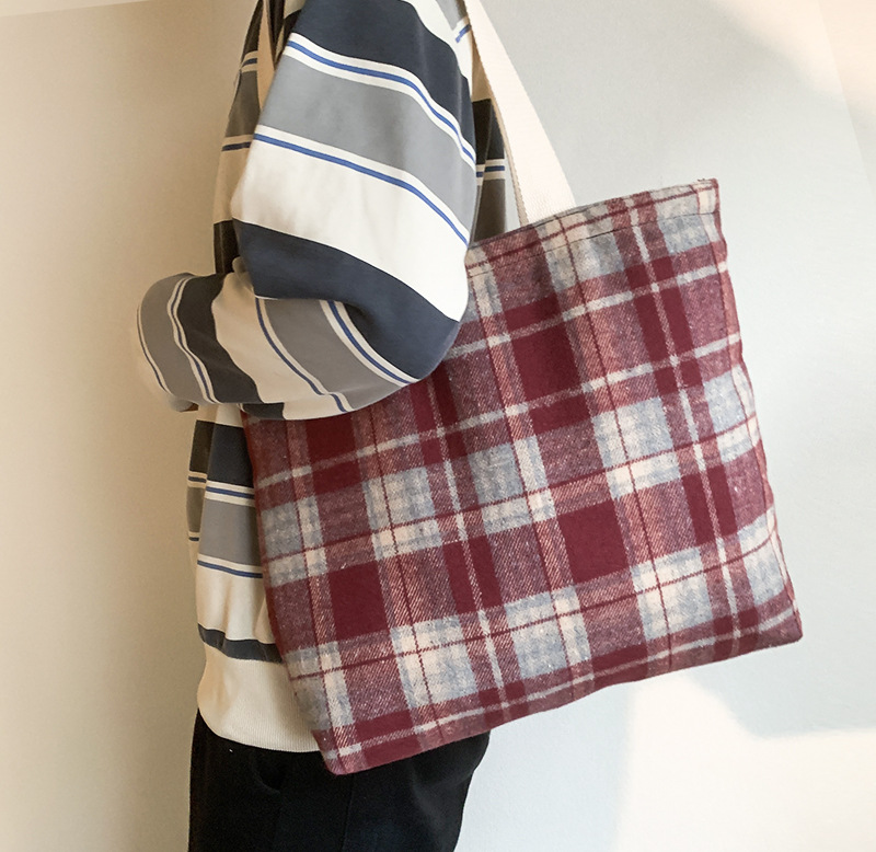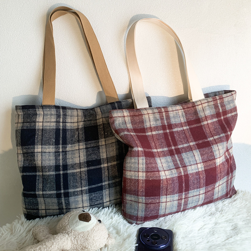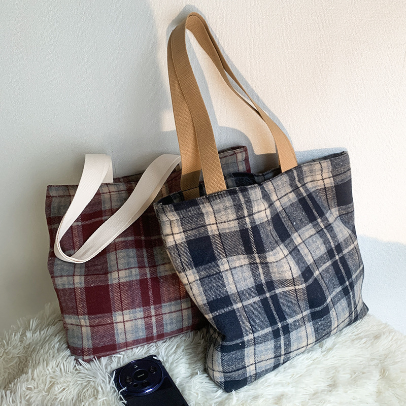 Retro color mezclado tejido lana Plaid hombro bolsa diaria versátil gran capacidad Plaid bolsa bolso de mano de las mujeres